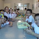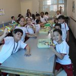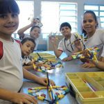 Realizamos uma aula sobre simetria, colocando em discussão “o que é?” e propondo que os alunos realizassem projetos deixando claro a simetria dele.