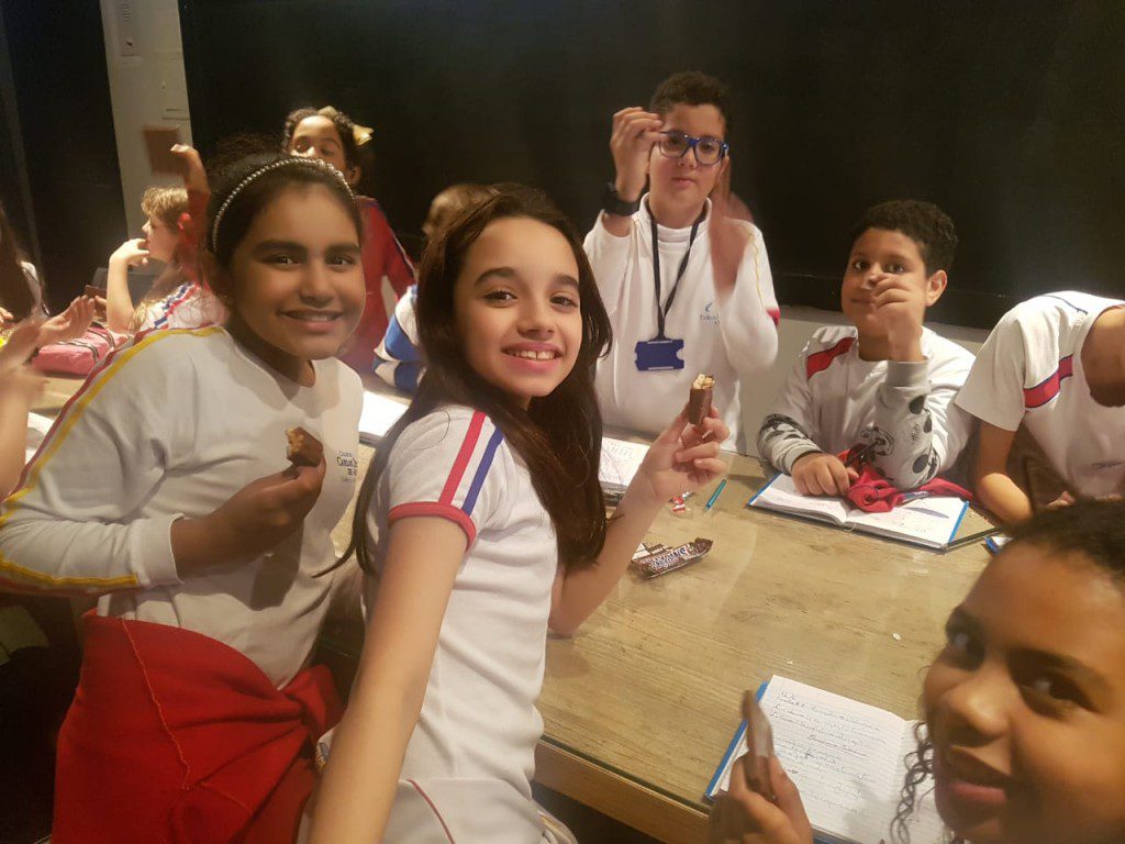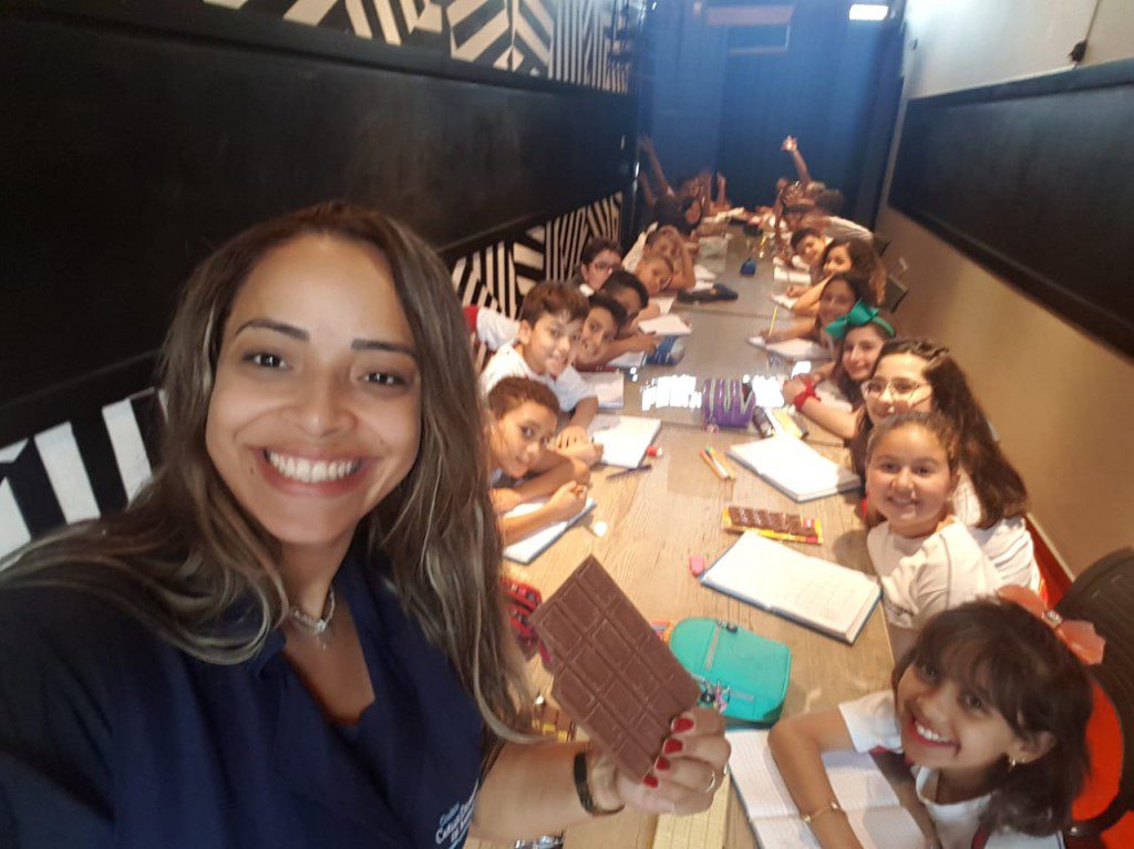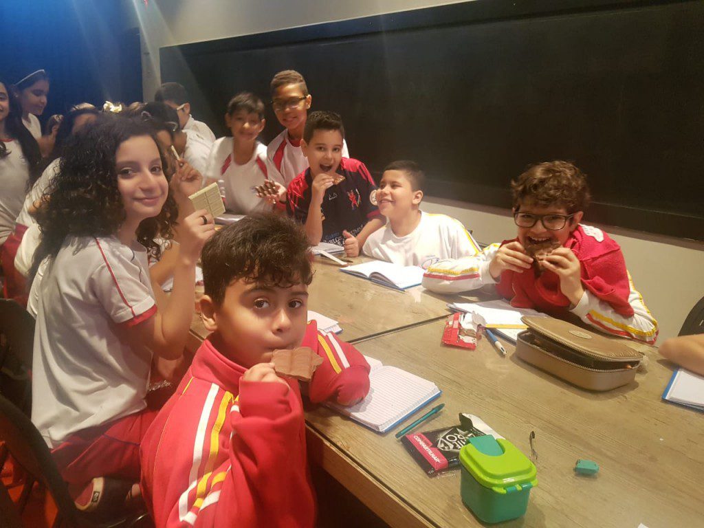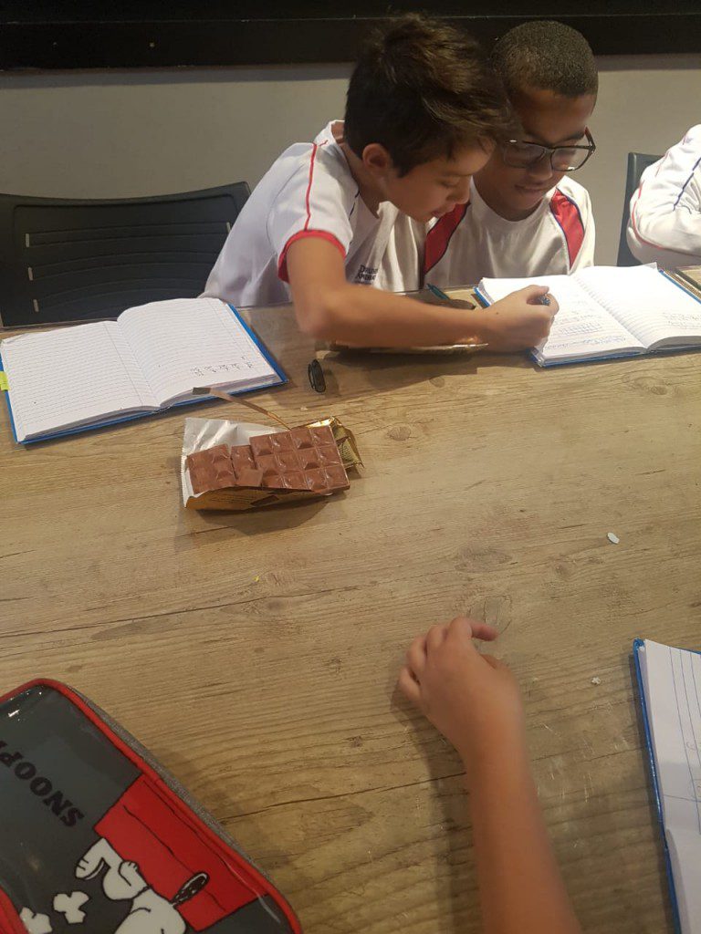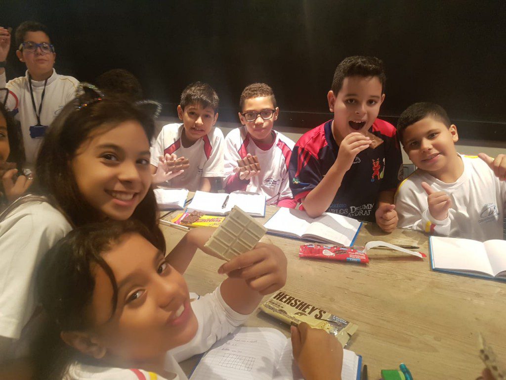 O principal recurso didático para essa aula era simplesmente delicioso: fracionar uma barra de chocolate de diversas formas. Ao final, poder saborear frações de vários sabores, estimulou não só o conhecimento matemático, mas também o científico, afinal, o sentido do paladar ficou bem aguçado!