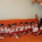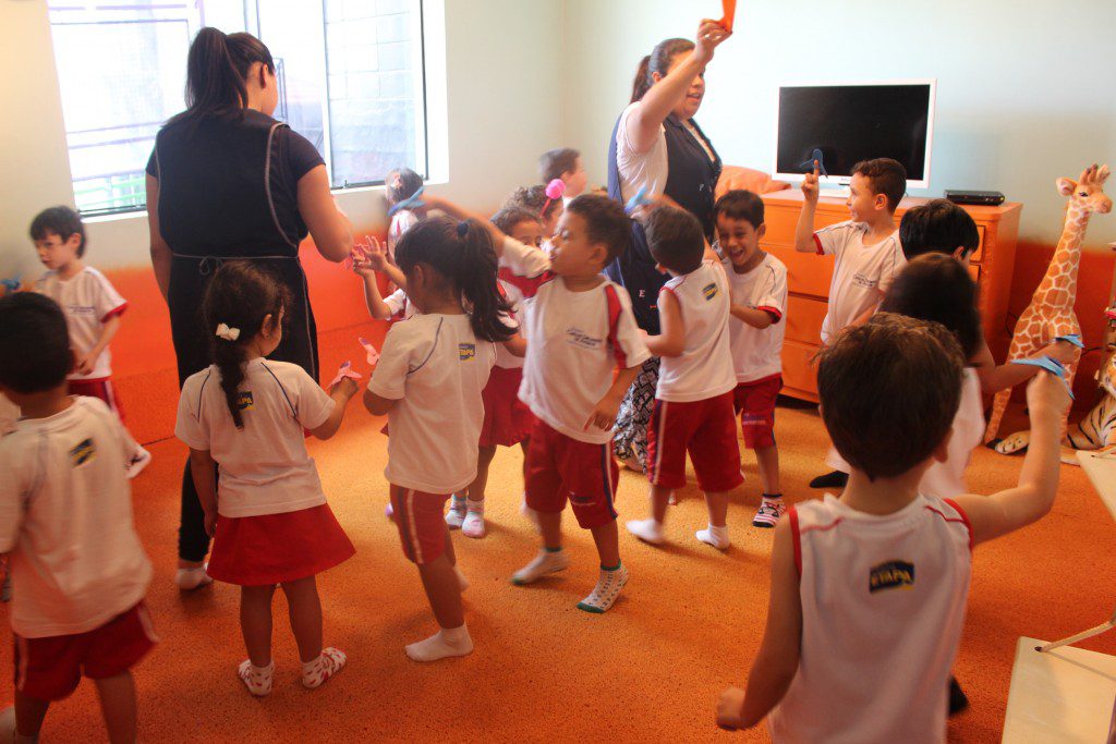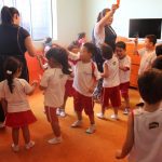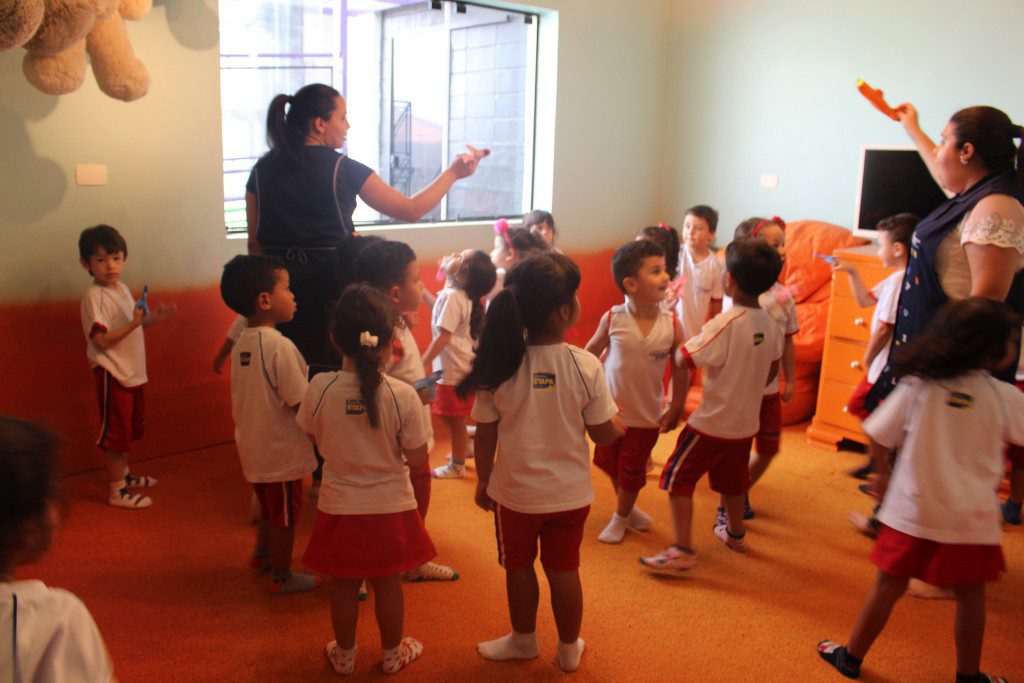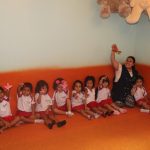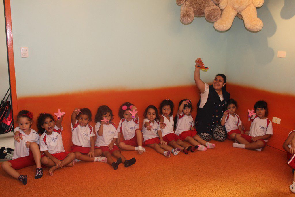 Assim, a turminha do Jardim I embarcou nessa viagem. Descobriram que na palavra “avião” existe a vogal “A”. Nós falamos um pouco sobre os meios de transporte terrestres, aquáticos e aéreos, completamos as palavrinhas “carro, navio e avião” com a vogal “A” e em seguida aprendemos a Canção do Avião.