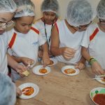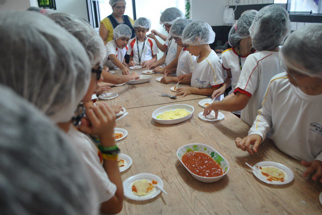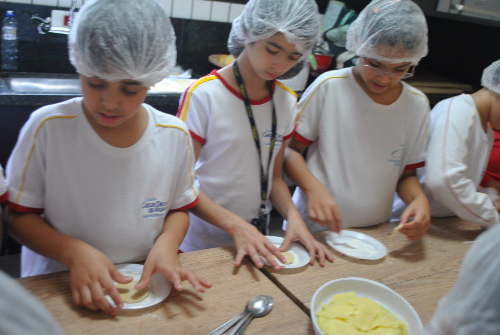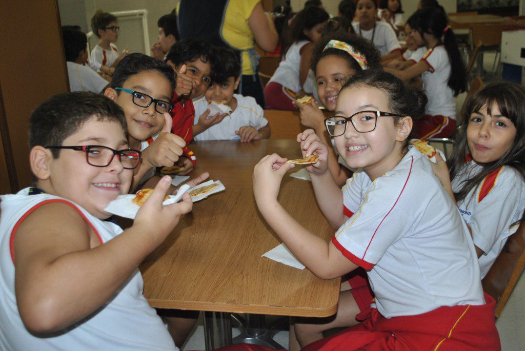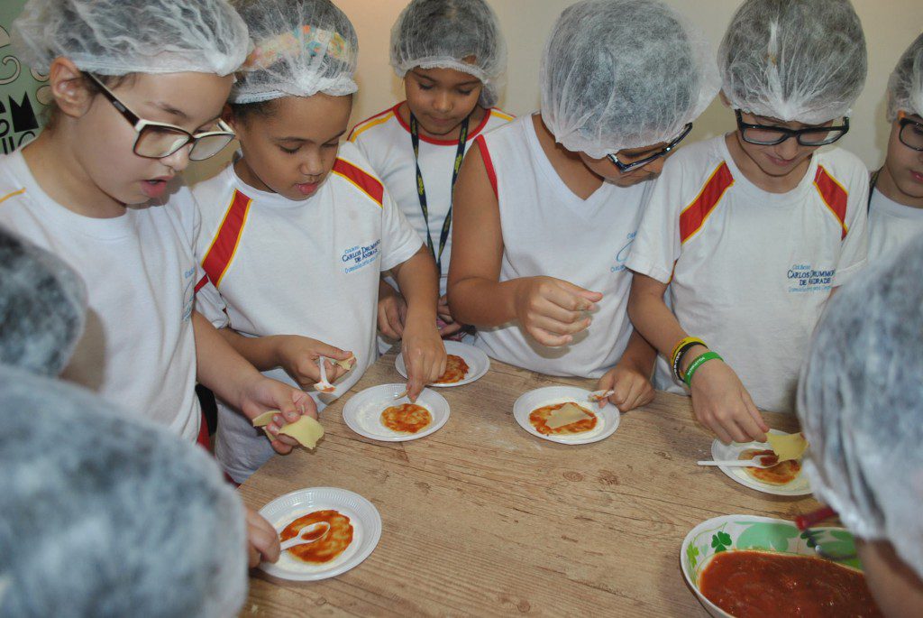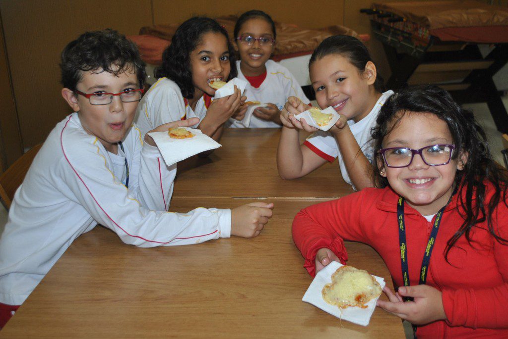 Para “saborear” ainda mais todo nosso aprendizado, colocamos em prática a receita da pizza que também chegou e conquistou os brasileiros! Por um dia, transformamo-nos em “pizzaiolos” e na cozinha experimental produzimos deliciosas mini pizzas. Com certeza ficamos com um gostinho de quero mais, porque aprender assim foi bem mais gostoso!