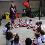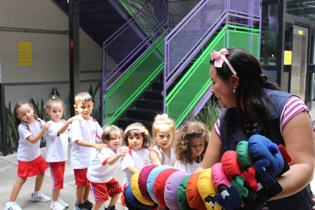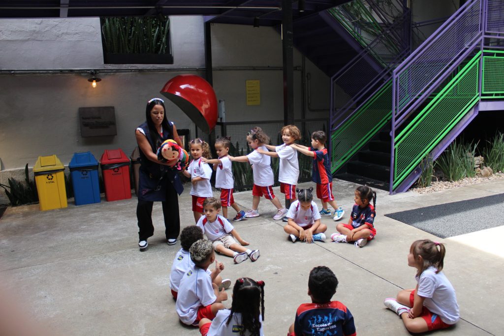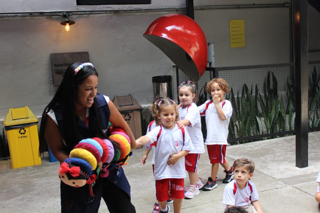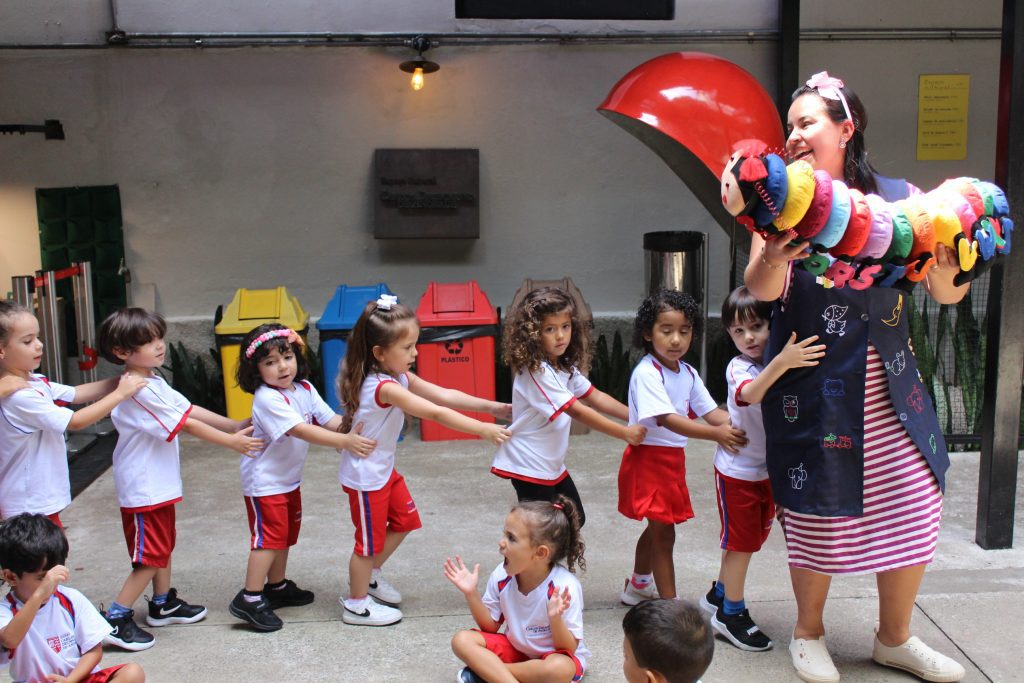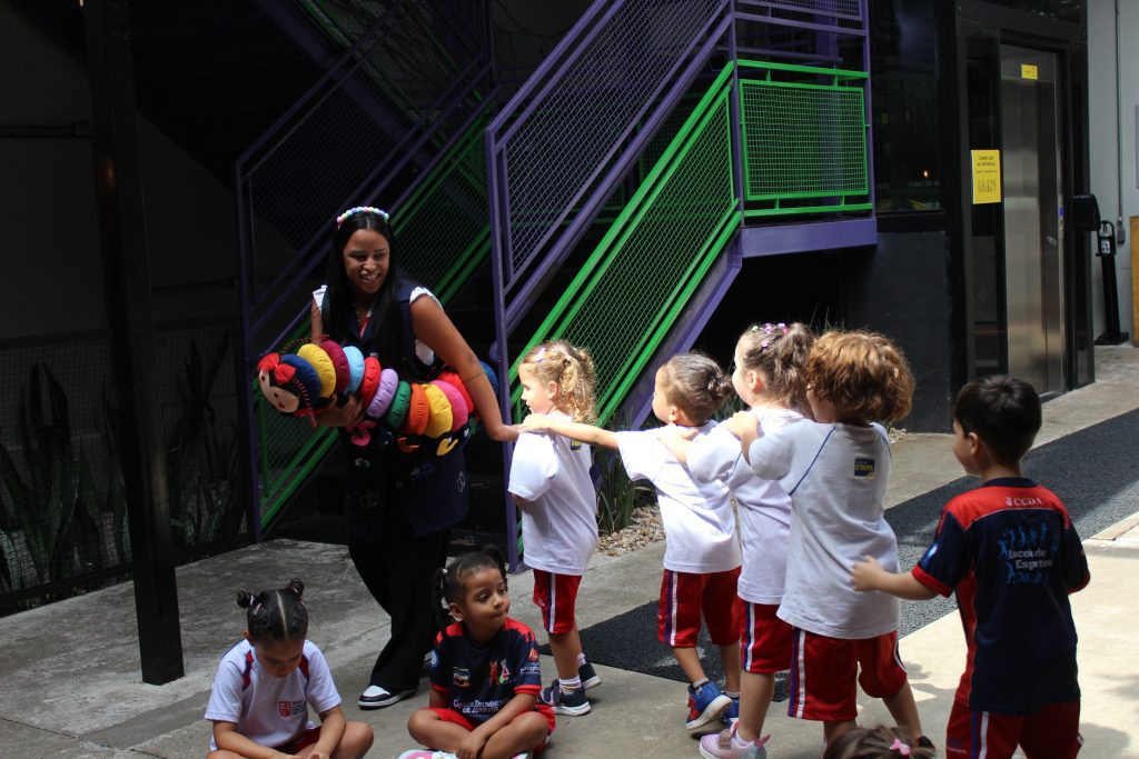Os pequenos do Jardim I participaram de uma atividade especial no Espaço Cultural. Com a cantiga “A História da Serpente” e a ajuda da centopeia, cantaram e se divertiram enquanto aprendiam a formar fila de maneira lúdica.