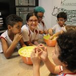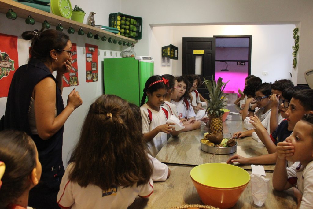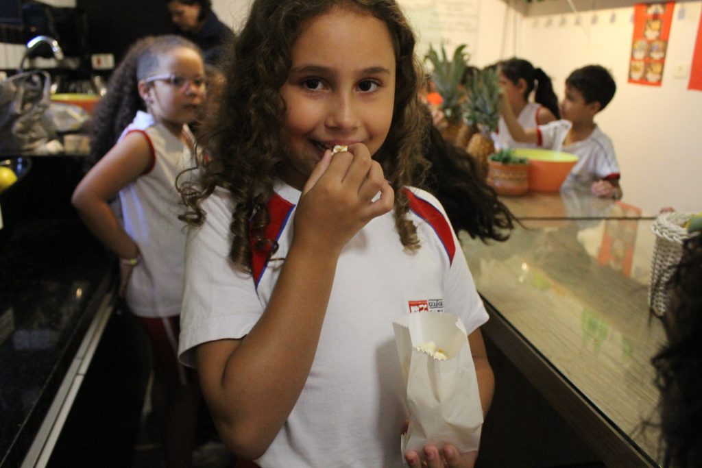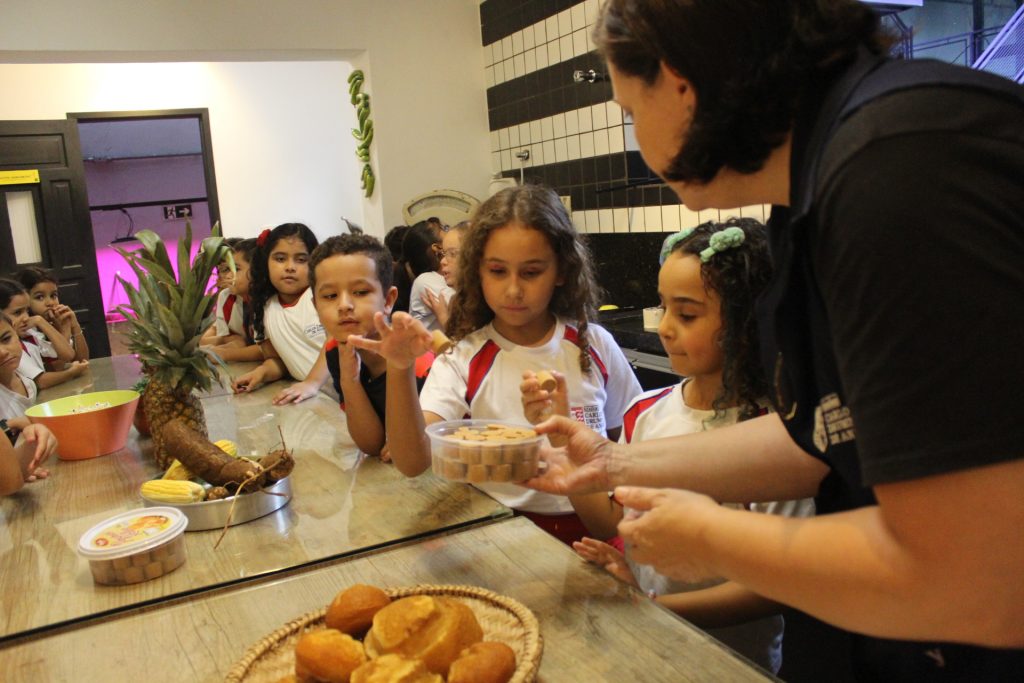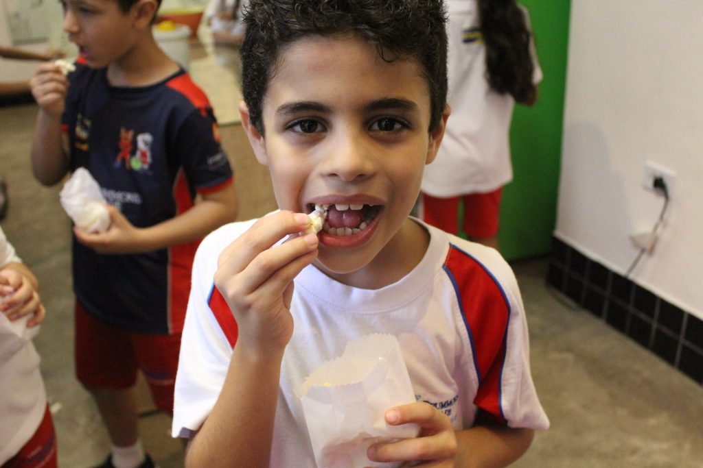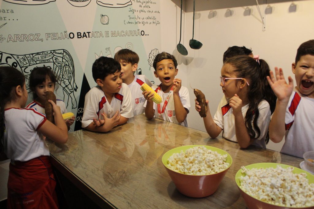 Além disso, aprenderam a origem das palavras “pipoca” e “paçoca”, que vêm do Tupi, uma das línguas indígenas. O termo “pipoca” refere-se ao “milho rebentado”, uma alusão ao estouro dos grãos de milho. Já o termo “paçoca” deriva de “esmigalhar”, podendo ser feita com amendoim e até mesmo outros ingredientes, como carne seca.