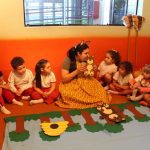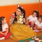 Os alunos do Jardim I conheceram a fábula do Urso e do mel. Nela, o Ursinho guloso, não contente com o mel que tinha em casa, foi pegar mais das abelhas.