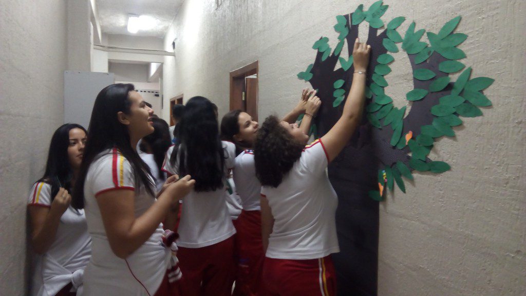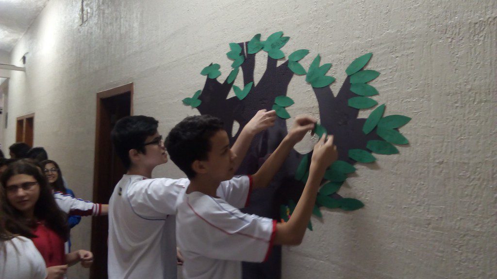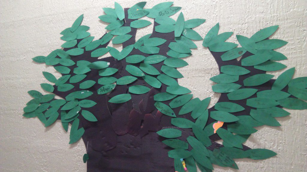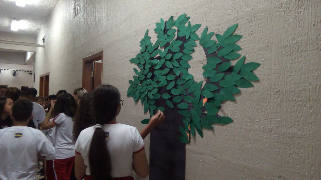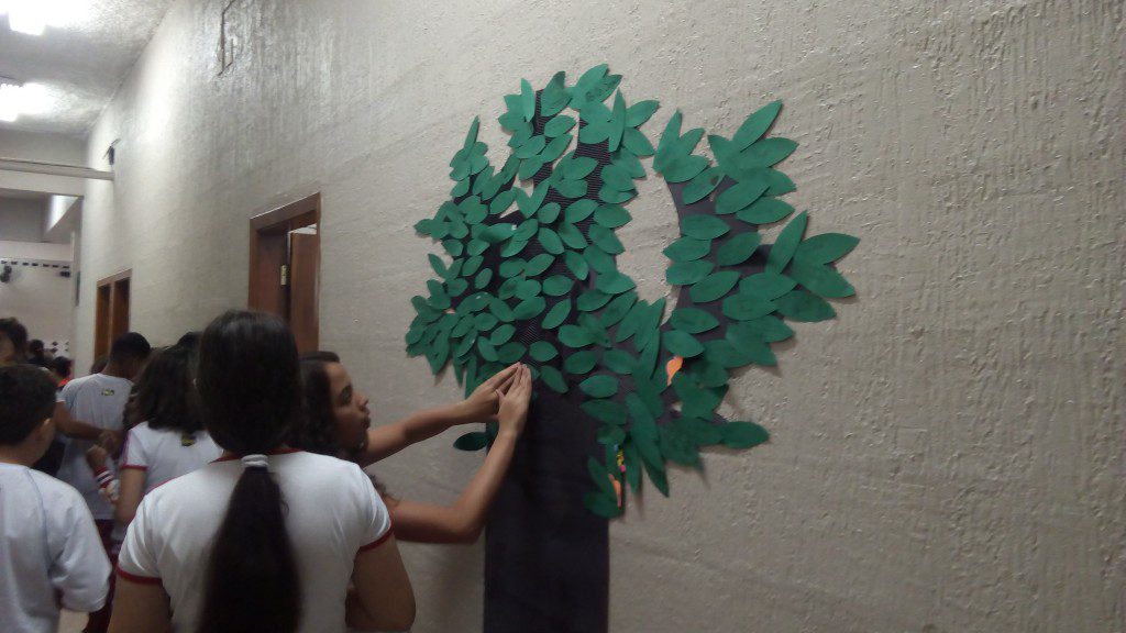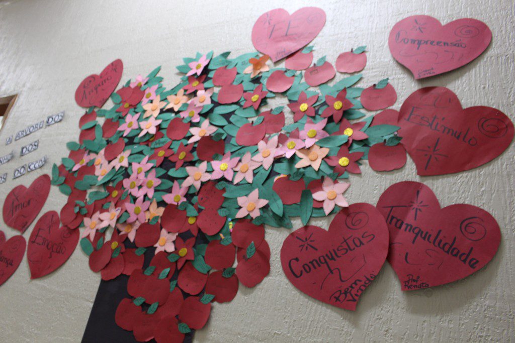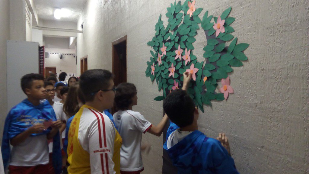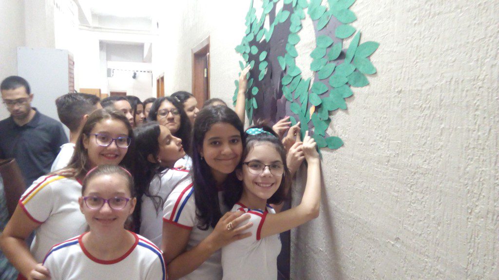 A Coordenação e o corpo docente do CCDA desenvolveram uma atividade de caráter lúdico que envolveu todos os alunos do período matutino: trata-se da “Árvore dos sonhos”. Dividida em caule, folhas e frutos, essa árvore foi montada pelos alunos. Algumas salas receberam as folhas e as demais receberam os frutos e neles os alunos escreveram uma única palavra que representaria o seu sonho para 2018. De folha em folha, a árvore foi ganhando forma, simbolizando com o seu contorno a imagem de uma deusa protetora. Em seguida, dezenas de frutos com o formato de maçã foram sendo colados um a um; e, quando ela já estava repleta, a sensação que transmitia, era a de que guardaria cada pedido e devolveria, ao final do ano, como sonho realizado.