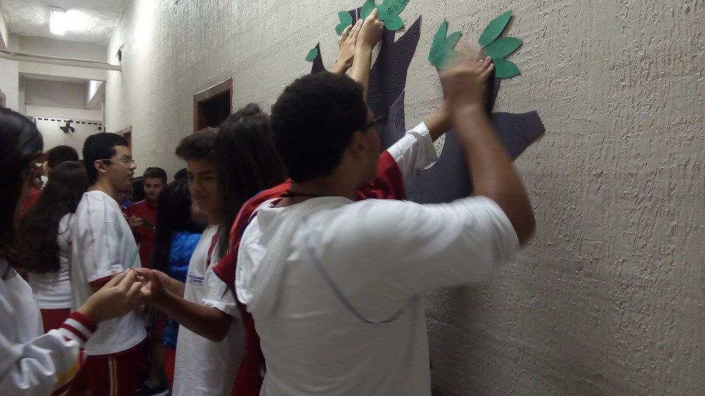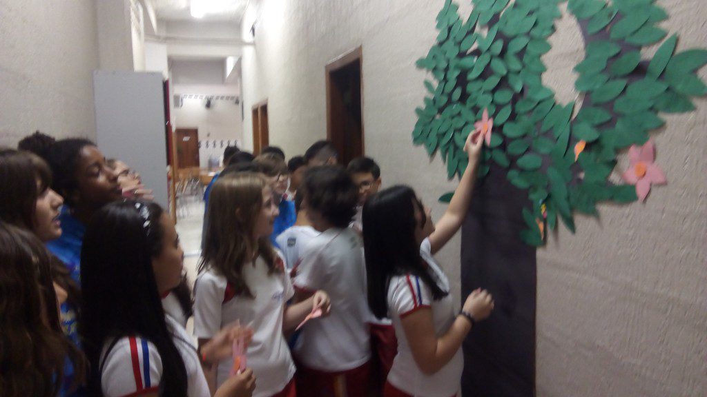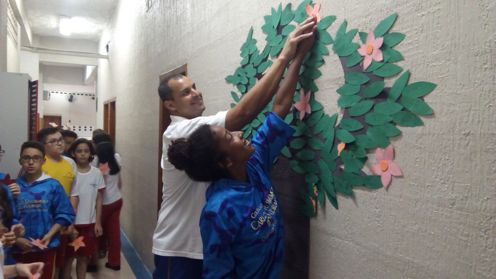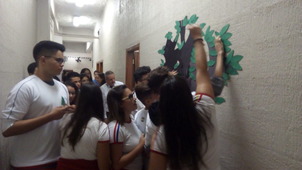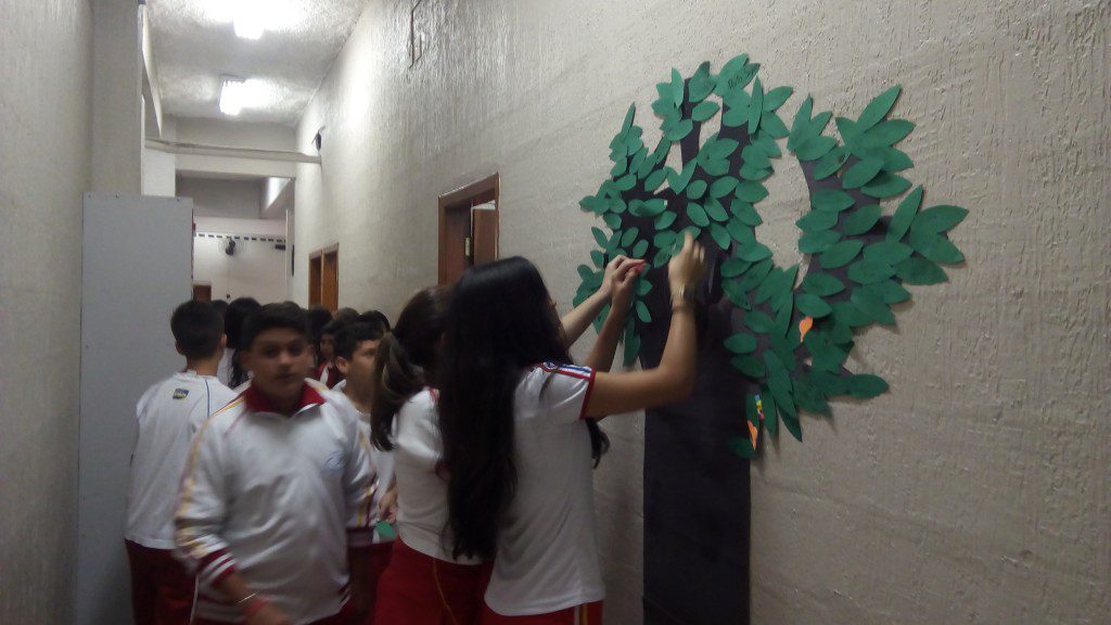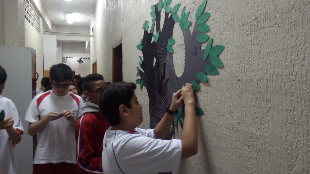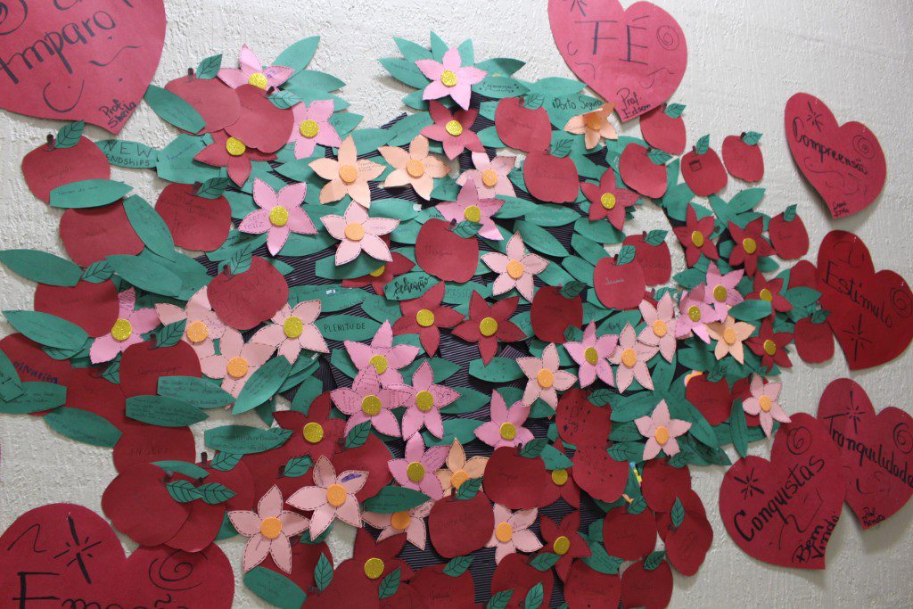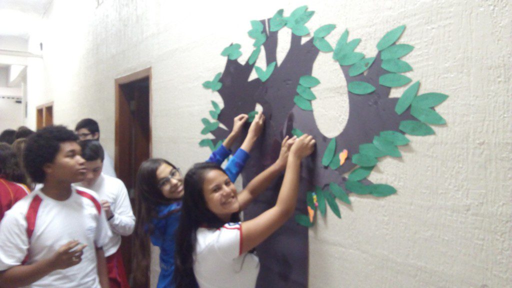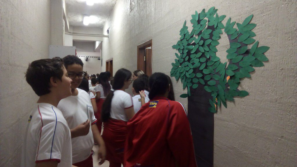 A Coordenação e o corpo docente do CCDA desenvolveram uma atividade de caráter lúdico que envolveu todos os alunos do período matutino: trata-se da “Árvore dos sonhos”. Dividida em caule, folhas e frutos, essa árvore foi montada pelos alunos. Algumas salas receberam as folhas e as demais receberam os frutos e neles os alunos escreveram uma única palavra que representaria o seu sonho para 2018. De folha em folha, a árvore foi ganhando forma, simbolizando com o seu contorno a imagem de uma deusa protetora. Em seguida, dezenas de frutos com o formato de maçã foram sendo colados um a um; e, quando ela já estava repleta, a sensação que transmitia, era a de que guardaria cada pedido e devolveria, ao final do ano, como sonho realizado.