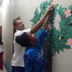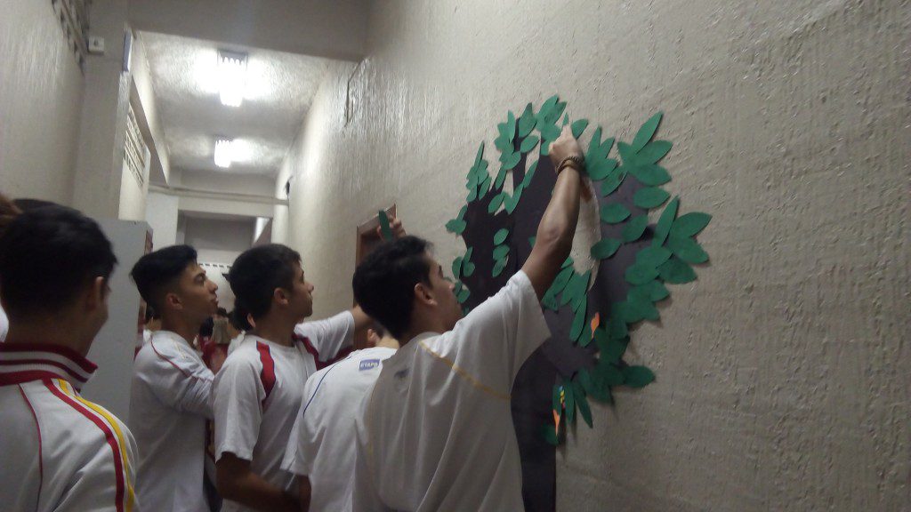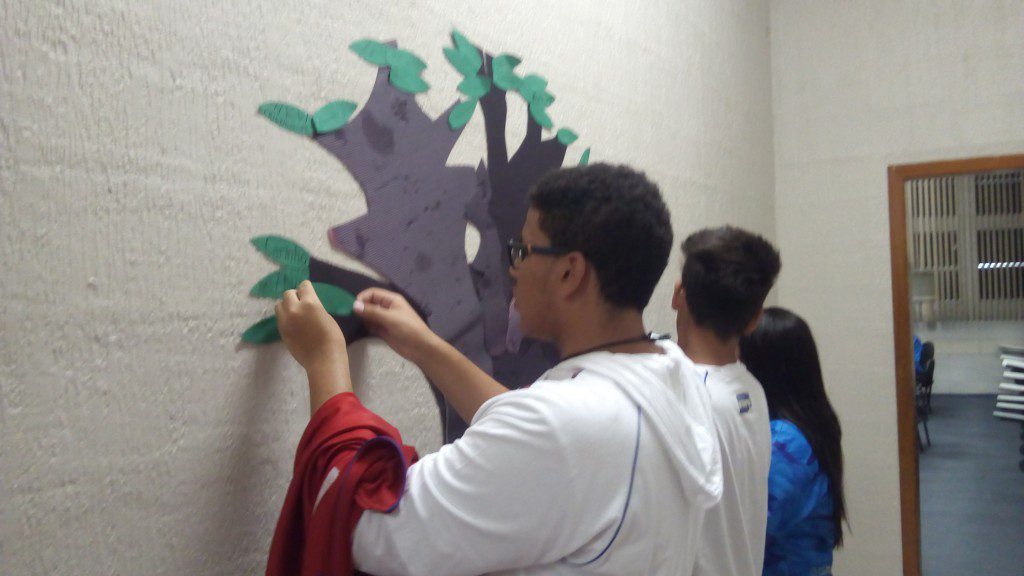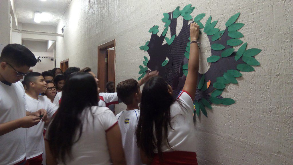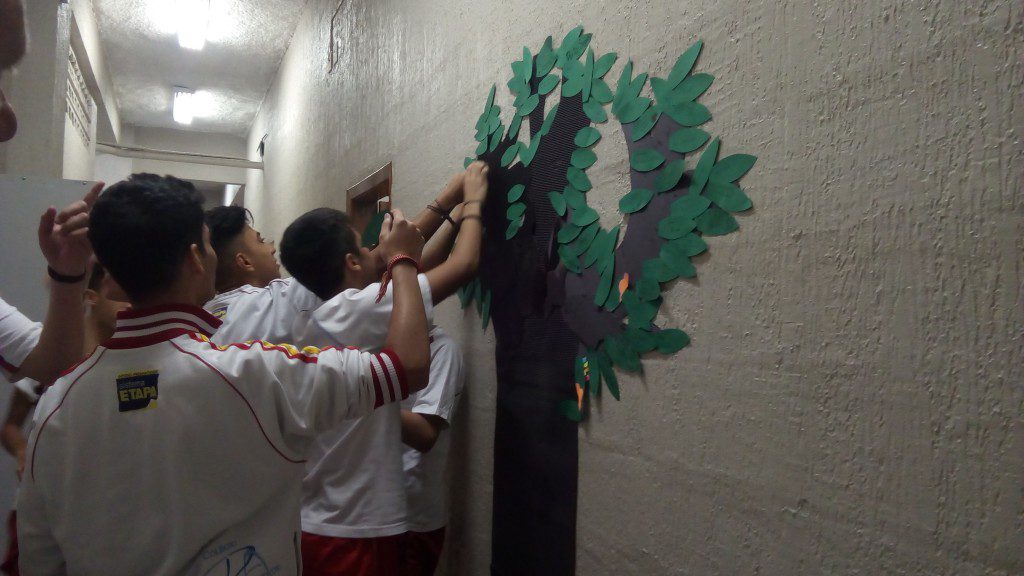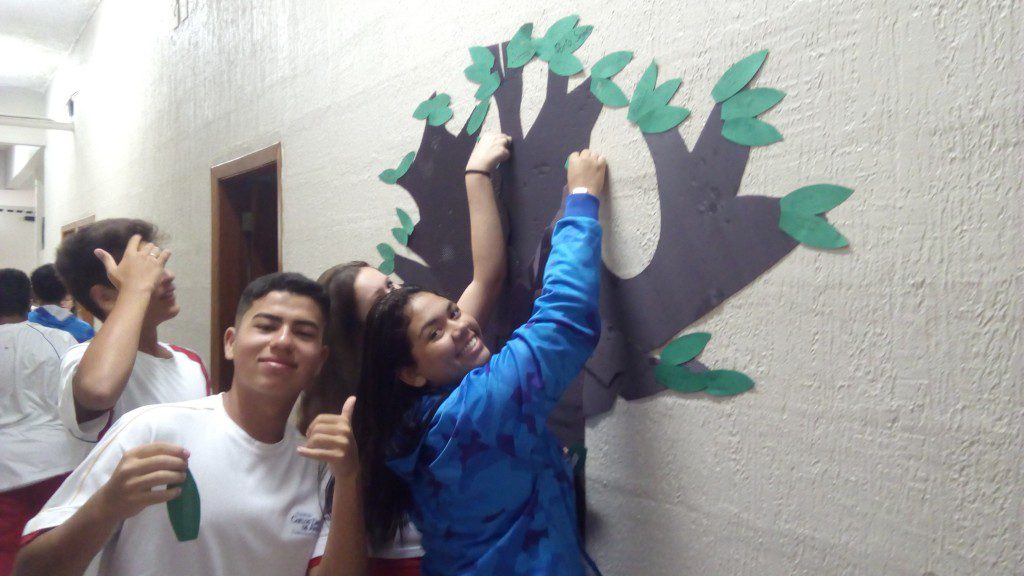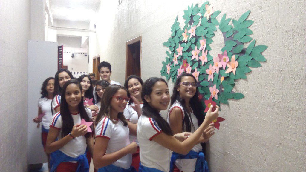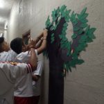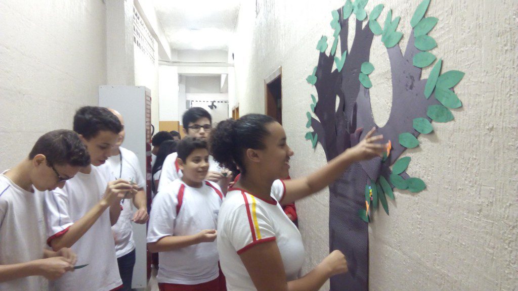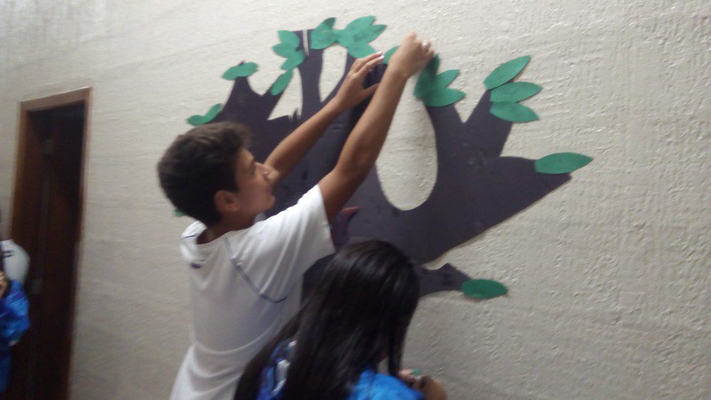 A Coordenação e o corpo docente do CCDA desenvolveram uma atividade de caráter lúdico que envolveu todos os alunos do período matutino: trata-se da “Árvore dos sonhos”. Dividida em caule, folhas e frutos, essa árvore foi montada pelos alunos. Algumas salas receberam as folhas e as demais receberam os frutos e neles os alunos escreveram uma única palavra que representaria o seu sonho para 2018. De folha em folha, a árvore foi ganhando forma, simbolizando com o seu contorno a imagem de uma deusa protetora. Em seguida, dezenas de frutos com o formato de maçã foram sendo colados um a um; e, quando ela já estava repleta, a sensação que transmitia, era a de que guardaria cada pedido e devolveria, ao final do ano, como sonho realizado.