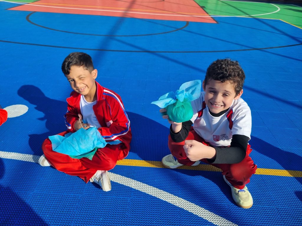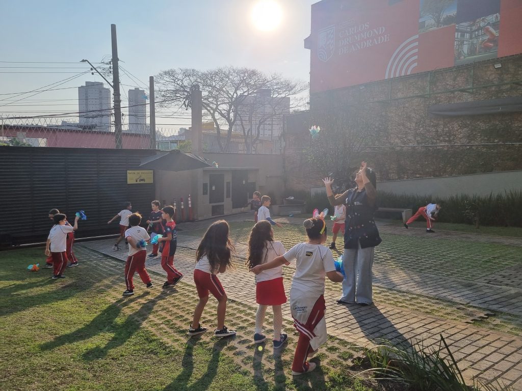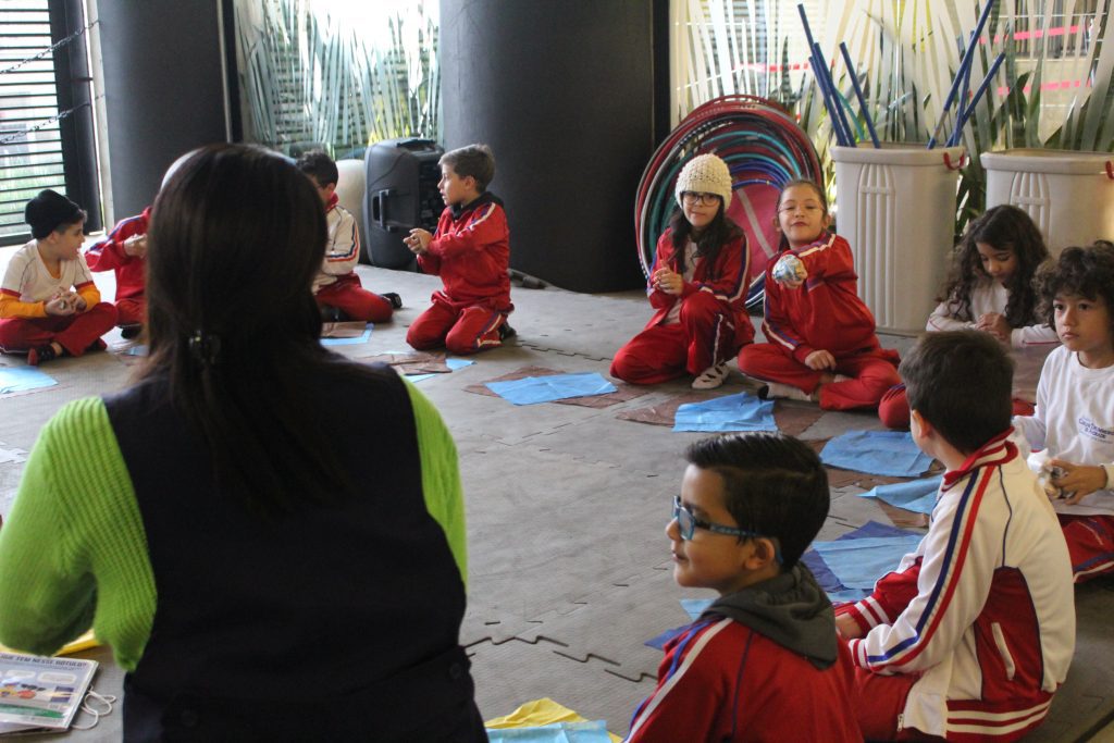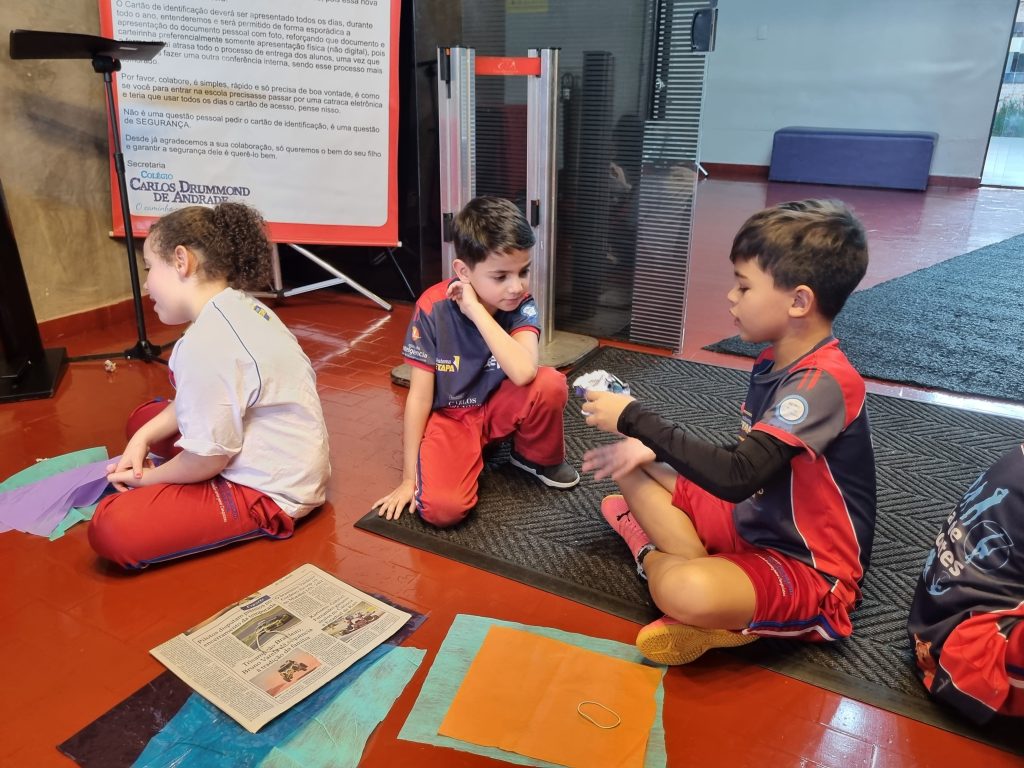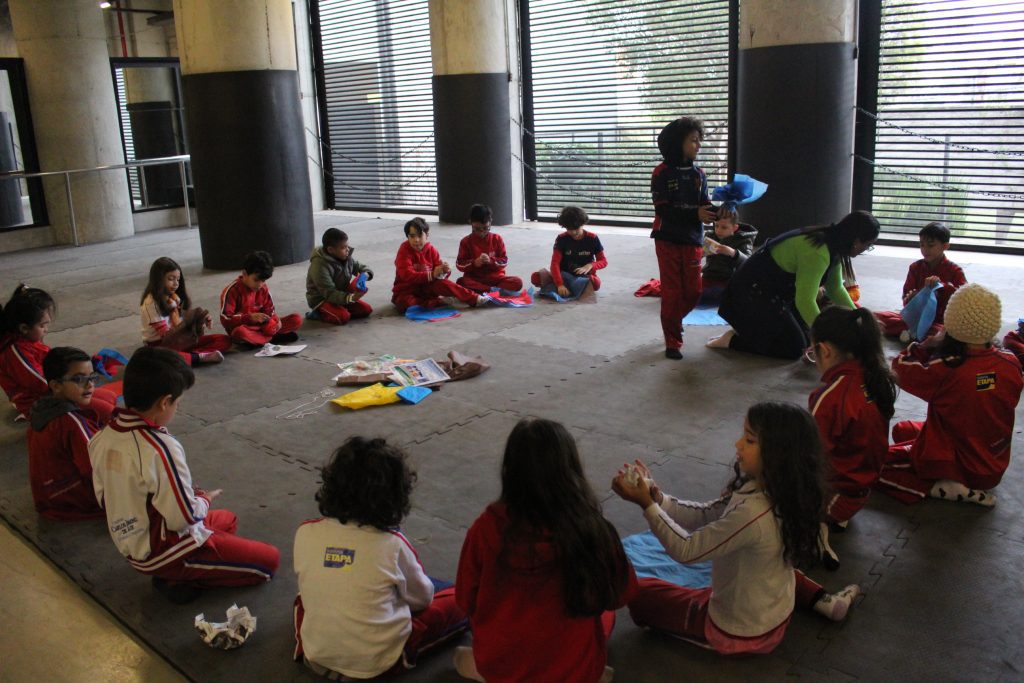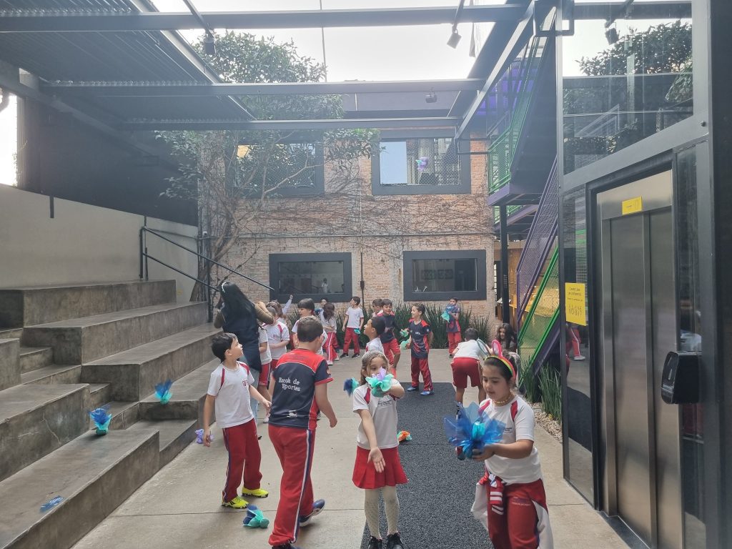 Os alunos conheceram a Peteca, um objeto/brinquedo que possui origem indígena. Na escola, os alunos puderam criar suas próprias Petecas utilizando papel, tecido e elástico, mas compreenderam que em sua origem, o brinquedo é confeccionado com elementos da natureza, como penas e palha seca.