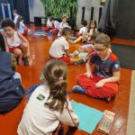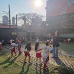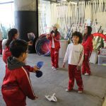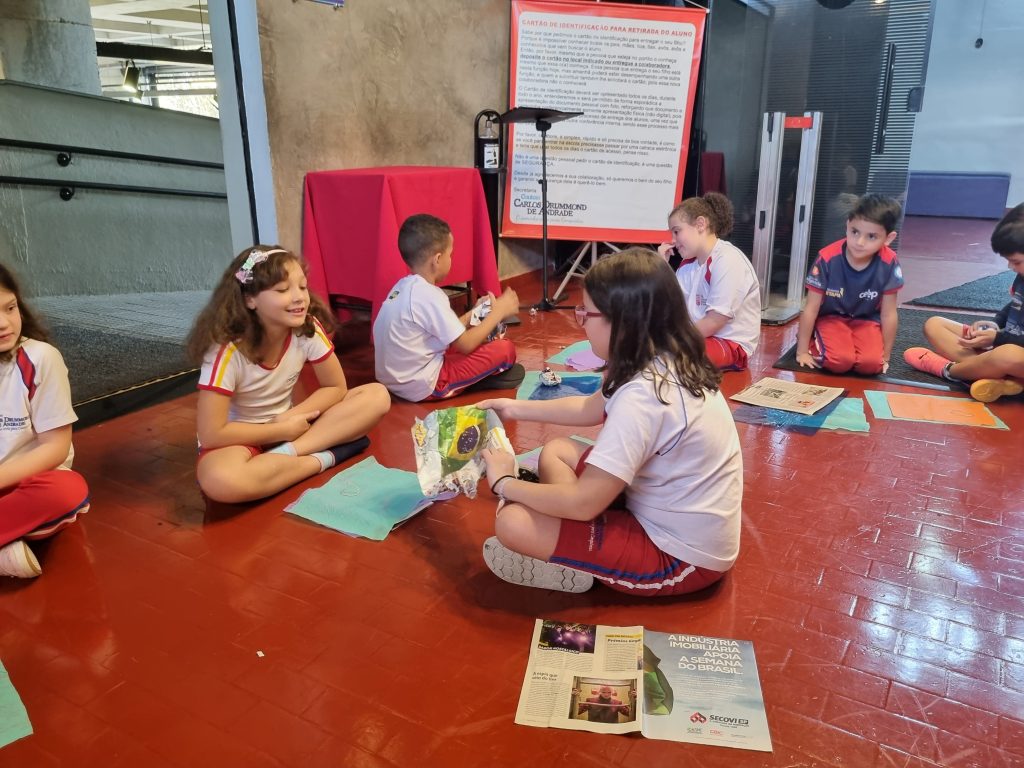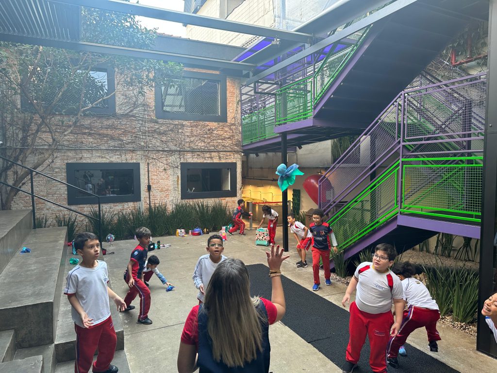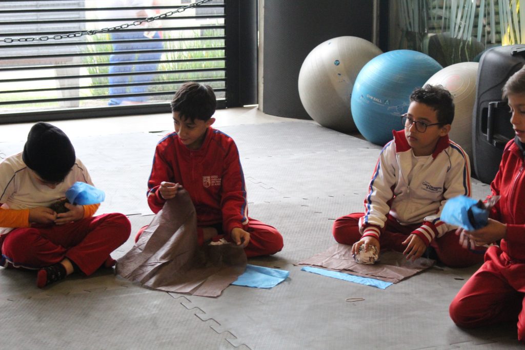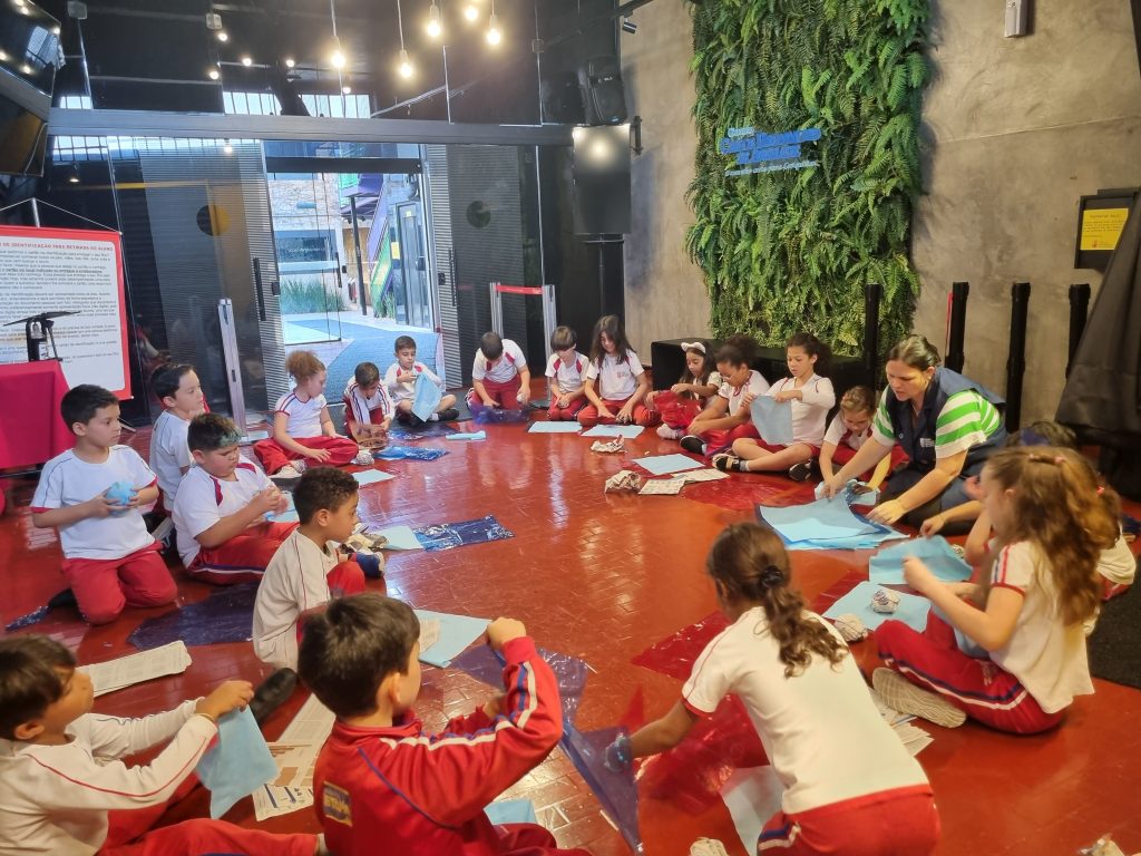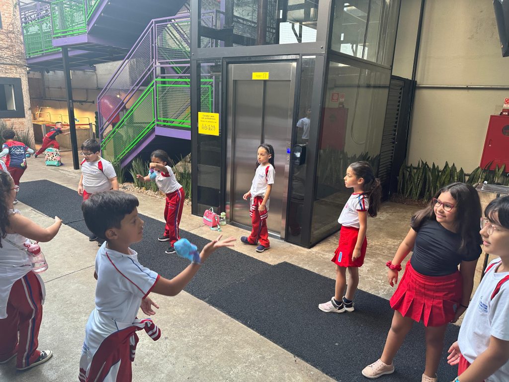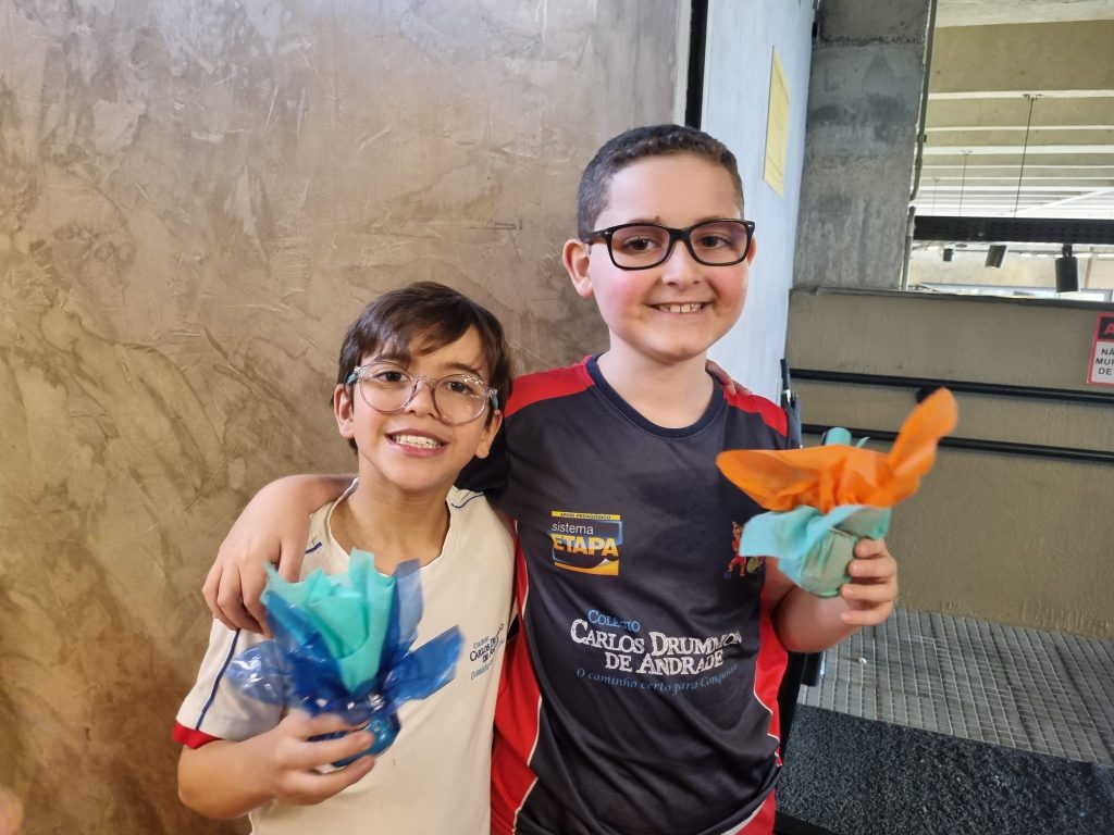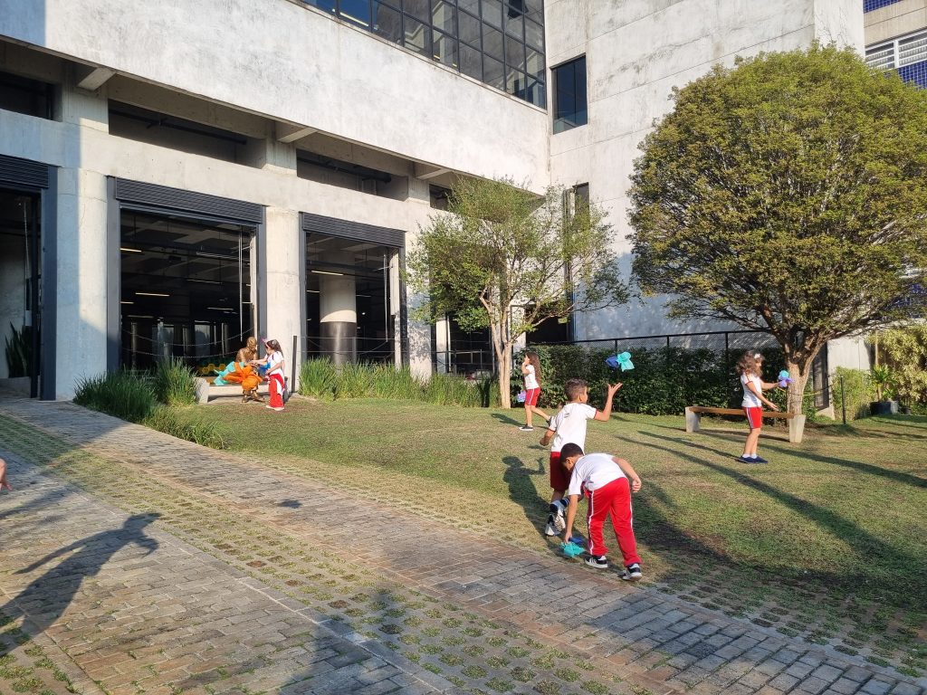 Os alunos conheceram a Peteca, um objeto/brinquedo que possui origem indígena. Na escola, os alunos puderam criar suas próprias Petecas utilizando papel, tecido e elástico, mas compreenderam que em sua origem, o brinquedo é confeccionado com elementos da natureza, como penas e palha seca.