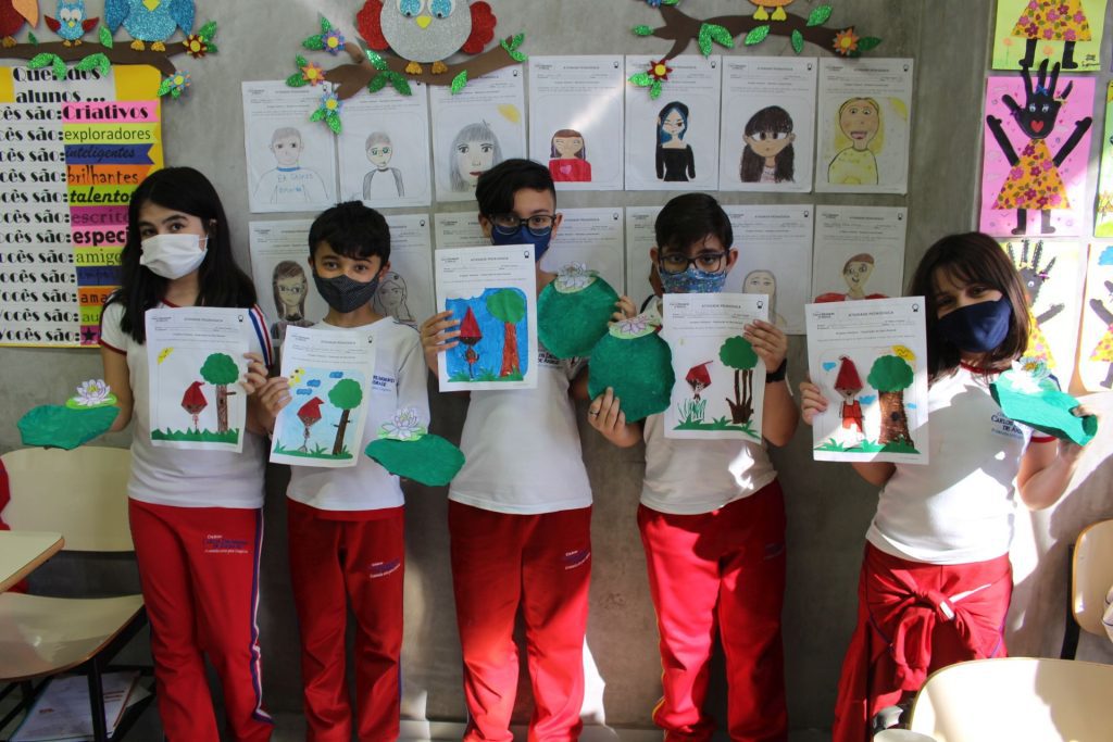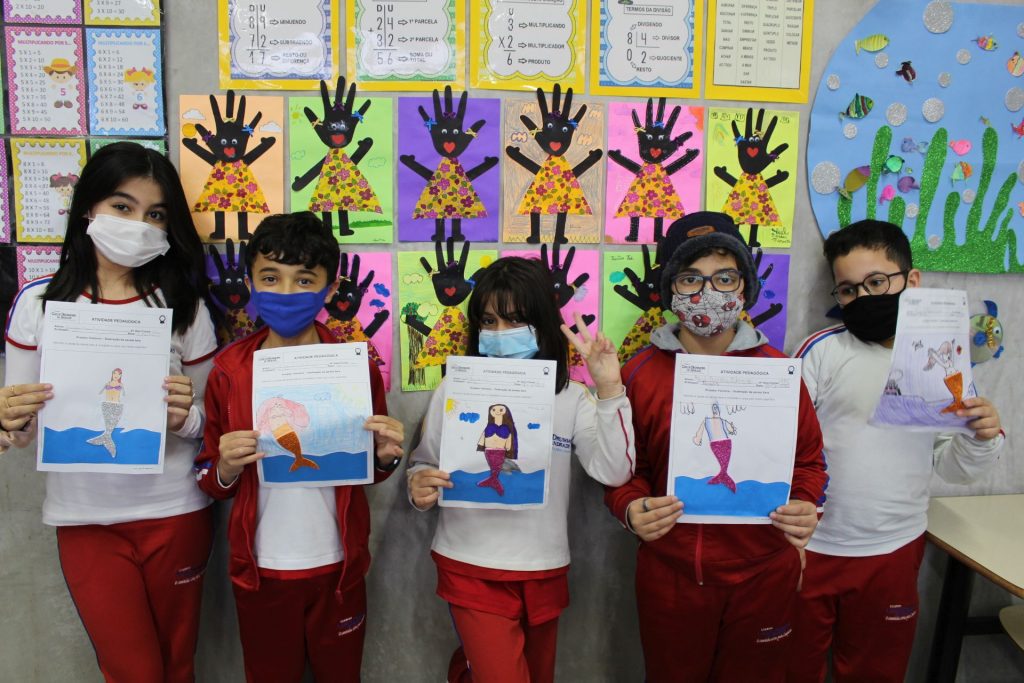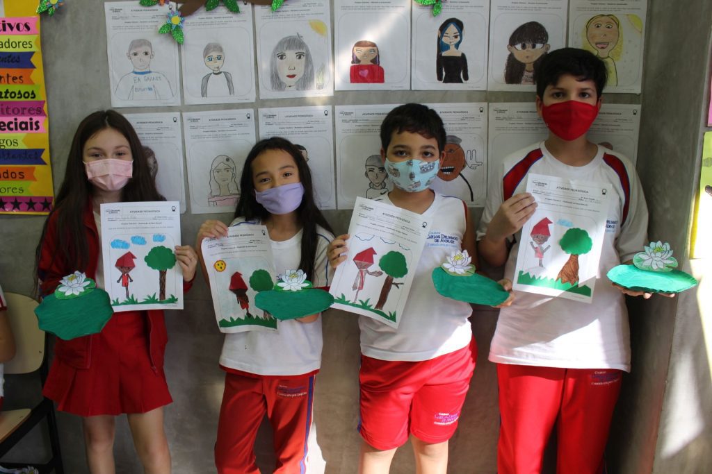 Os alunos confeccionaram utilizando as técnicas de desenho e colagem, um lindo Saci, com seu gorro vermelho e a Sereia Iara, com sua linda cauda. Trabalhando com tinta, produziram uma incrível Vitória-Régia. Com a técnica de Xilogravura, cada aluno confeccionou um personagem folclórico, e reunidos em grupos, inspirados nas lendas, criaram lindos cordéis que compartilharam com a turma.