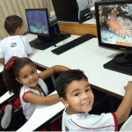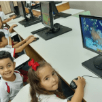 Na aula de informática, os alunos da Educação Infantil aprenderam a utilizar o programa GCompris da Microkids.