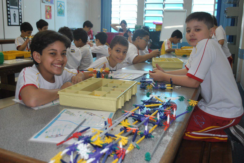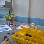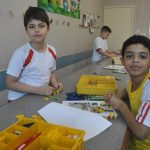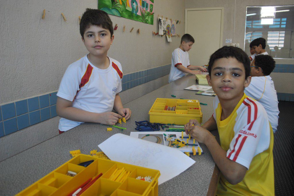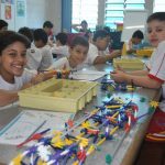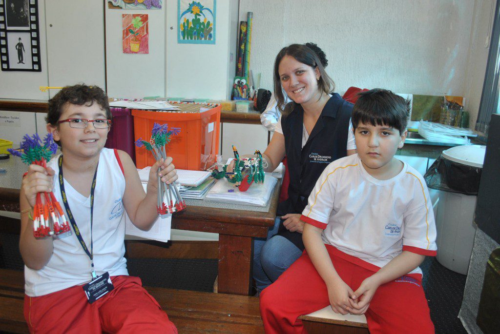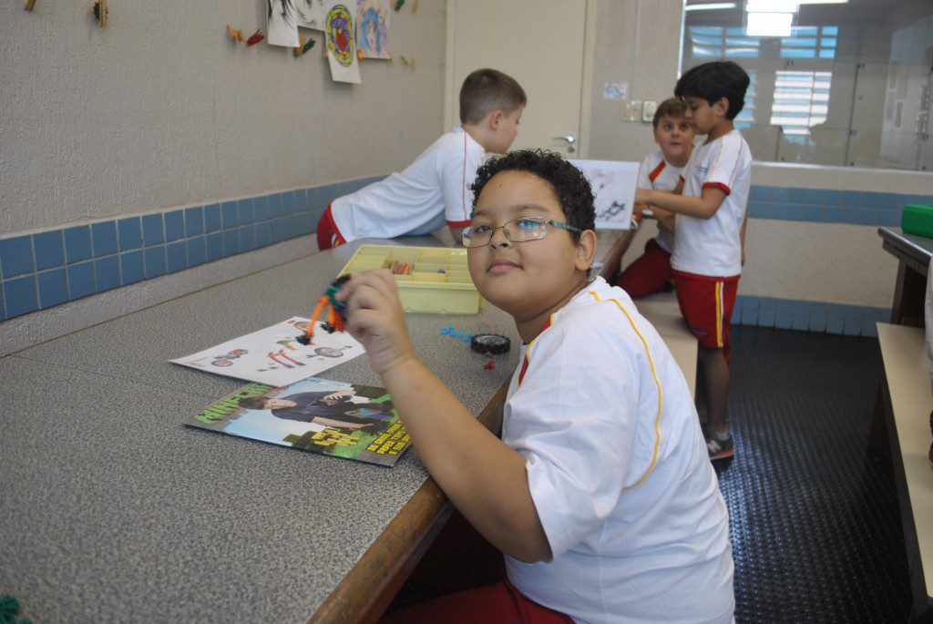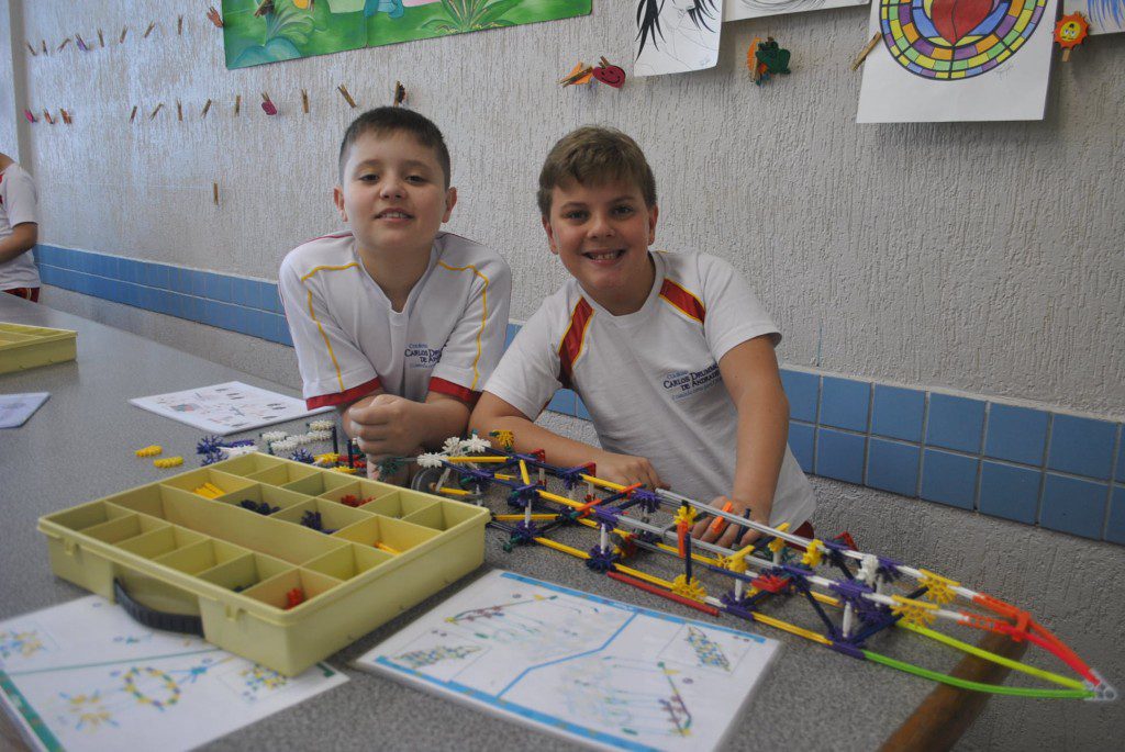 Retornamos às aulas de Robótica com muita animação e muita sede de aprender: Novos desafios foram lançados. Com isso, na primeira aula do semestre, o tema abordado foi o carrossel e o movimento circular. Observamos que o carrossel gira ao redor de seu eixo e que a trajetória percorrida pelos cavalinhos se deslocam numa trajetória retilínea, fazendo o movimento de subida e descida. Vimos que após ligar o motor cada cavalinho completava uma volta no mesmo tempo e, assim, concluímos que se tratava de um movimento circular uniforme. Assim, falamos, também, sobre período, tempo, velocidade angular e força centrípeta.
