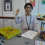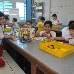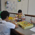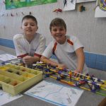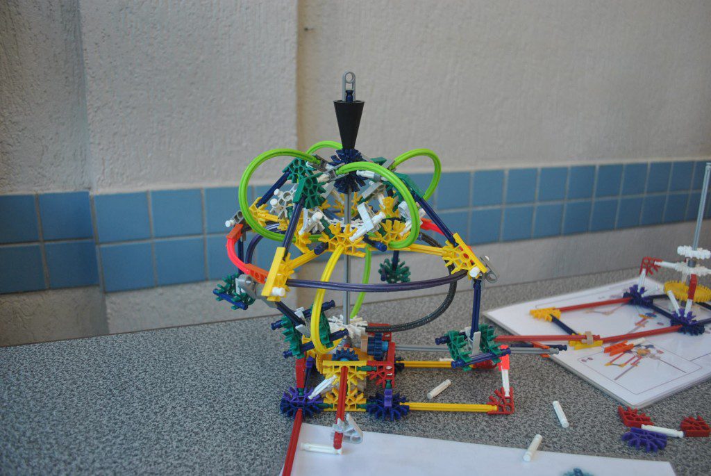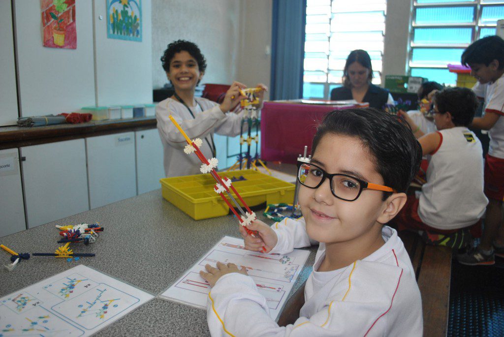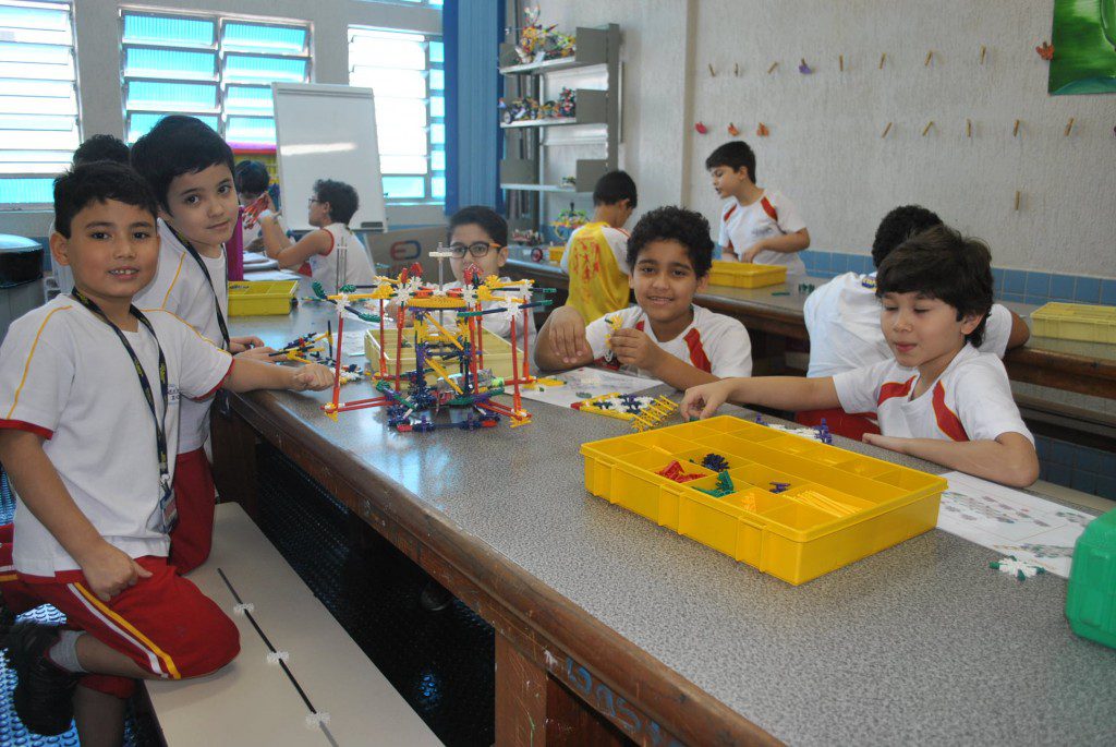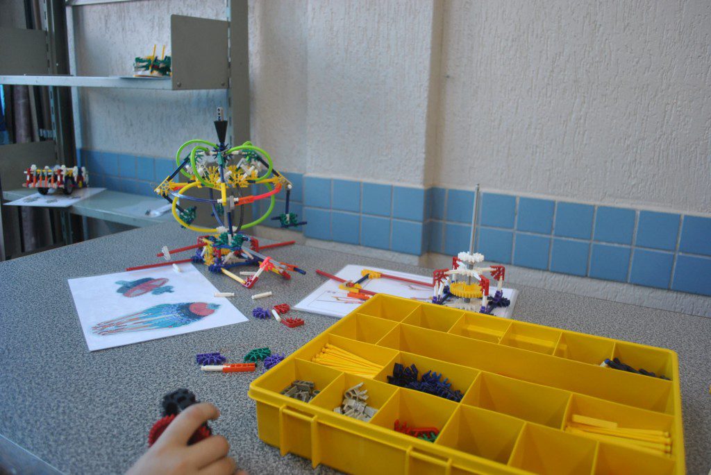 Retornamos às aulas de Robótica com muita animação e muita sede de aprender: Novos desafios foram lançados. Com isso, na primeira aula do semestre, o tema abordado foi o carrossel e o movimento circular. Observamos que o carrossel gira ao redor de seu eixo e que a trajetória percorrida pelos cavalinhos se deslocam numa trajetória retilínea, fazendo o movimento de subida e descida. Vimos que após ligar o motor cada cavalinho completava uma volta no mesmo tempo e, assim, concluímos que se tratava de um movimento circular uniforme. Assim, falamos, também, sobre período, tempo, velocidade angular e força centrípeta.