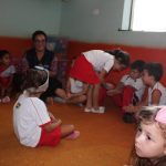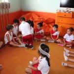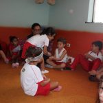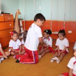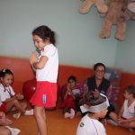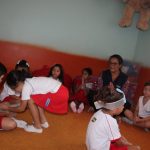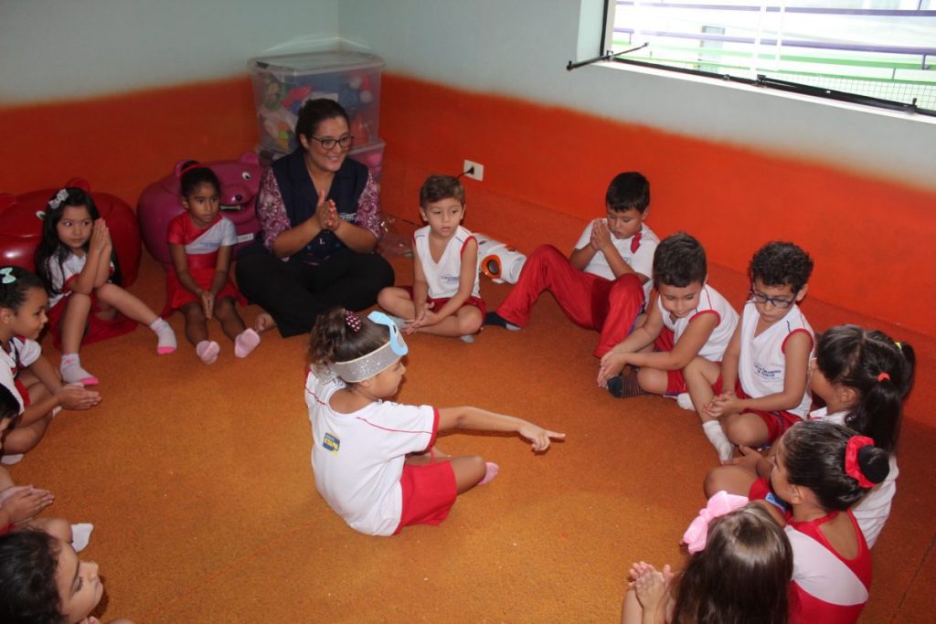 Em uma das aulas no Jardim II B, iniciamos com uma música muito divertida que falava de um menino chamado Manuel. Ele estava brincando de passar o anel e os alunos deveriam adivinhar com quem estava o objeto.