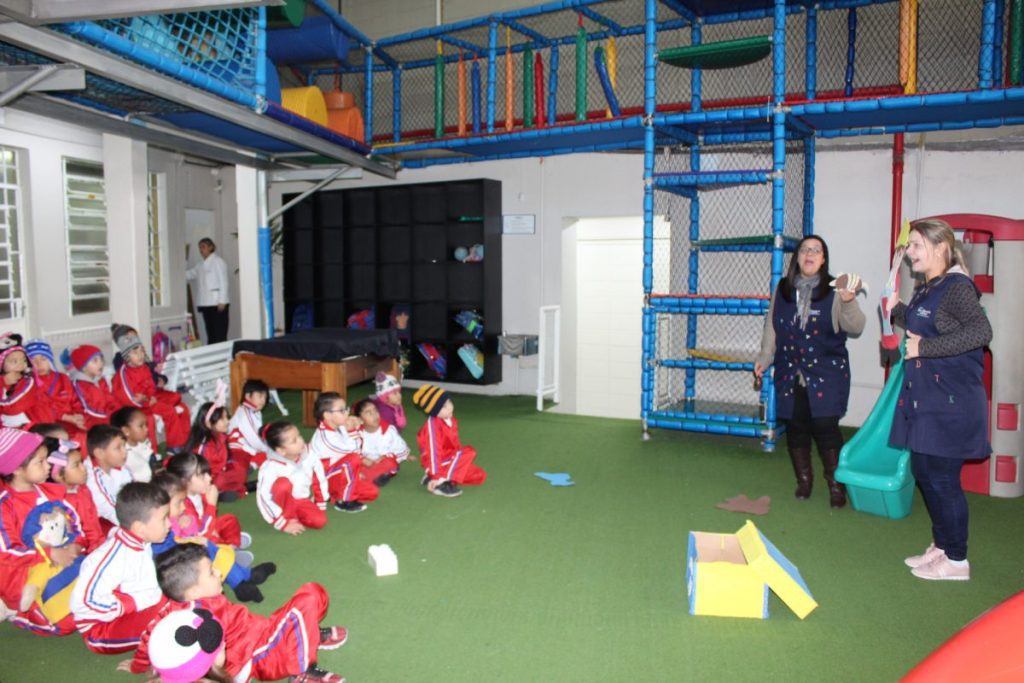 A Cartita e a Carla chegaram com uma grande surpresa: era dia de história e a surpresa estava no parque