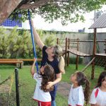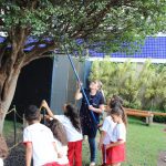 E em meio a essa coleta coletiva com direito a muitas brincadeiras, sorrisos e uma alegria contagiante entre os alunos por estarem desfrutando de um momento simplesmente diferente, o mais importante foi vê-los com o interesse em ajudar e compartilhar com os amigos as frutinhas colhidas.