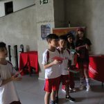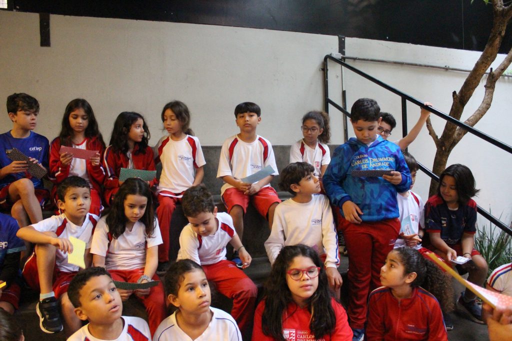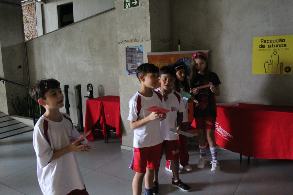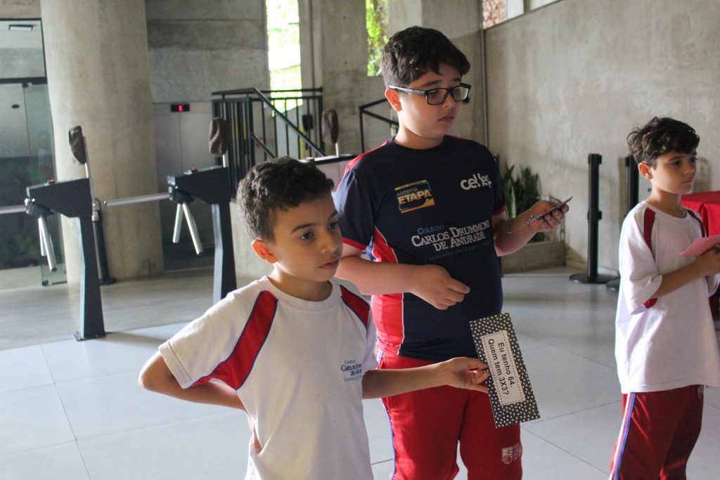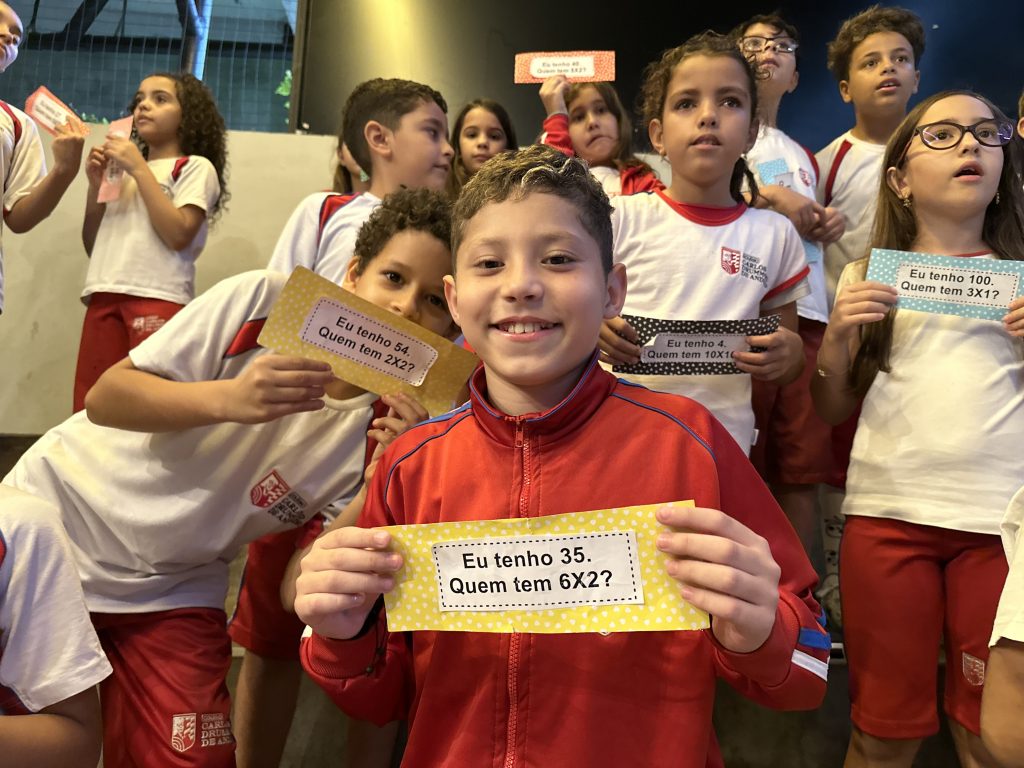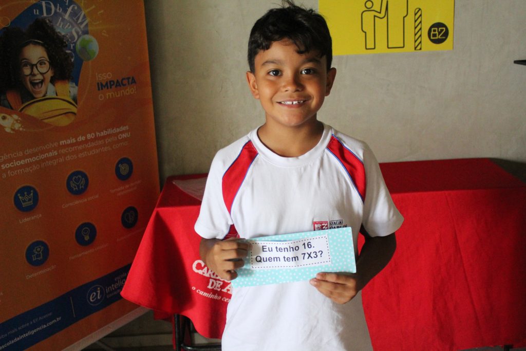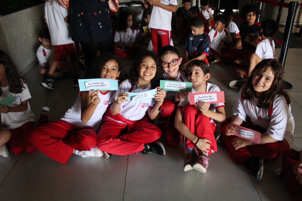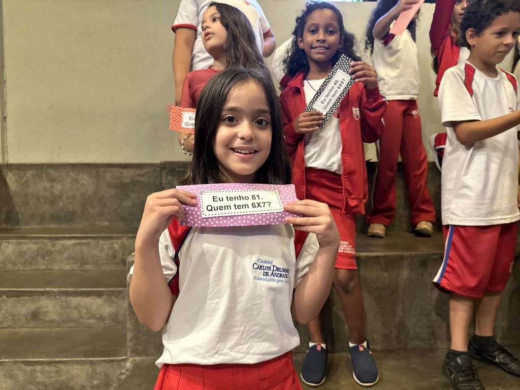 Em uma brincadeira divertida, cada aluno possuía em mãos uma ficha com um número e um cálculo, o aluno a iniciar deveria dizer seu número e perguntar quem era o dono do número resultante do cálculo em sua ficha. “Eu tenho 15. Quem tem 10×5?”. Assim era o formato do desafio, criando uma grande sequência a partir dos resultados. Os alunos deveriam ser rápidos o suficiente para calcular o resultado da conta e verificar se esse era o número em sua ficha.