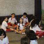 Cada grupo ensaiou um teatro para apresentar o combinado a fim que os demais colegas o descobrissem. Foi uma aula muito produtiva!