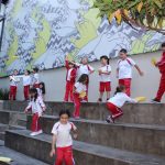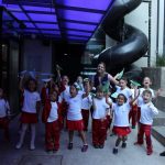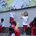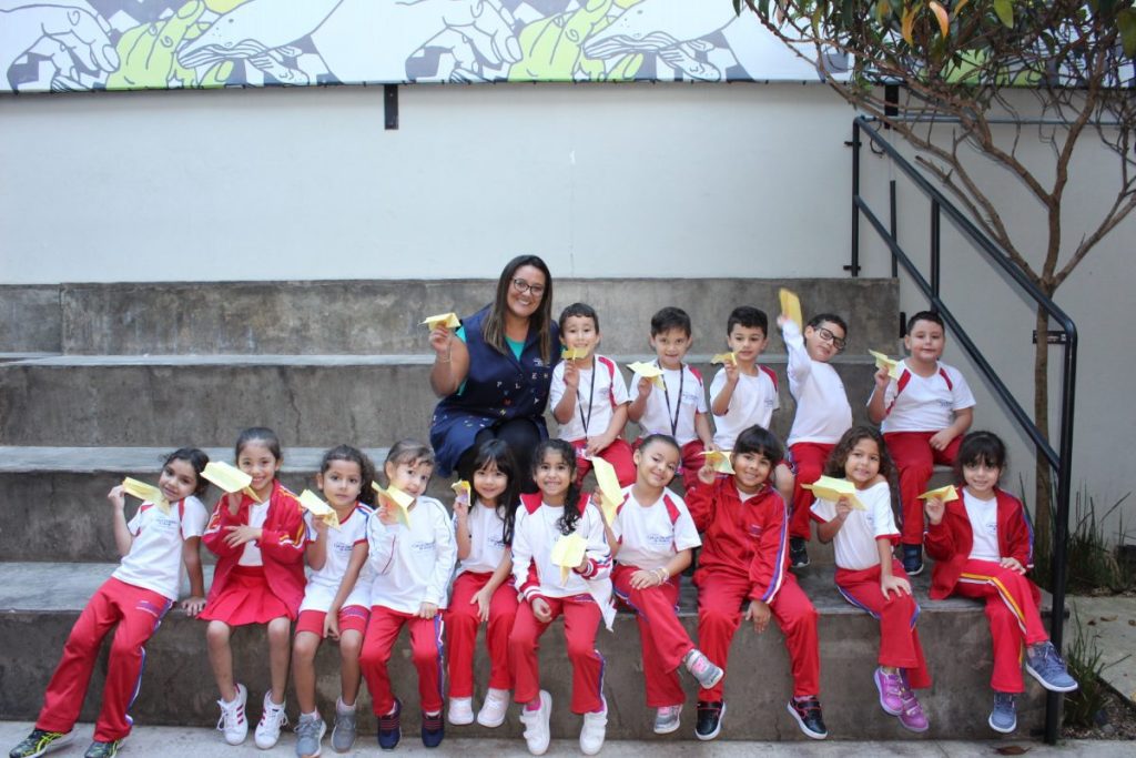 E para a aula ficar mais divertida, os alunos receberam dobraduras de aviões azuis e puderam brincar no Pátio Aberto do CCDA.