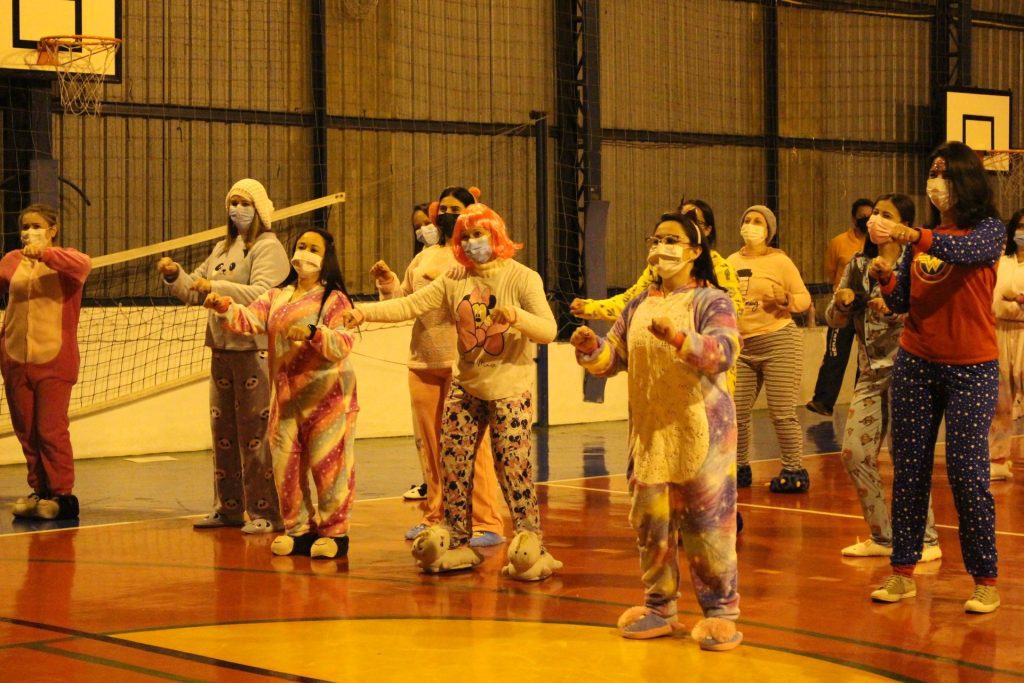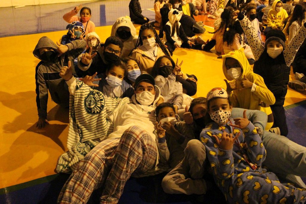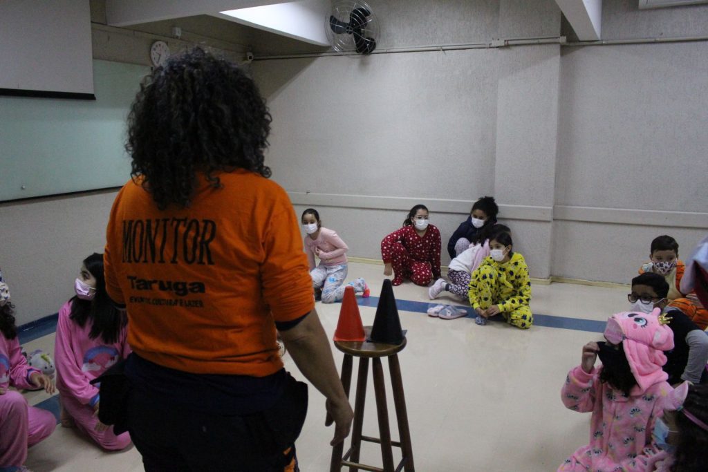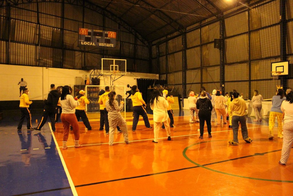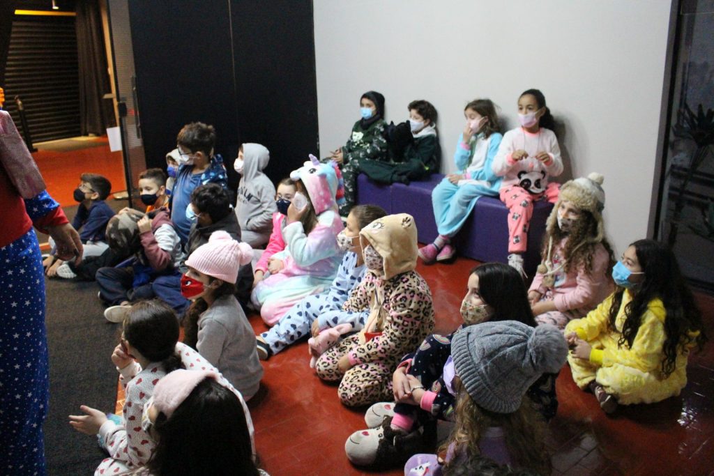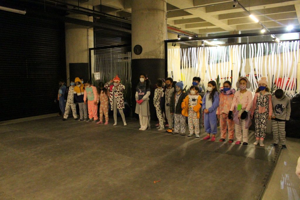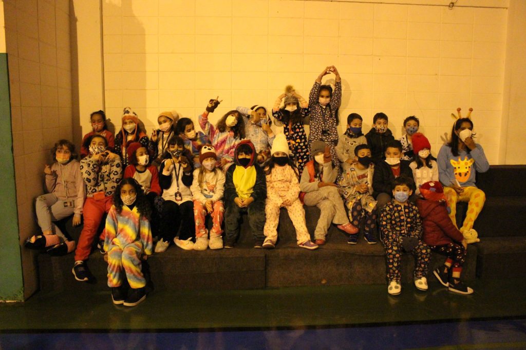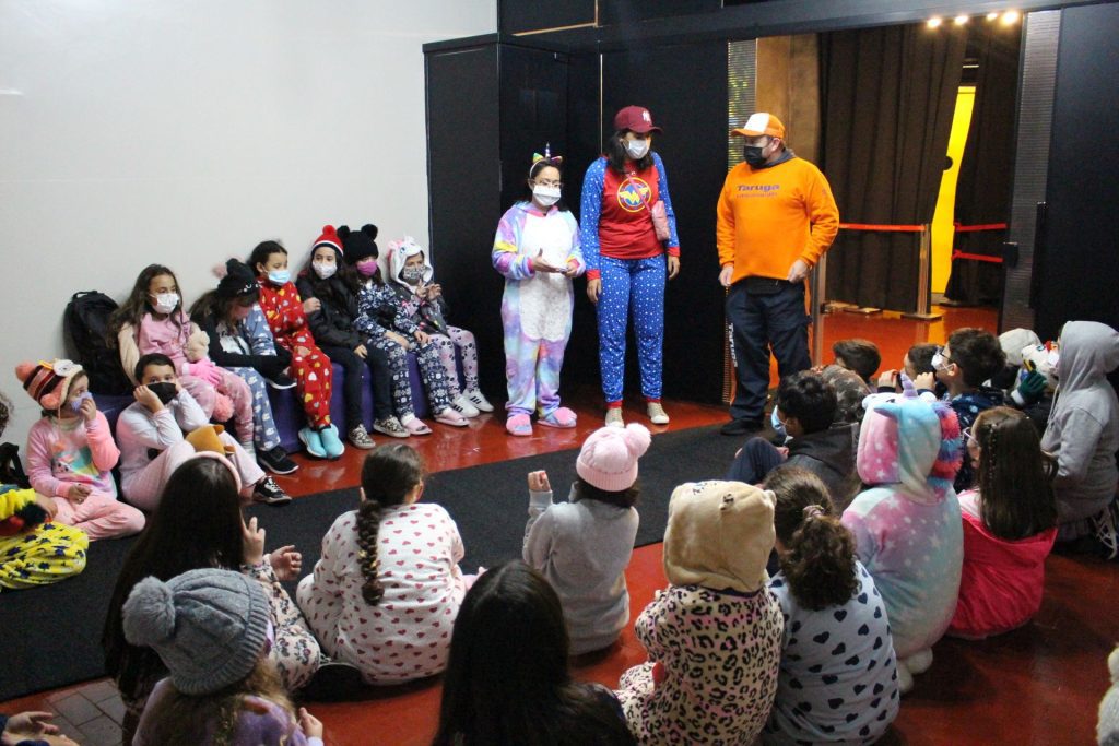 Os alunos foram recepcionados e direcionados ao Ginásio Poliesportivo para dar início à festa com uma dinâmica de boas-vindas muito animada. E as crianças, é claro, vieram com seus lindos pijamas para entrar no ritmo do Drummond Night.