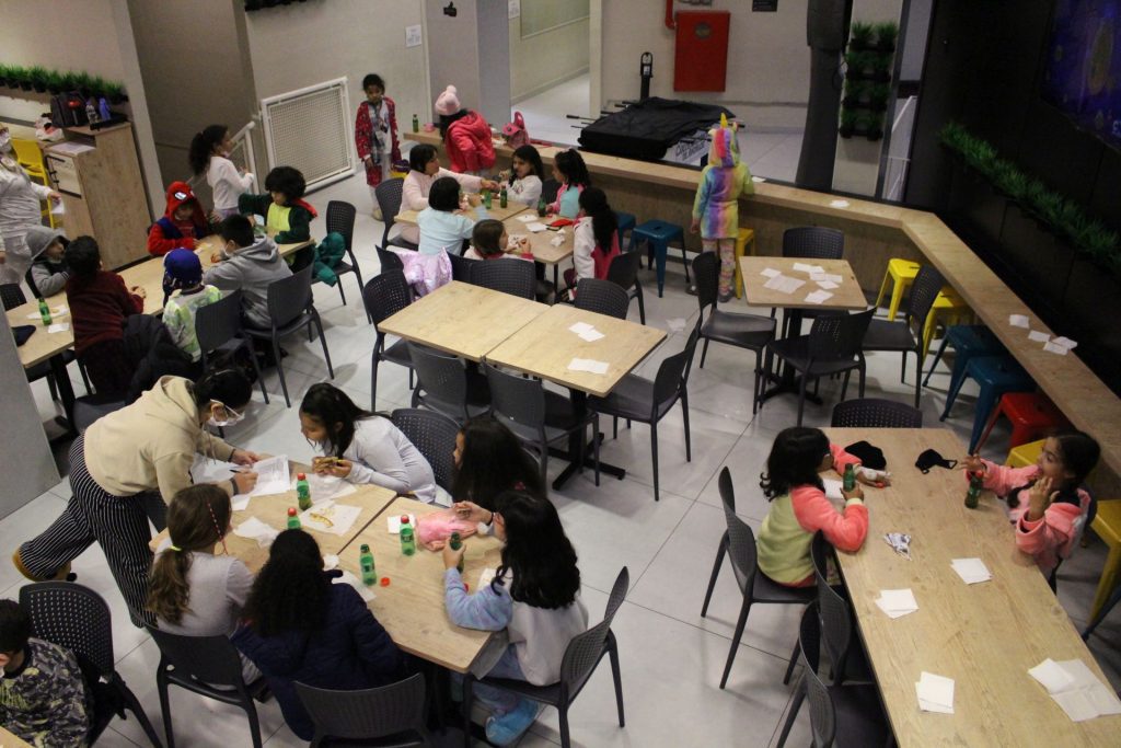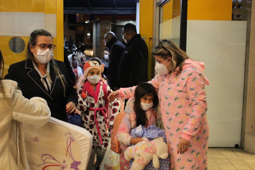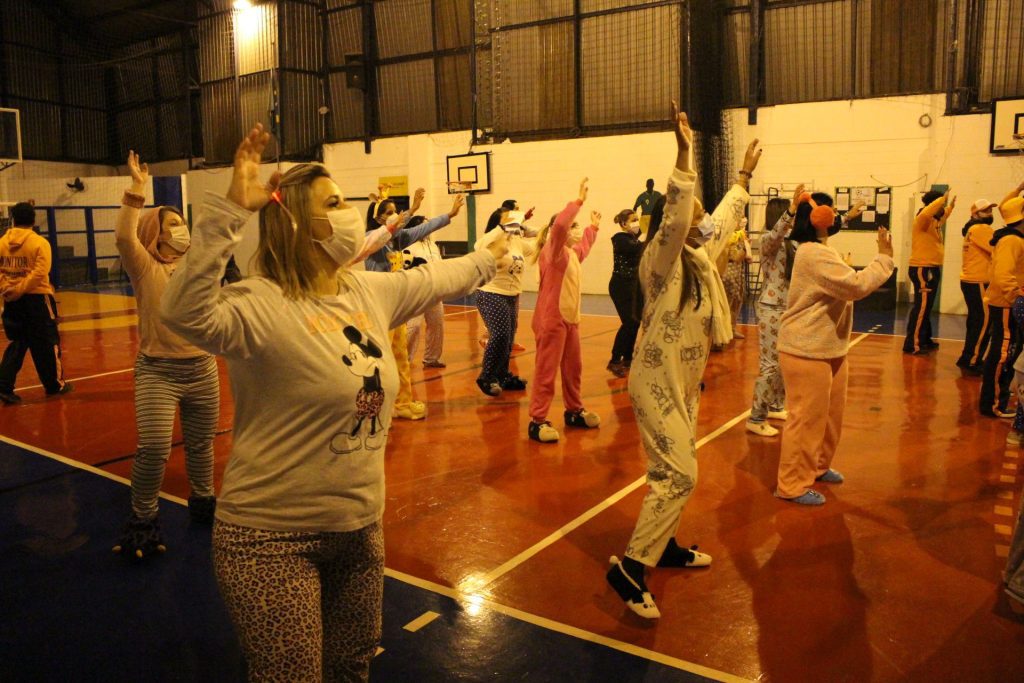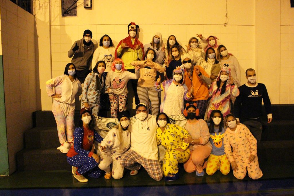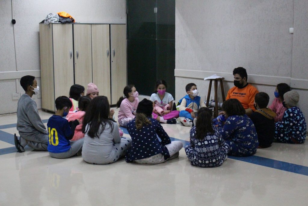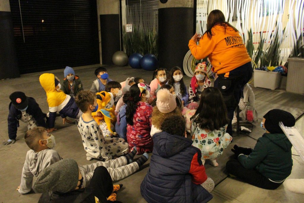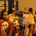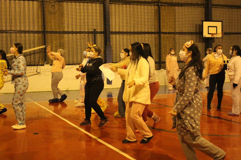Os alunos foram recepcionados e direcionados ao Ginásio Poliesportivo para dar início à festa com uma dinâmica de boas-vindas muito animada. E as crianças, é claro, vieram com seus lindos pijamas para entrar no ritmo do Drummond Night.