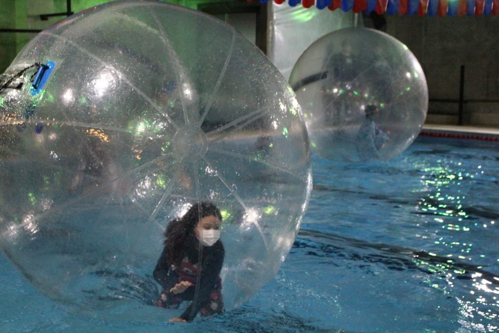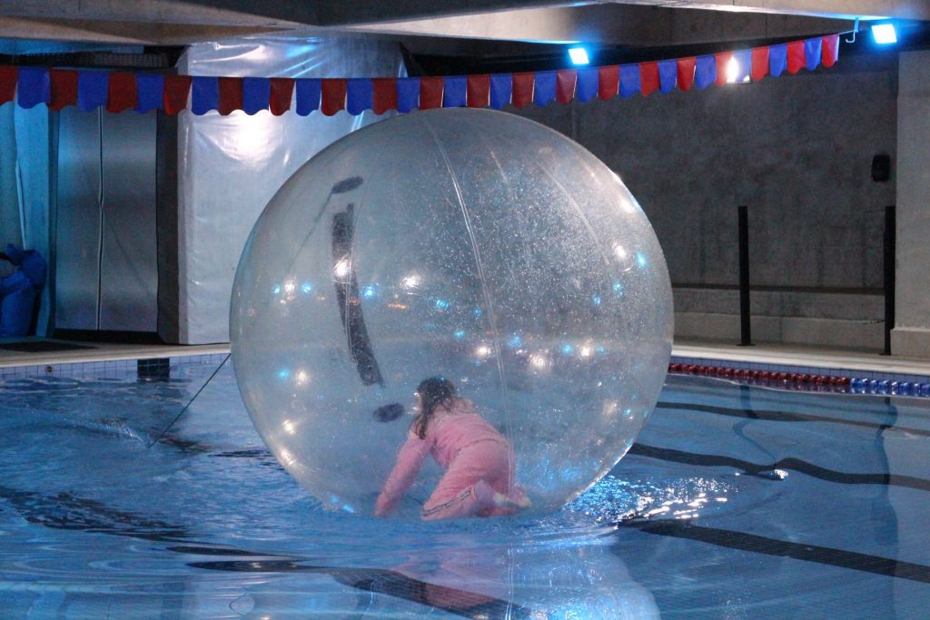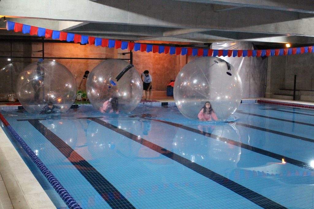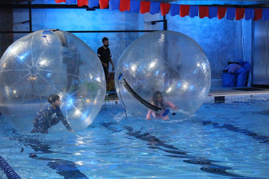 Na Piscina Semiolímpica, teve o incrível Water Ball, uma bolha gigante na qual as crianças entravam e flutuavam sobre a água. Foi pura diversão!