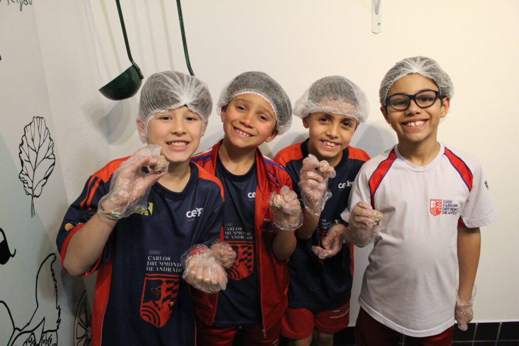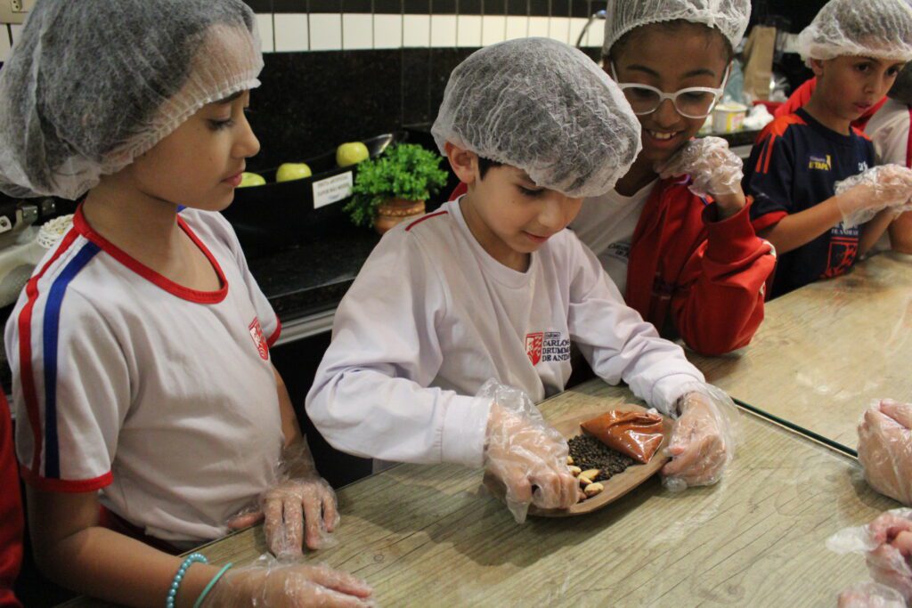 Os alunos do 3º ano do Ensino Fundamental I participaram de uma atividade prática sobre Especiarias do Sertão, realizada na Cozinha Experimental, o objetivo foi reforçar os conhecimentos trabalhados em sala de aula por meio de uma experiência culinária.