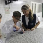 Os alunos dos 6ºs anos A e B relacionaram a teoria com a prática. Observaram, no Laboratório do CCDA, através de experimentos, as propriedades dos estados sólido, líquido e gasoso da matéria e identificaram as características de cada um.