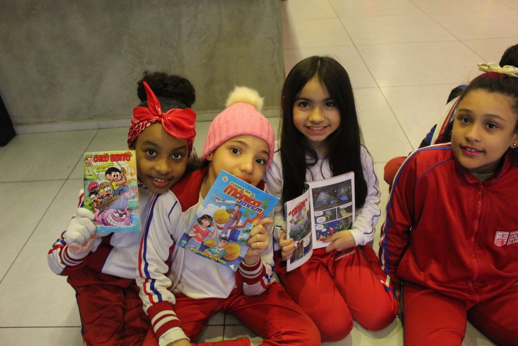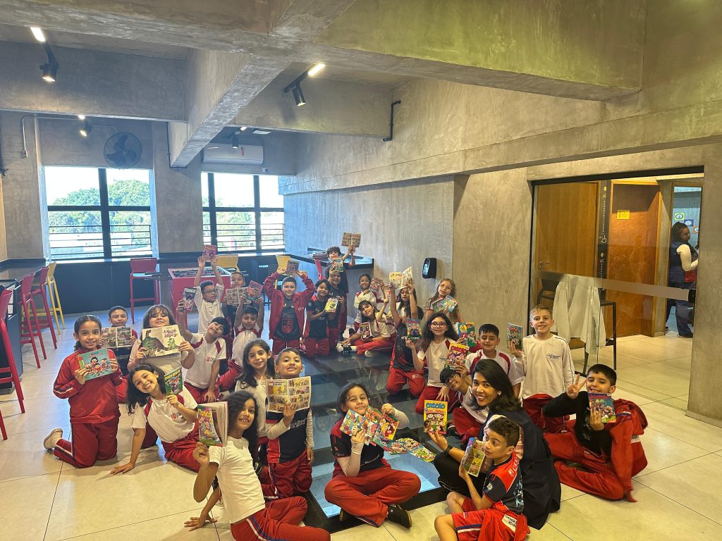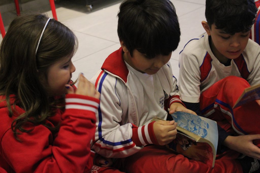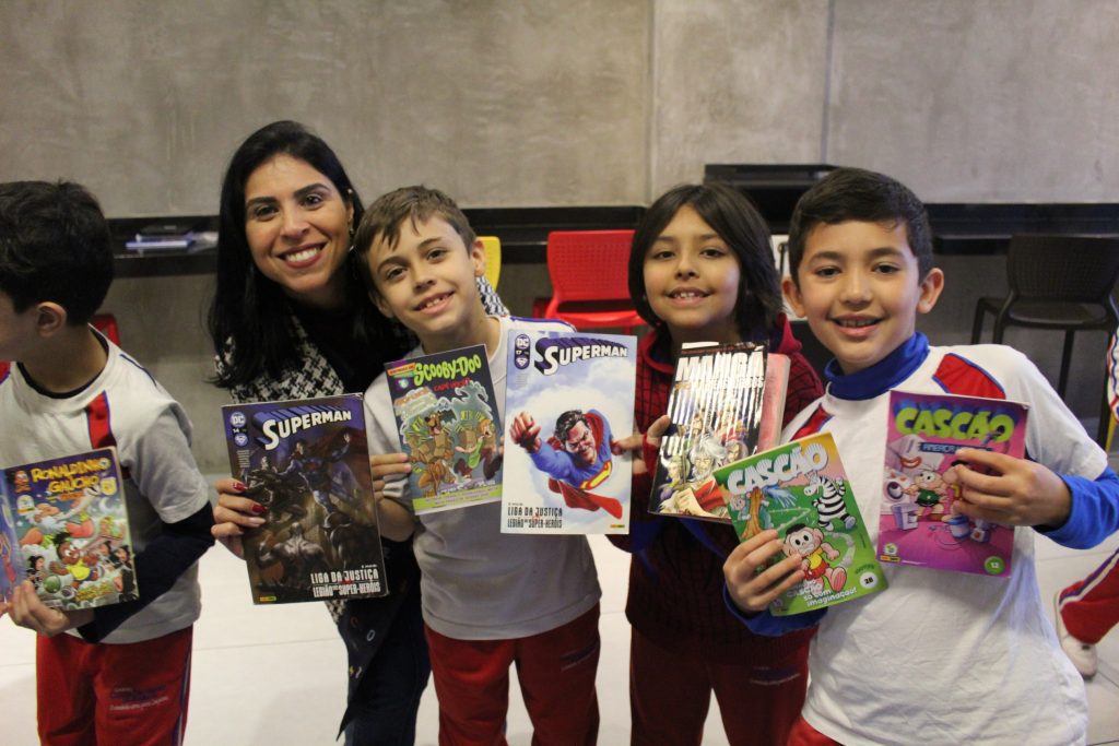 Sabendo disso, os alunos foram desafiados a encontrarem exemplos de Onomatopeias e Interjeições dentro de gibis, pois ambas são comumente encontradas em histórias em quadrinhos. Todos aceitaram o desafio e se saíram muito bem, encontrando diversos exemplos!