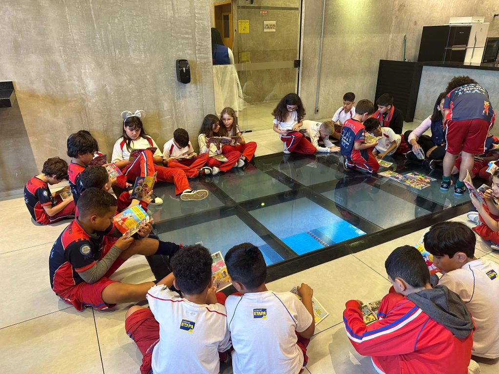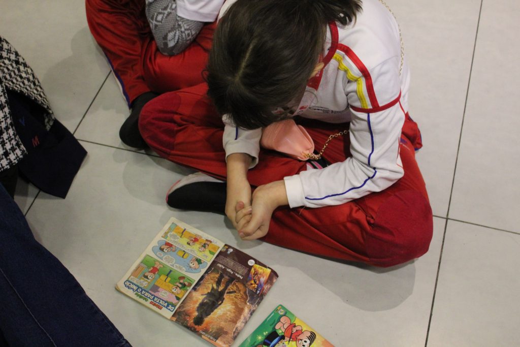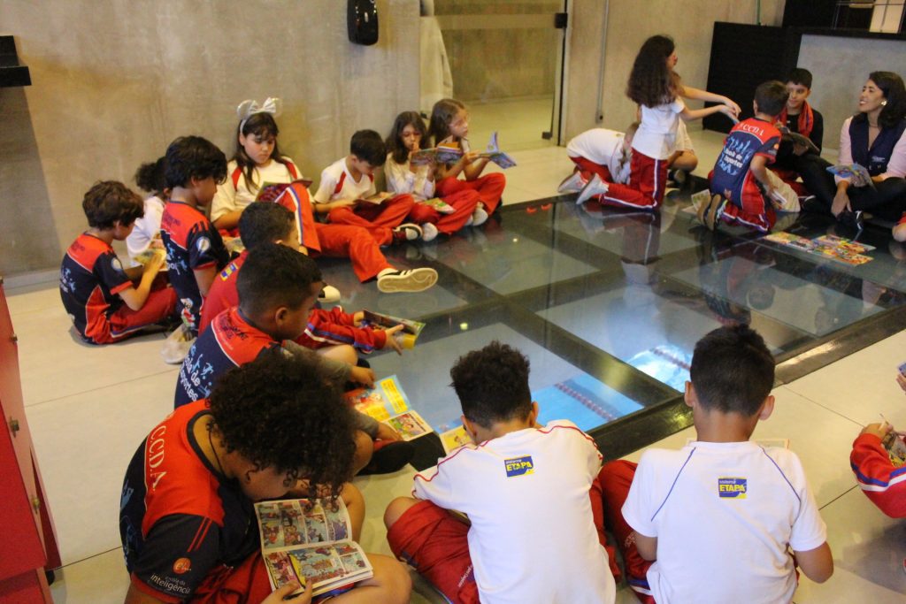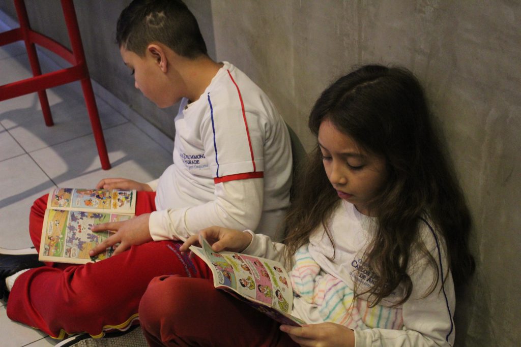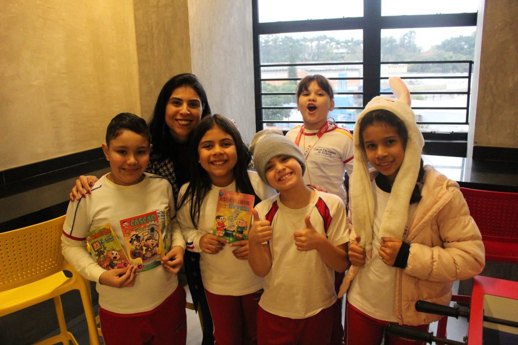 Sabendo disso, os alunos foram desafiados a encontrarem exemplos de Onomatopeias e Interjeições dentro de gibis, pois ambas são comumente encontradas em histórias em quadrinhos. Todos aceitaram o desafio e se saíram muito bem, encontrando diversos exemplos!