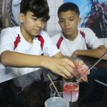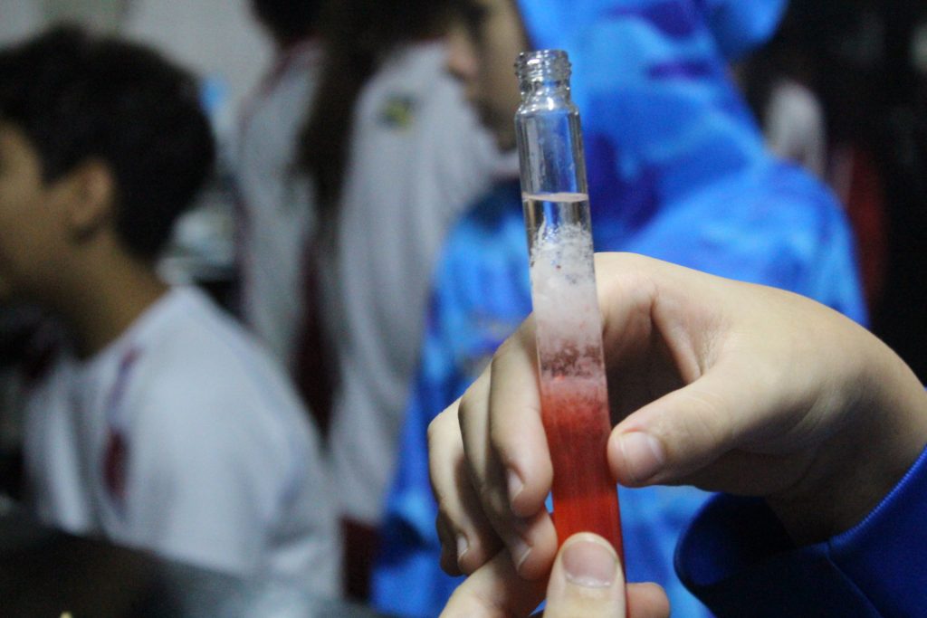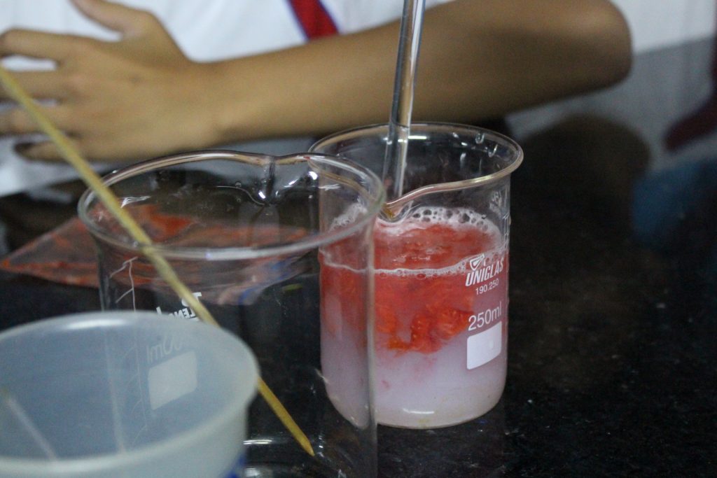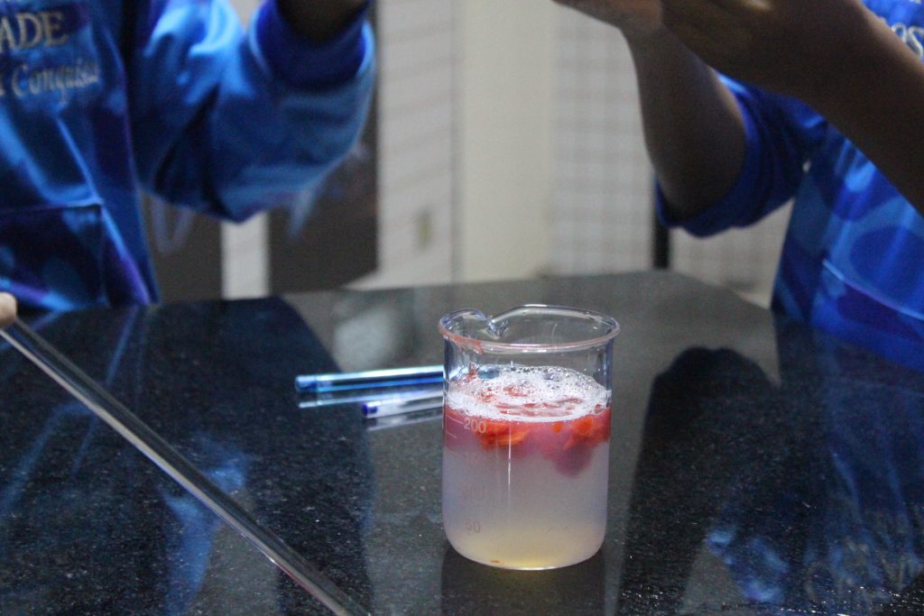 Durante a atividade, eles puderam compreender como o detergente no xampu ajuda a dissolver a membrana celular, como o sal ajuda a manter as proteínas dissolvidas e como o álcool é utilizado para precipitar o DNA, que não é solúvel em álcool.