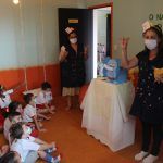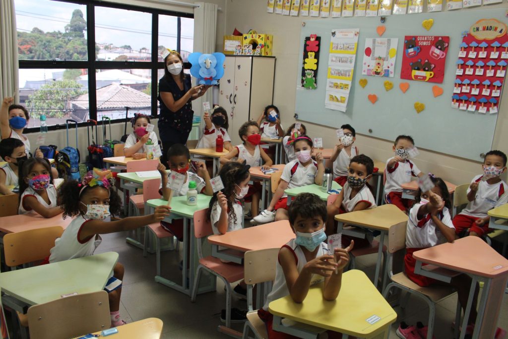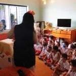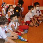 A aula no Jardim II A e B começou com uma linda história: “O Nariz do Elefantinho”.