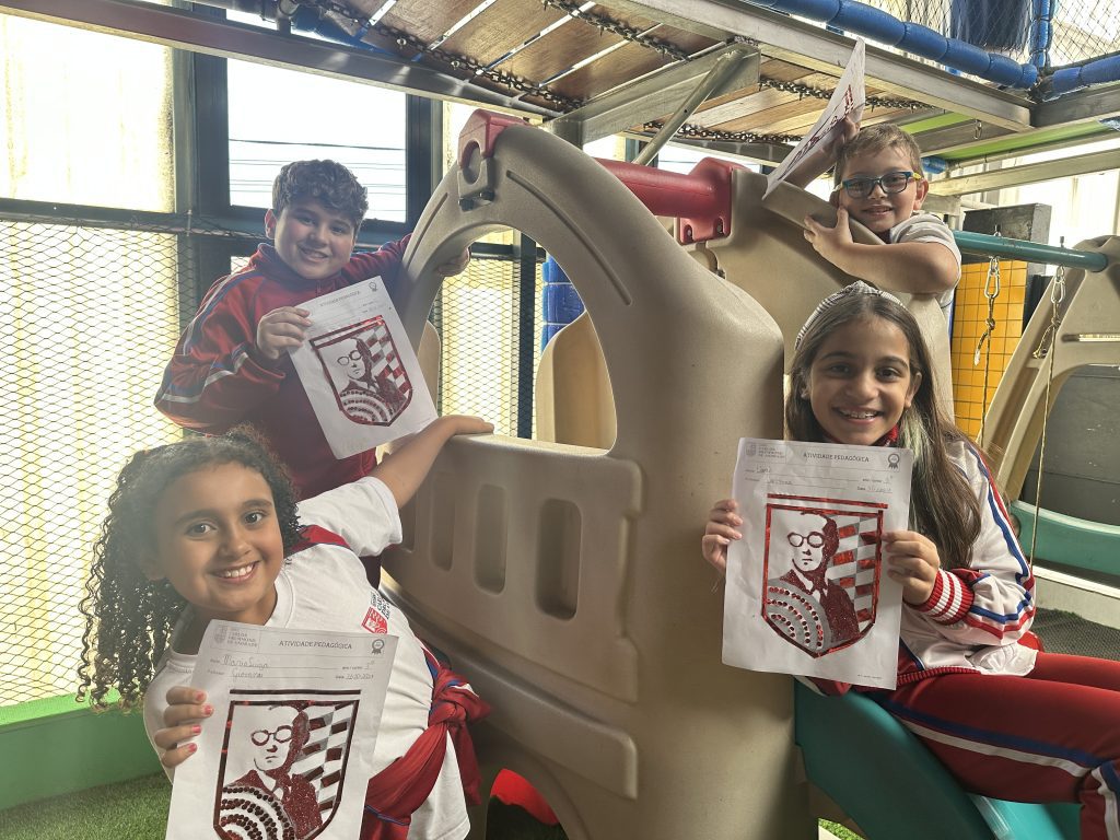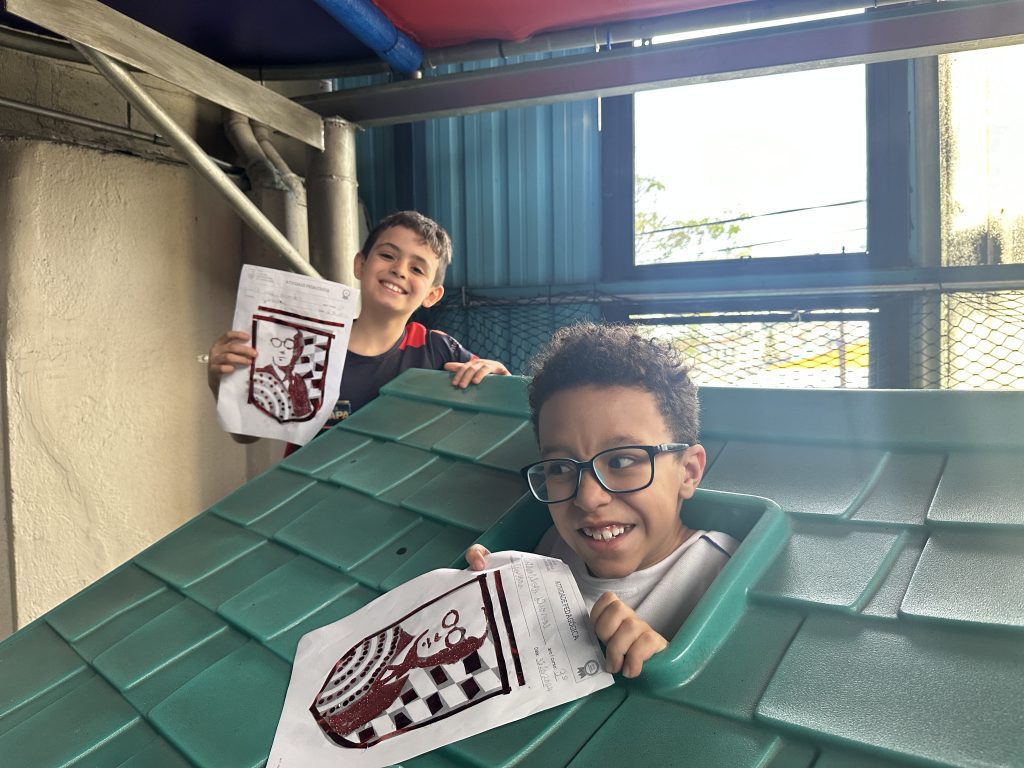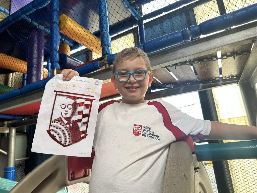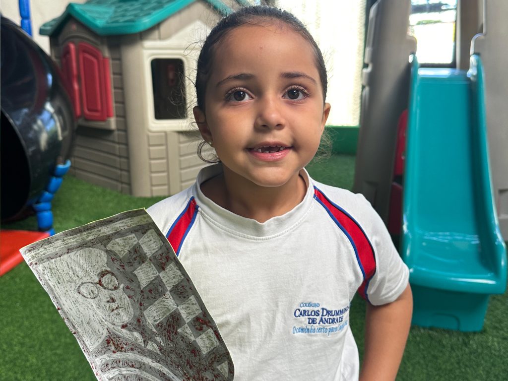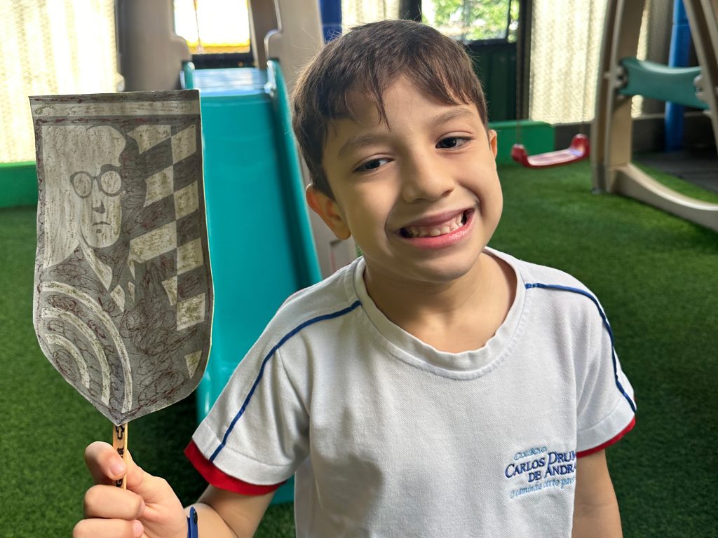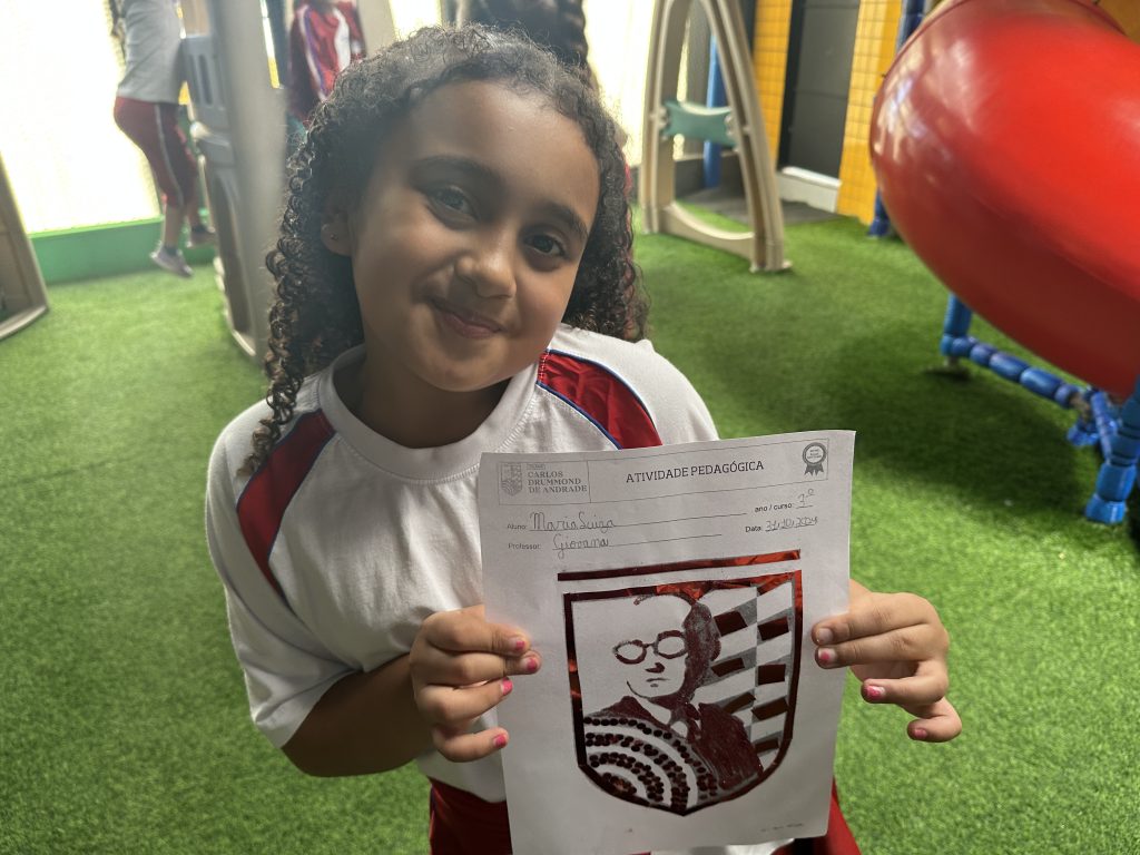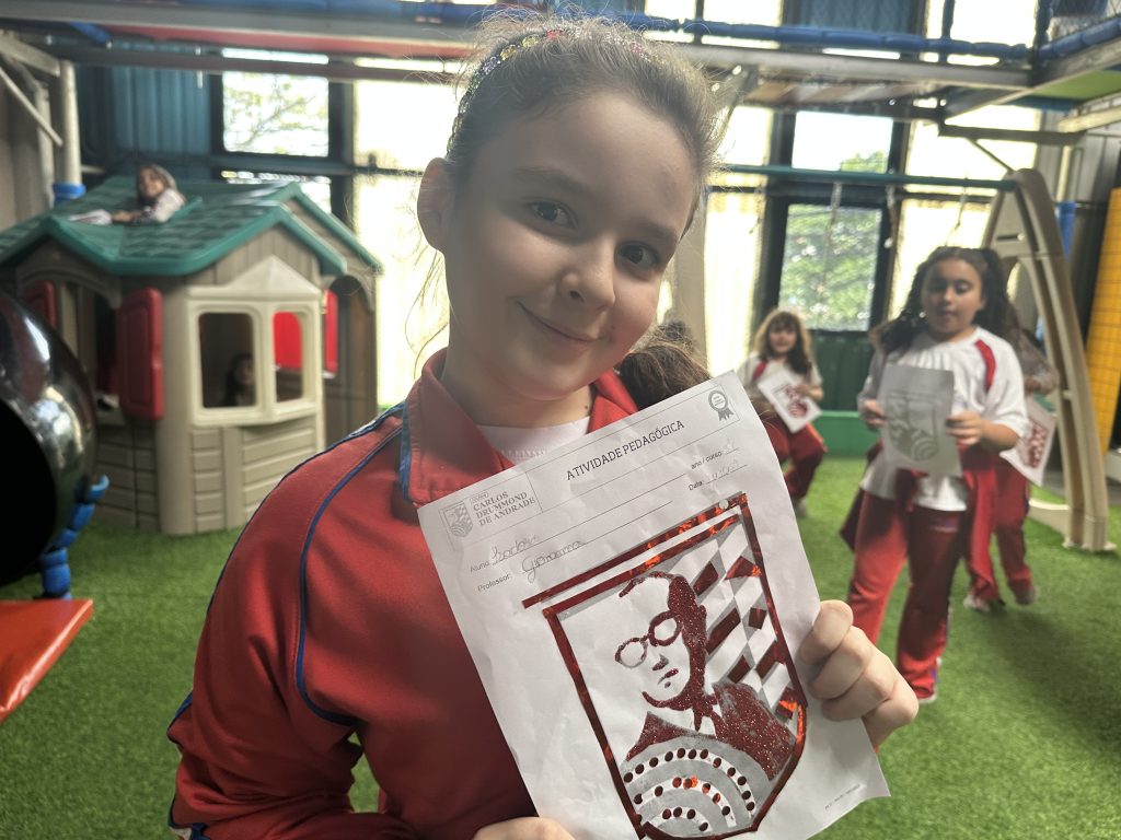 Trabalhando a coordenação motora com colagem, as crianças produziram mosaicos incríveis no formato do brasão do Colégio, que faz referência à imagem do grande poeta Carlos Drummond de Andrade. As atividades ficaram encantadoras! Parabéns turmas pela linda homenagem!