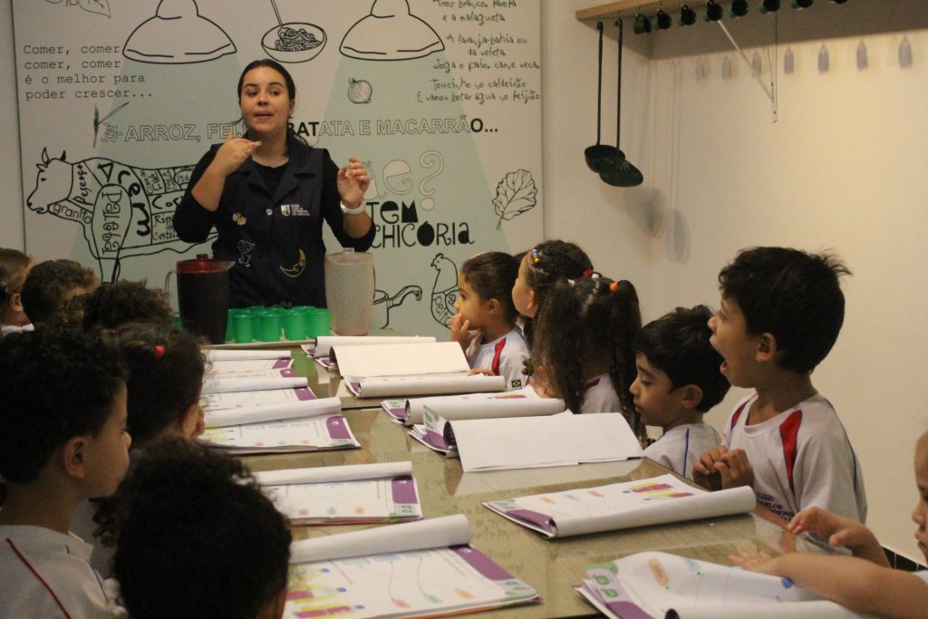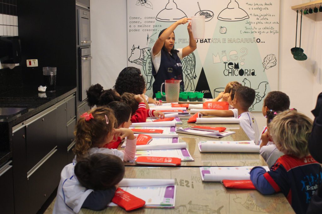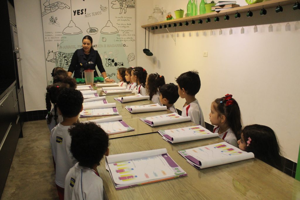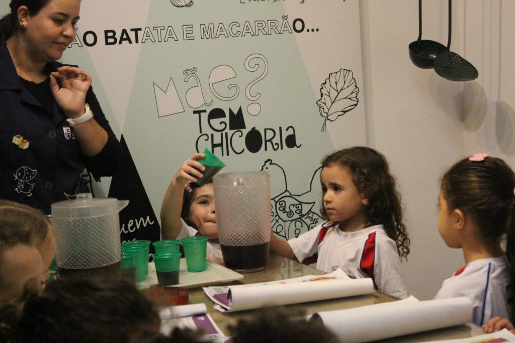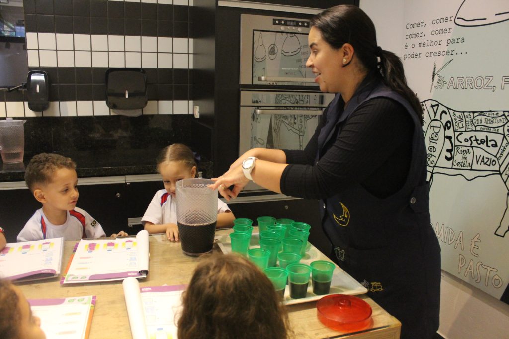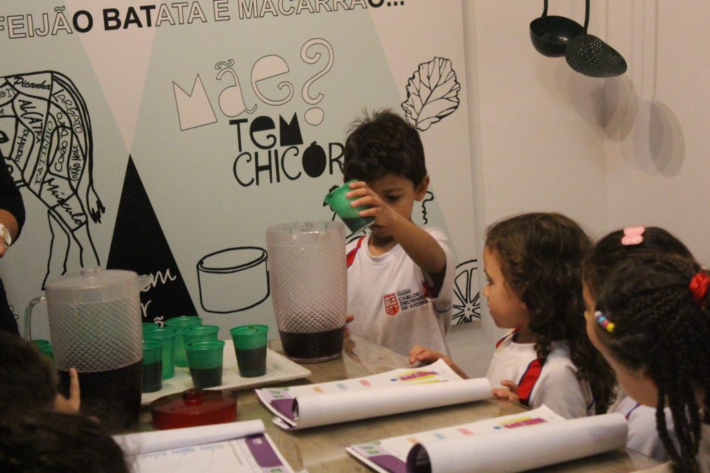 Os alunos do Jardim IA e Jardim IB participaram de uma atividade especial na Cozinha Experimental para reforçar, de forma prática e divertida, os conceitos trabalhados em sala de aula sobre medidas e quantidades. A proposta foi explorar de maneira concreta as noções de “cheio”, “vazio” e “metade”.