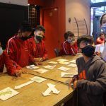Divididos em grupos, cada equipe teve que montar o ciclo de uma cadeia alimentar, que é uma sequência de seres vivos, na qual um serve de alimento para o outro. Assim, os grupos escolheram um produtor e na sequência o consumidor primário, consumidor secundário e consumidor terciário, sabendo que os organismos que agem como decompositores são os fungos e bactérias.