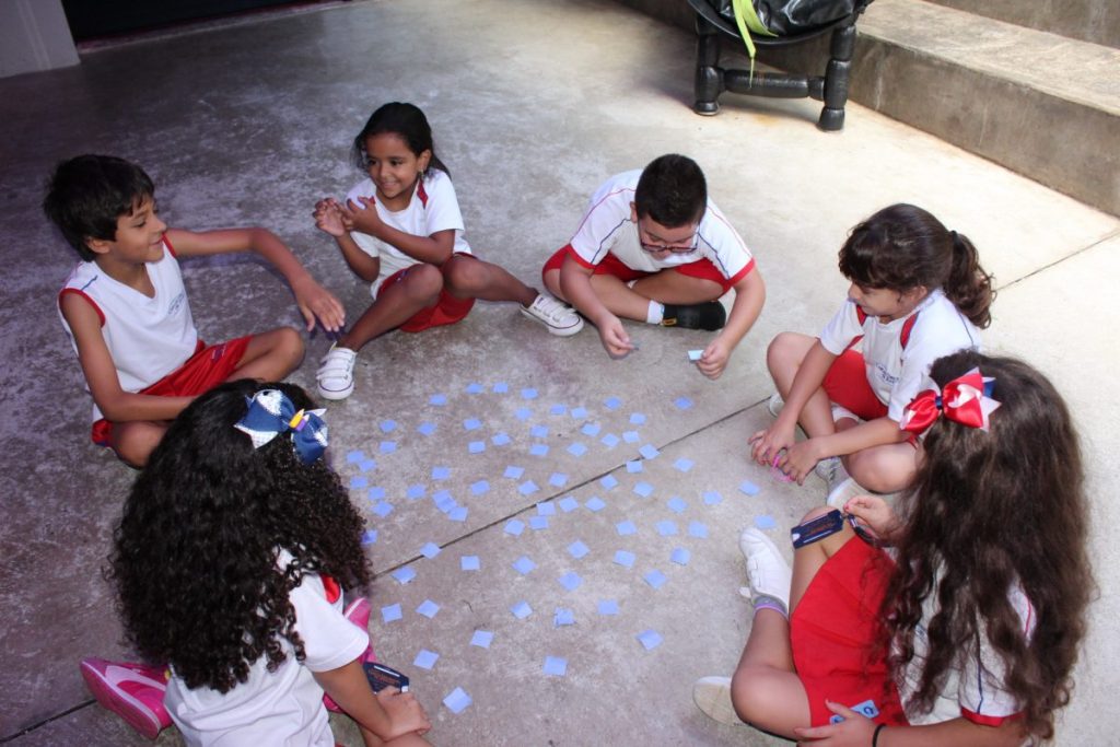 Aqui no nosso colégio é assim: aprendemos, também, brincando; pois esse jogo desperta, em nossos pequenos, o desafio, uma vez que se depende muito da memória e da atenção para ganhar o jogo.