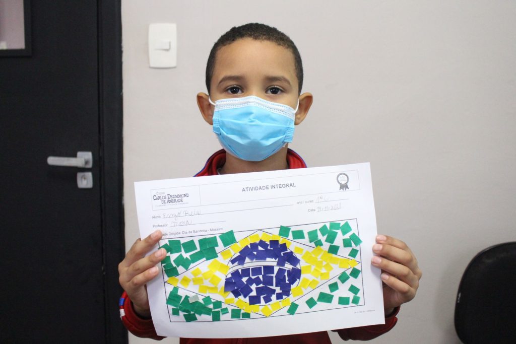 Nossos alunos gostaram muito da técnica de colagem e das curiosidades sobre a bandeira do Brasil.