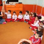 Os alunos do Jardim I brincaram com a divertida história do Caramujo e da Saúva, do grupo Palavra Cantada.
