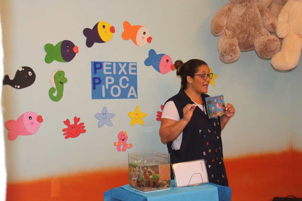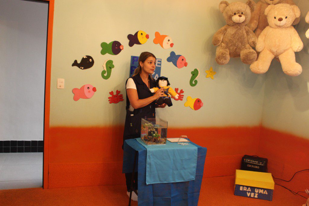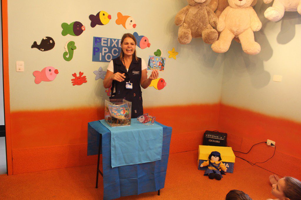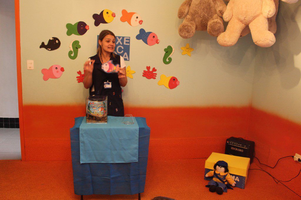 E o mais divertido é que essa história aconteceu dentro de um aquário e as crianças curtiram muito, além de conhecer um pouquinho sobre o fundo do mar.