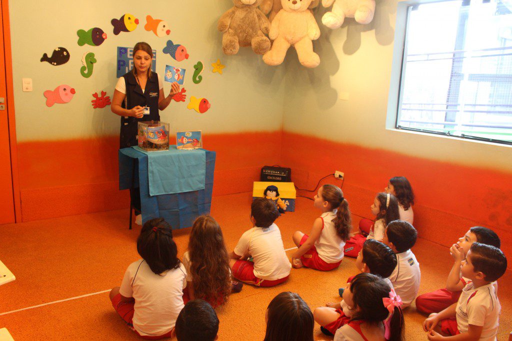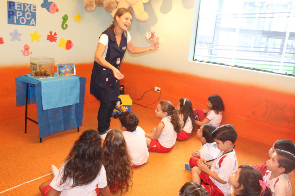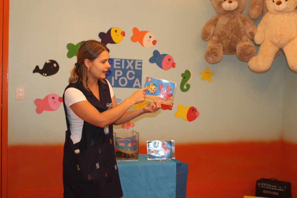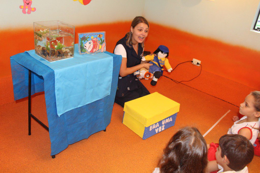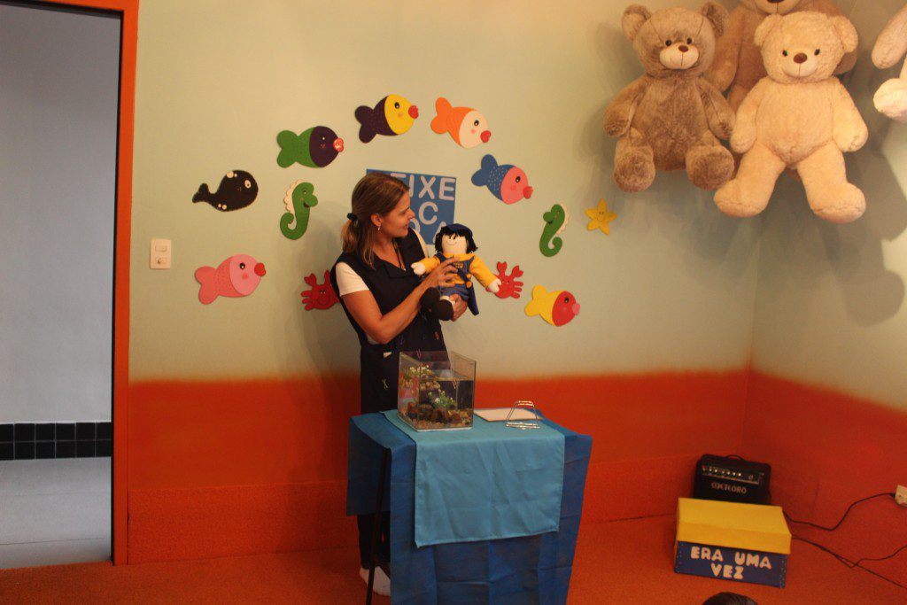 E o mais divertido é que essa história aconteceu dentro de um aquário e as crianças curtiram muito, além de conhecer um pouquinho sobre o fundo do mar.