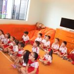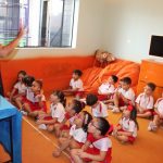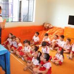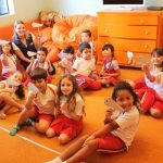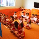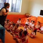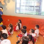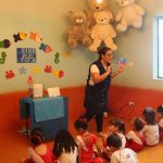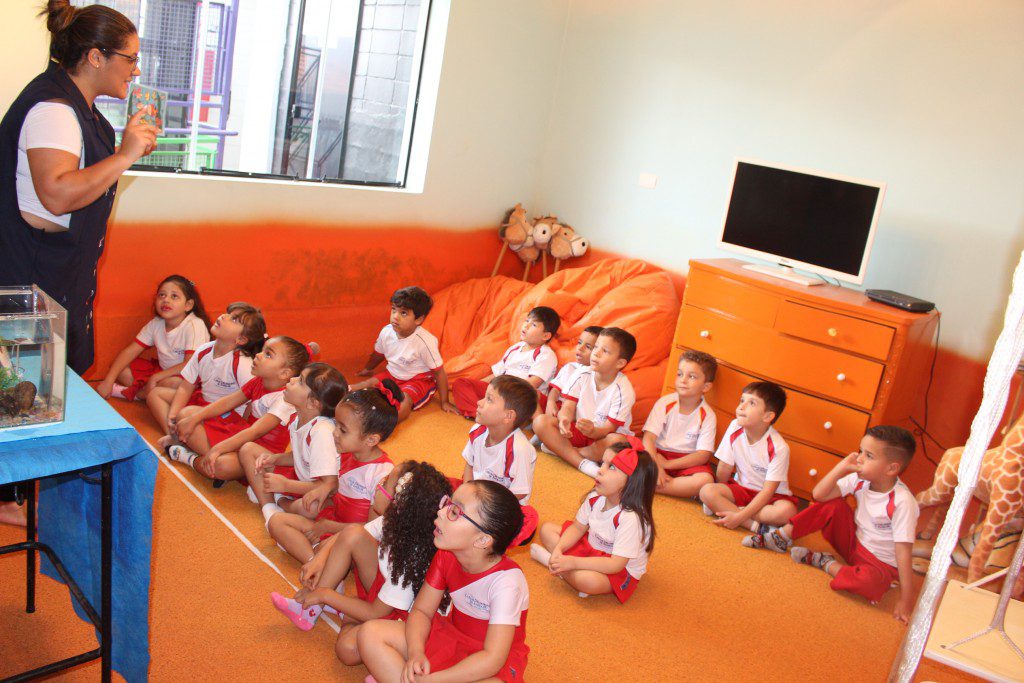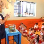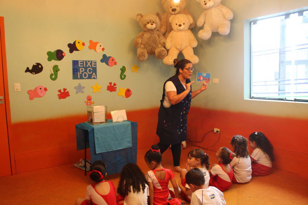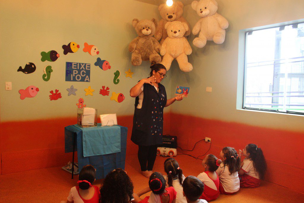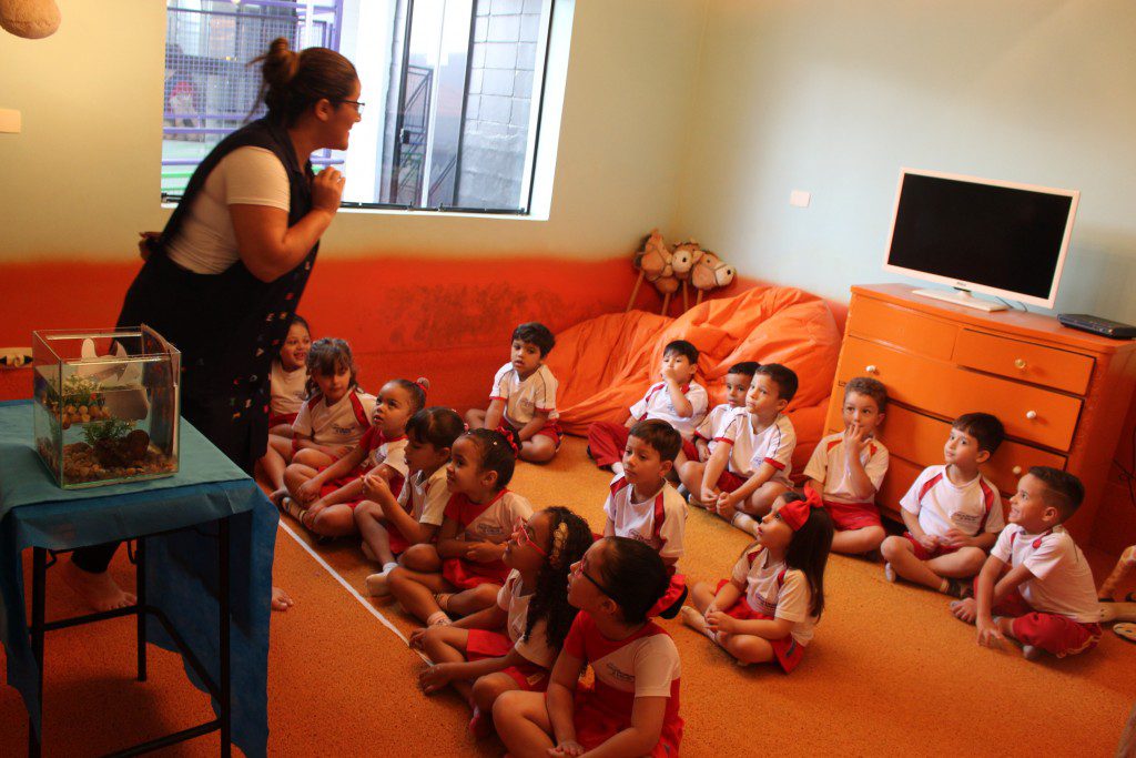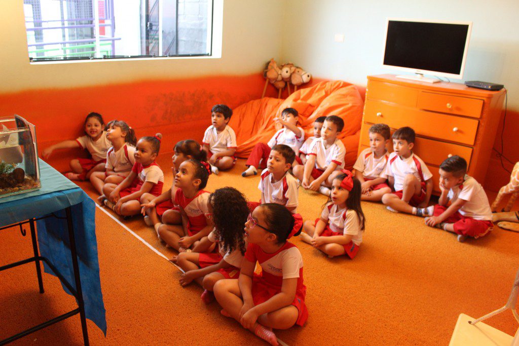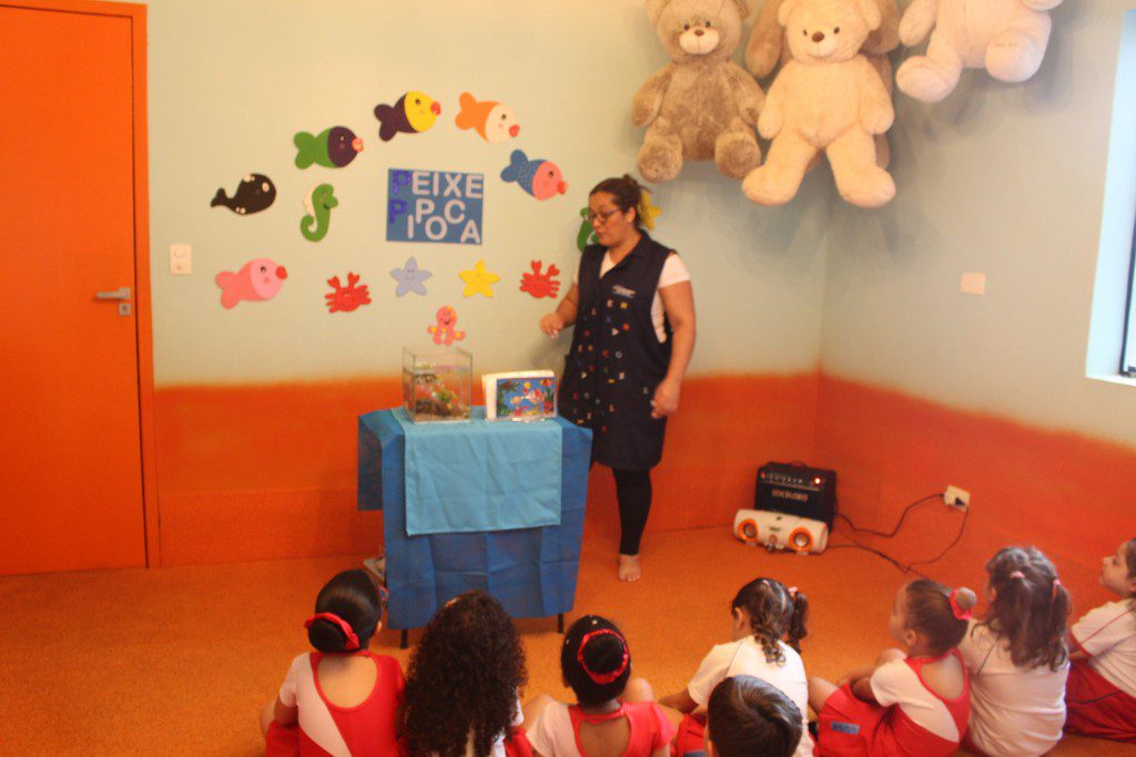 A aula no Jardim II A e B começou com uma história muito divertida, que falava de um peixinho muito encrenqueiro, que gostava de uma fofoca.