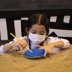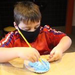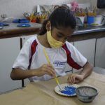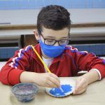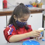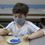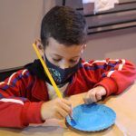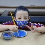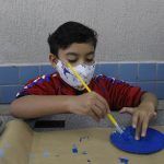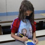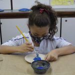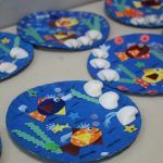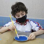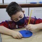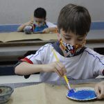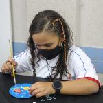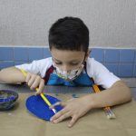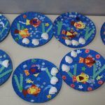 Após, realizamos uma pintura representando o fundo do mar usando tinta guache, colagens e lantejoulas. Os alunos decoraram o fundo do mar usando toda a sua criatividade e imaginação!