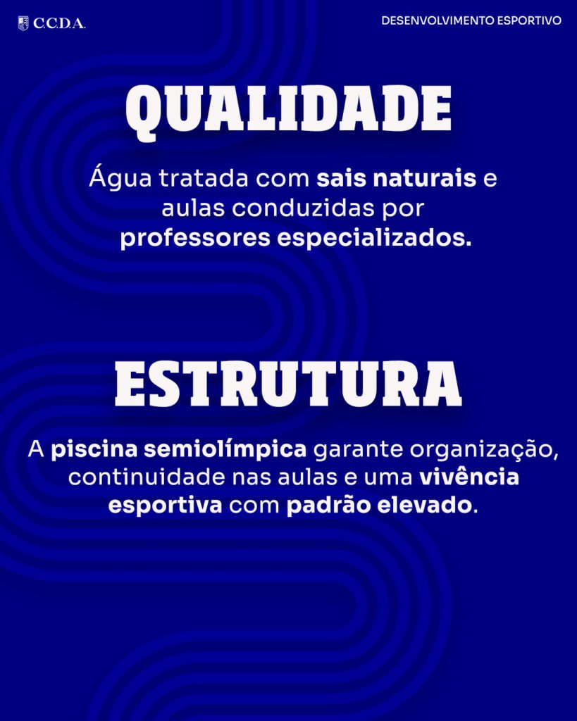 No CCDA, a natação faz parte da formação educacional dos alunos, por meio de uma estrutura adequada, professores preparados e um ambiente seguro e monitorado.