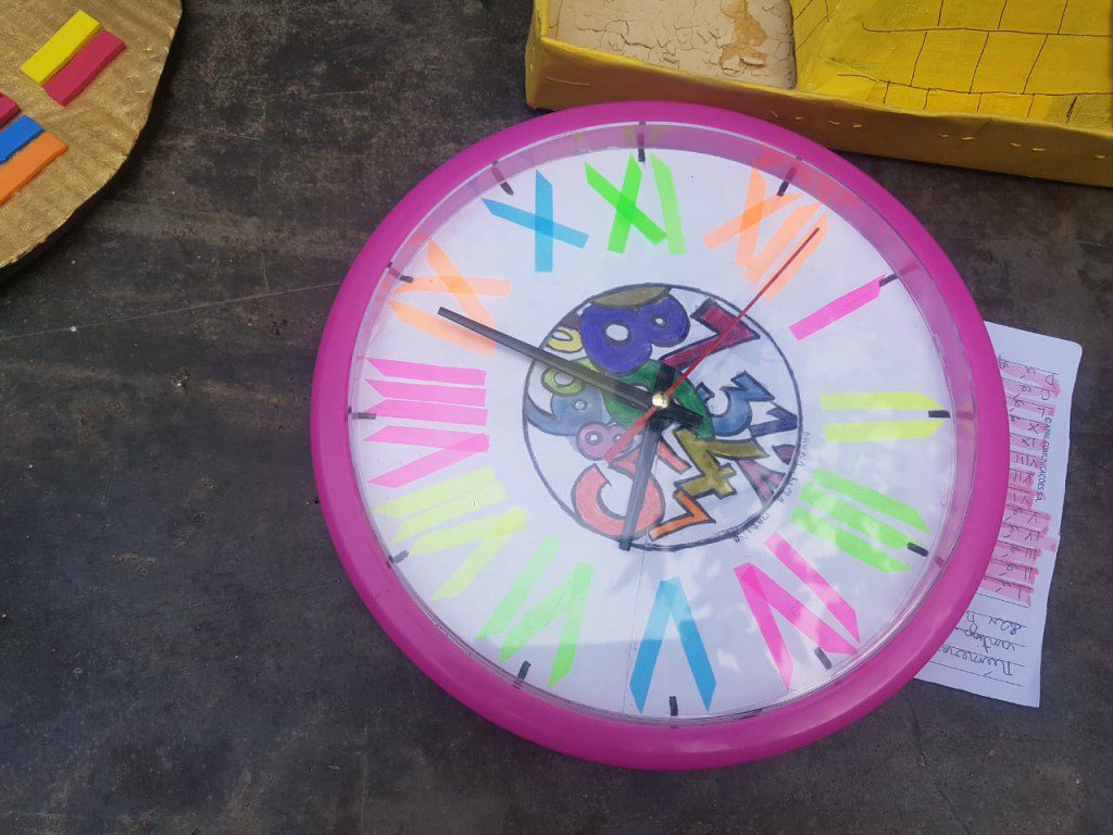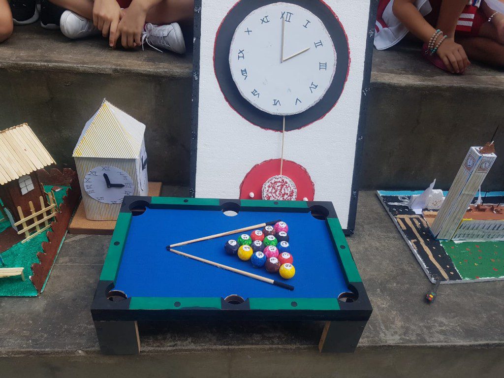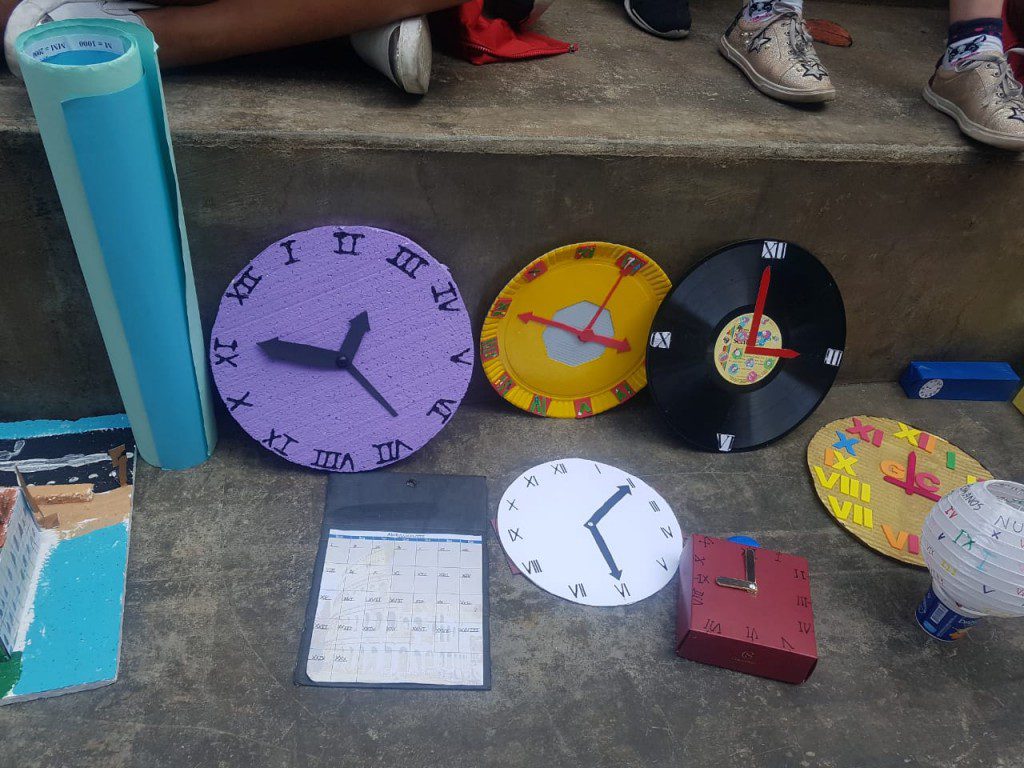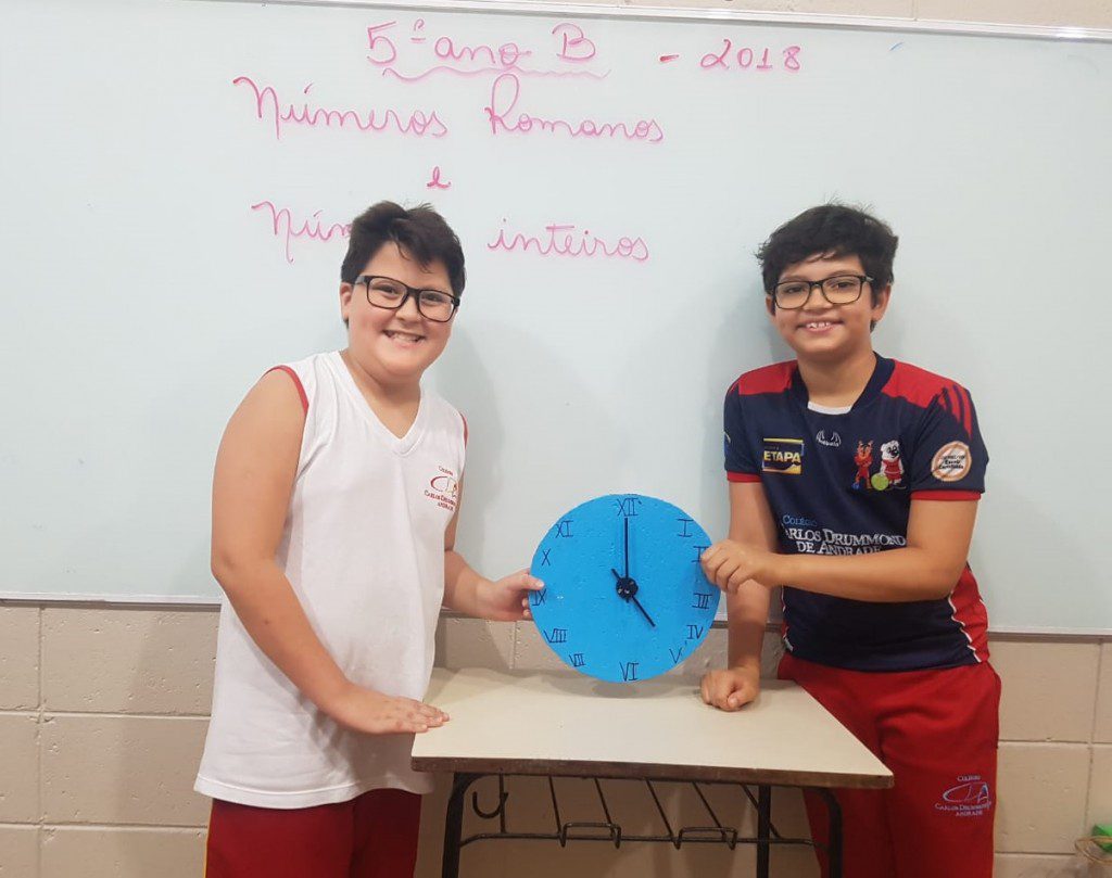 Após compreenderem como são representados e como se formam, os alunos foram organizados em grupos para iniciar a confecção de um projeto e construíram peças com os números romanos (relógios, elevadores, maquetes).