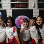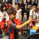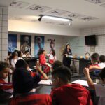 Durante a aula, os alunos tiveram a oportunidade de experimentar diferentes melodias e a cada nota, a turma percebia a diferença dos sons, transformando o momento em aprendizado e diversão.