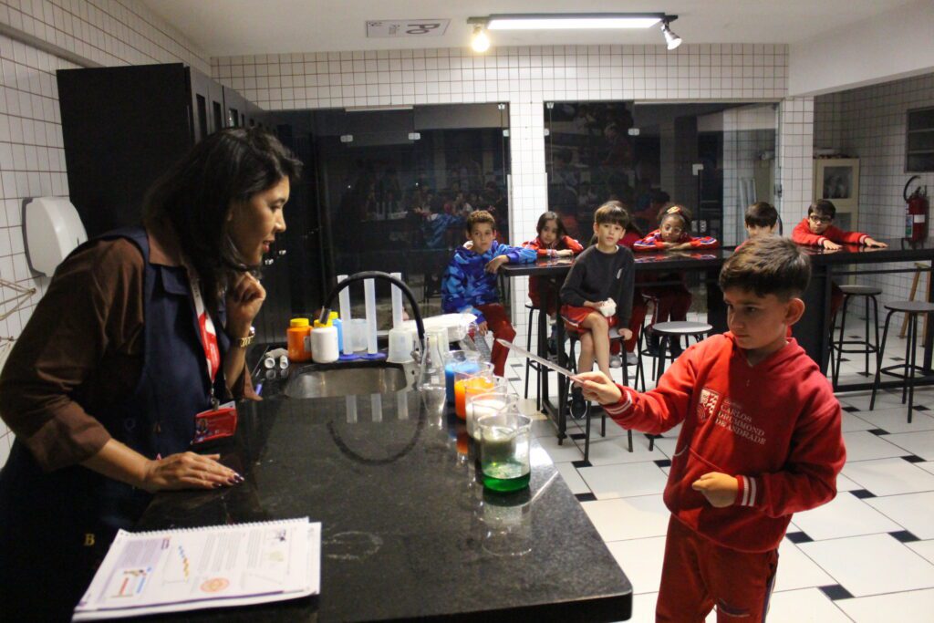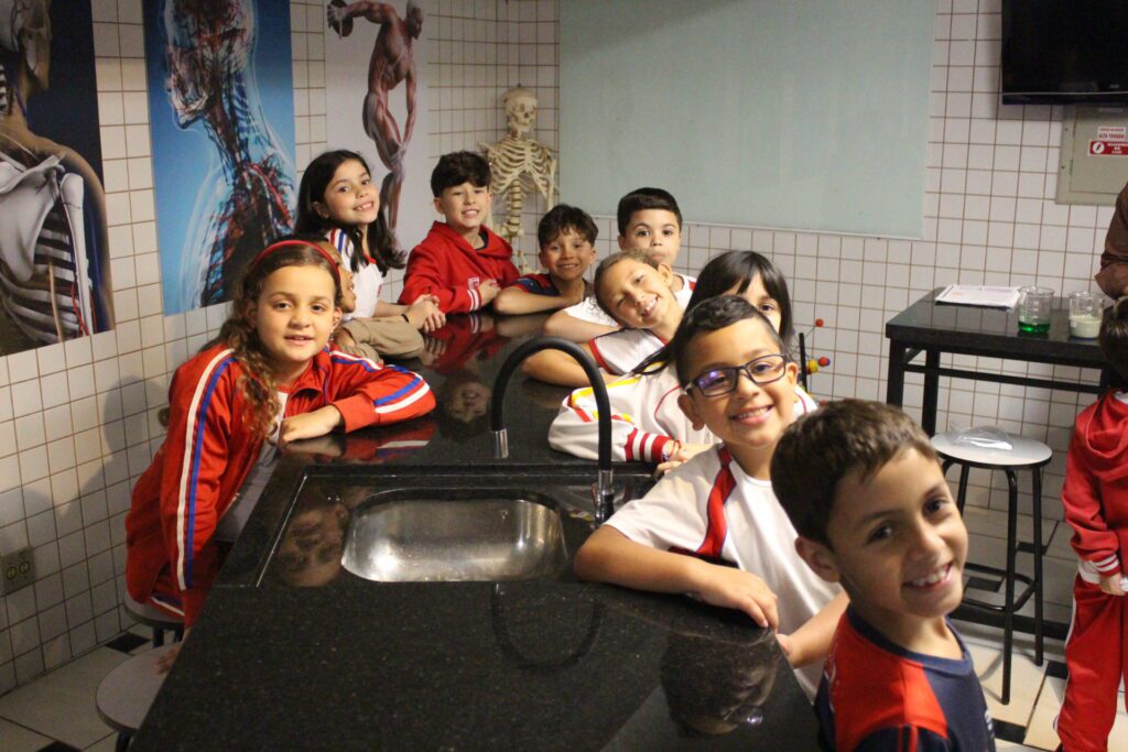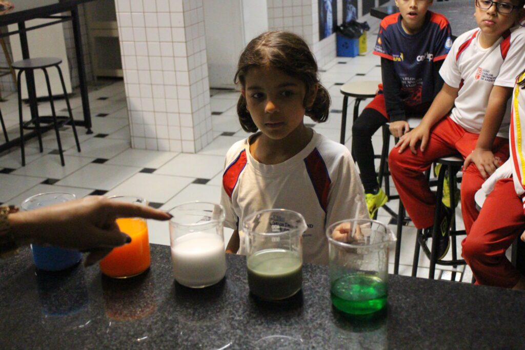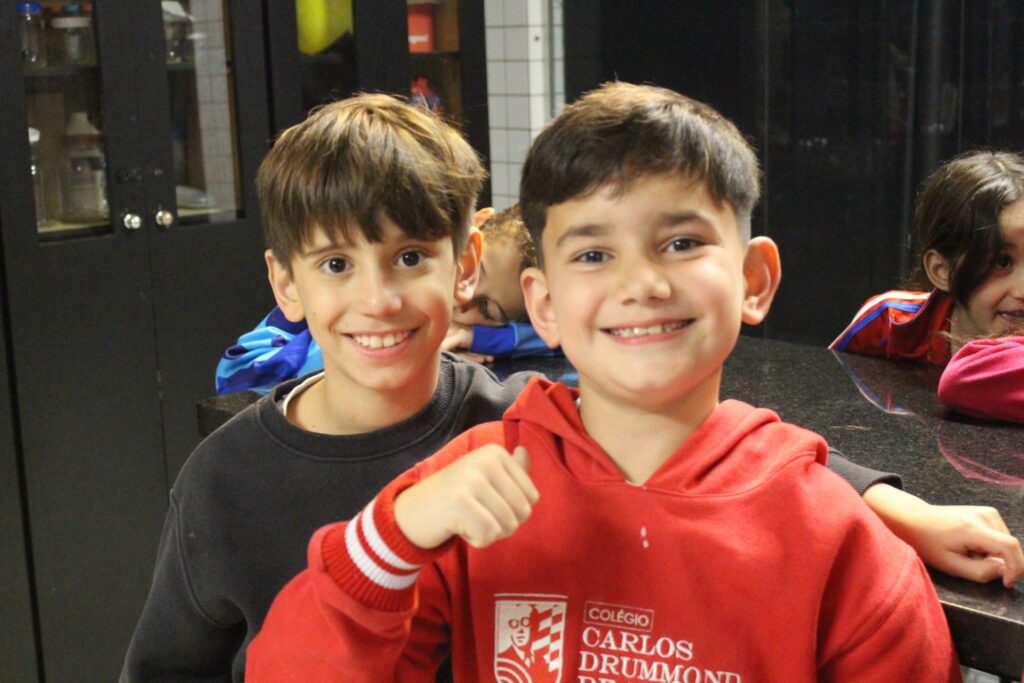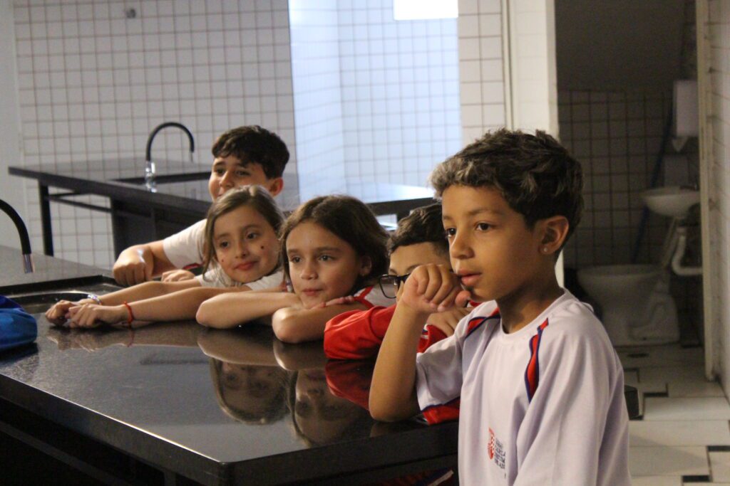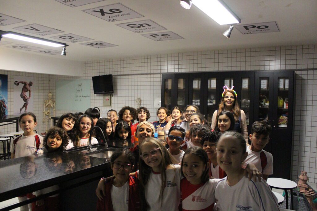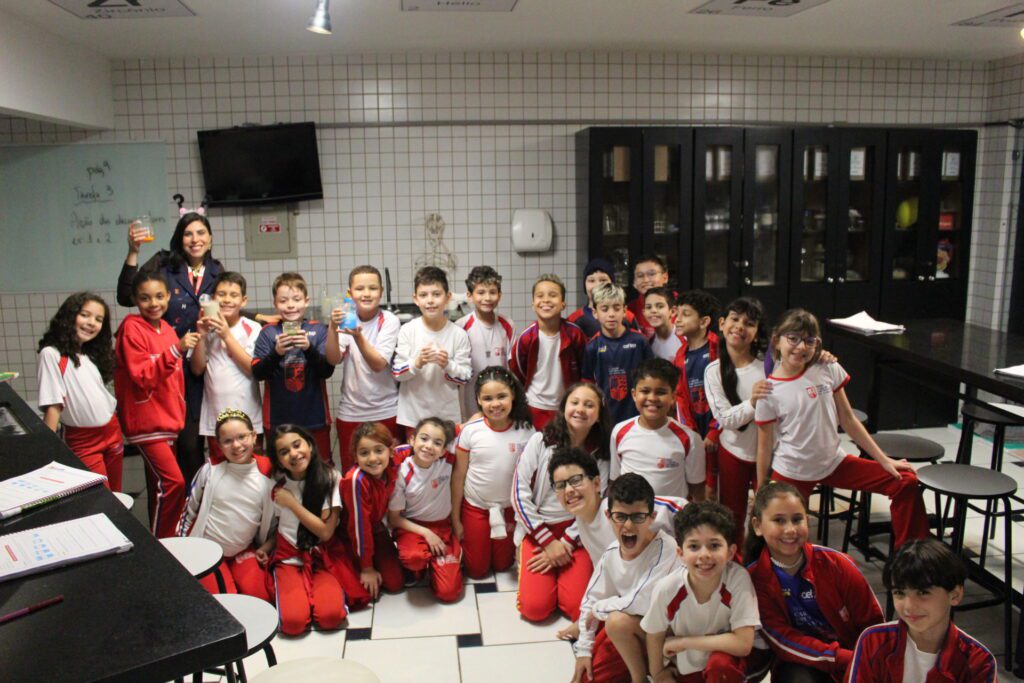Os alunos do 3º ano do Ensino Fundamental participaram de uma atividade prática muito especial no nosso Laboratório, explorando as propriedades do som. A atividade aconteceu com o uso de recipientes com diferentes quantidades de água, que ao serem tocados produziam sons variados. Desta forma, os alunos puderam perceber que o copo mais cheio gerava um som mais grave, enquanto o copo mais vazio produzia um som mais agudo.