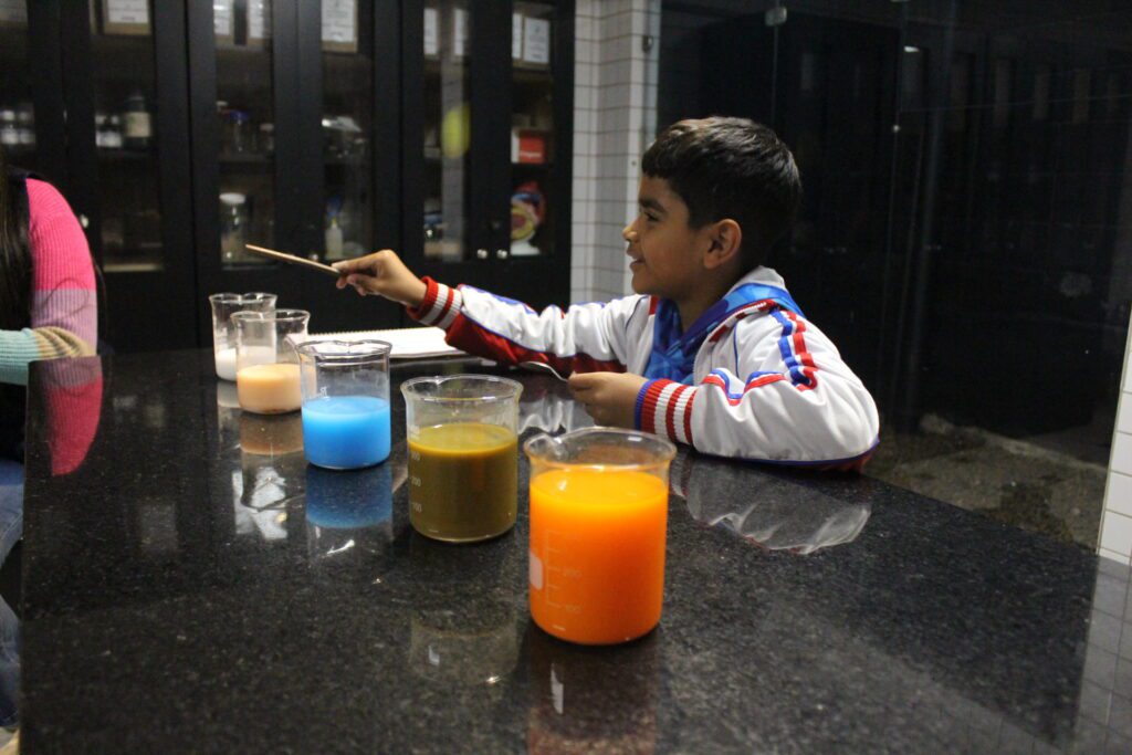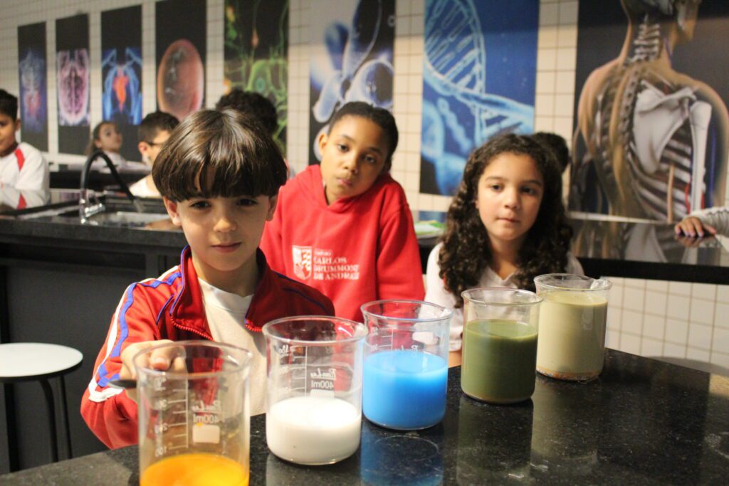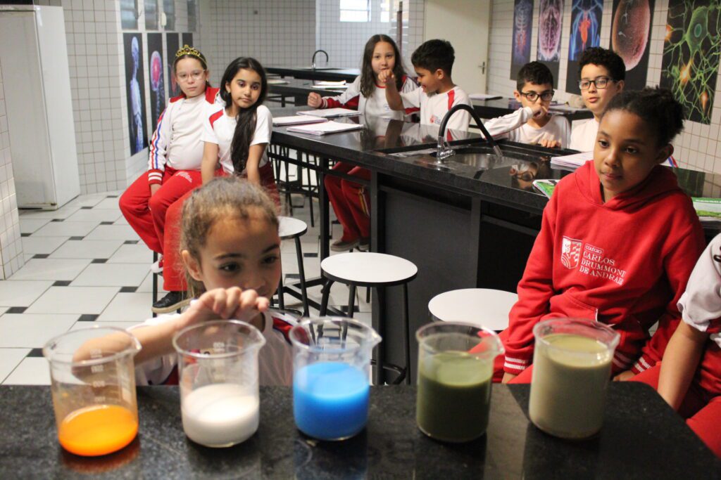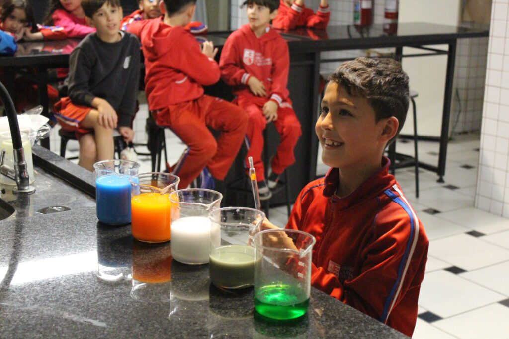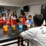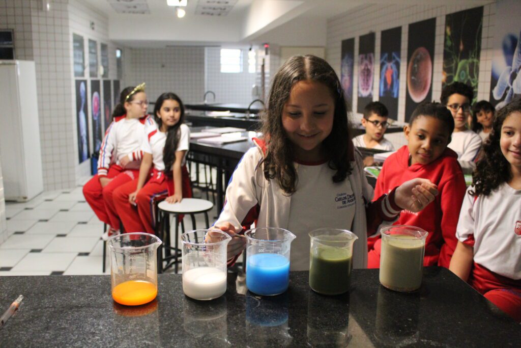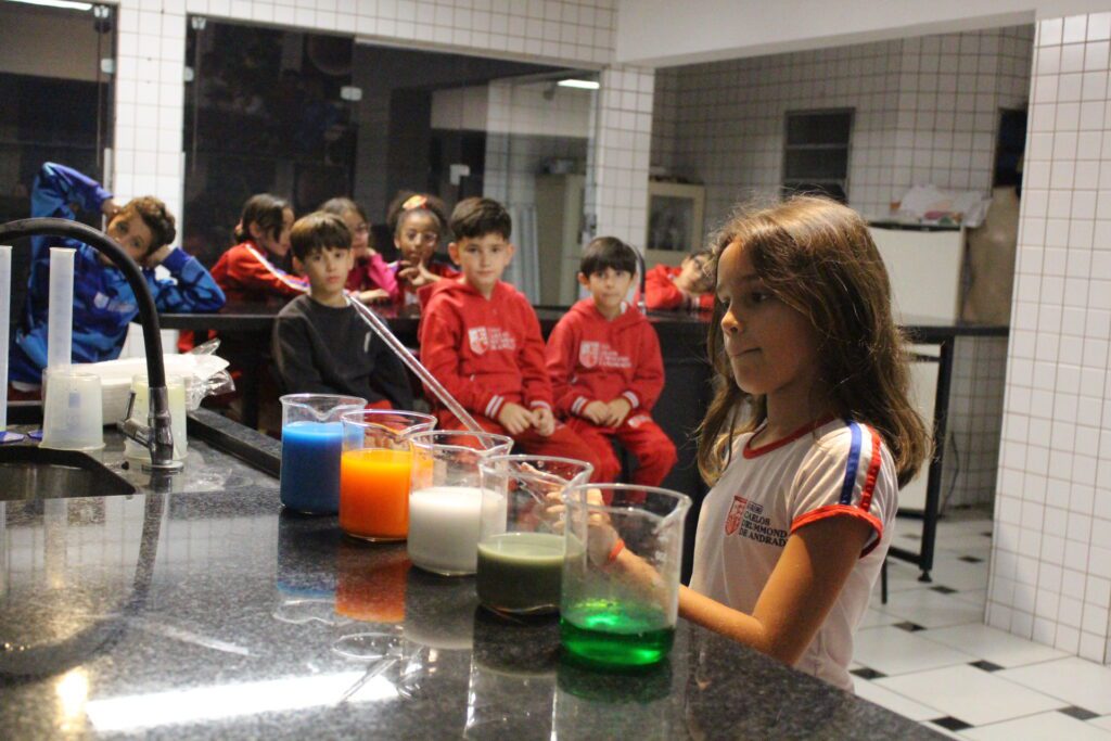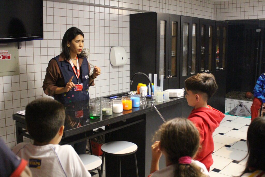 Os alunos do 3º ano do Ensino Fundamental participaram de uma atividade prática muito especial no nosso Laboratório, explorando as propriedades do som. A atividade aconteceu com o uso de recipientes com diferentes quantidades de água, que ao serem tocados produziam sons variados. Desta forma, os alunos puderam perceber que o copo mais cheio gerava um som mais grave, enquanto o copo mais vazio produzia um som mais agudo.