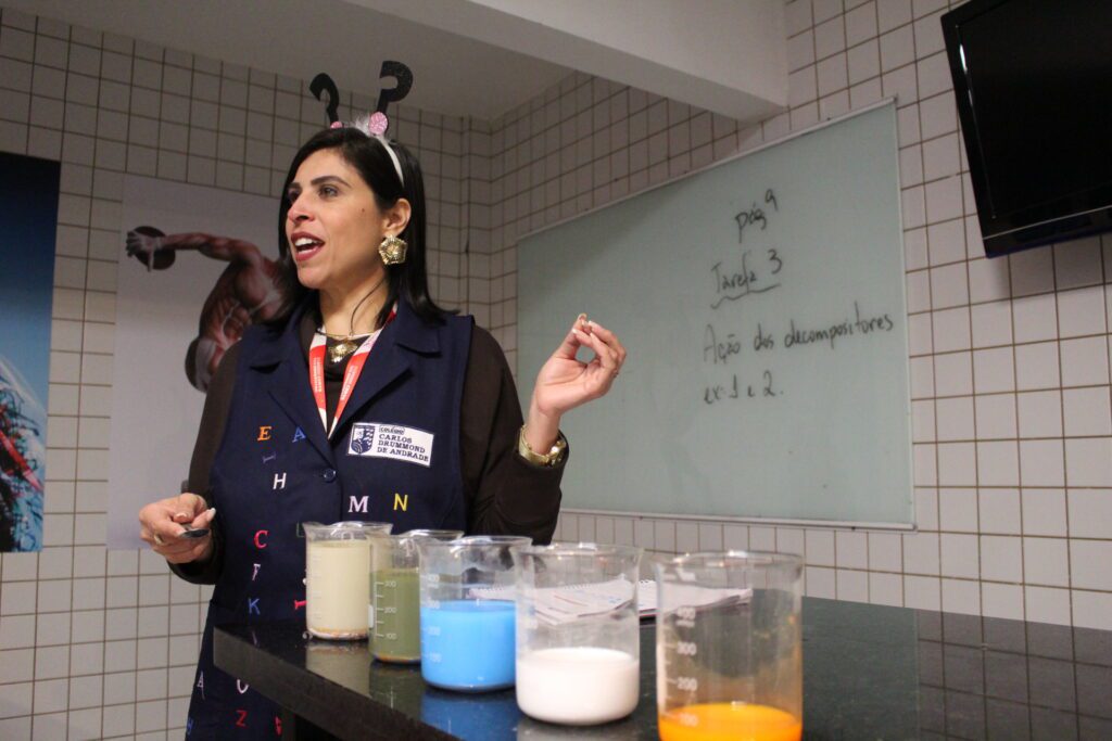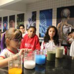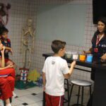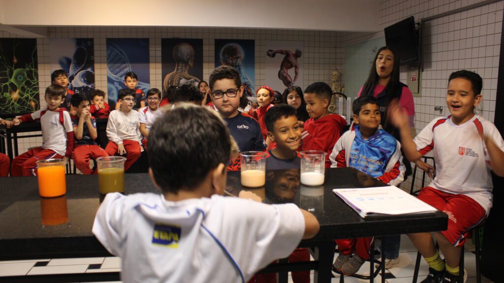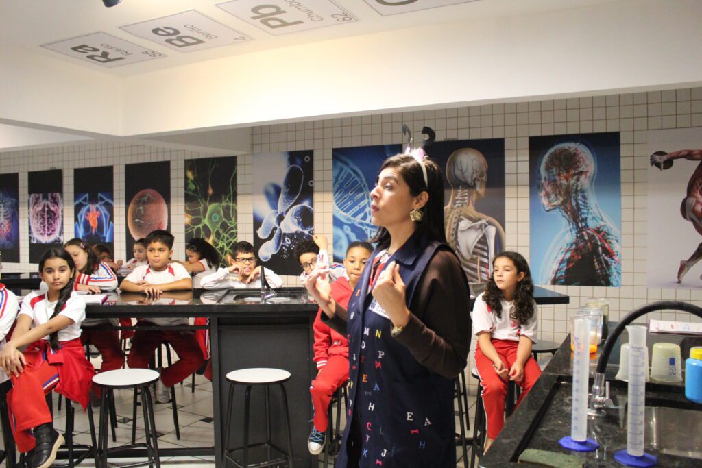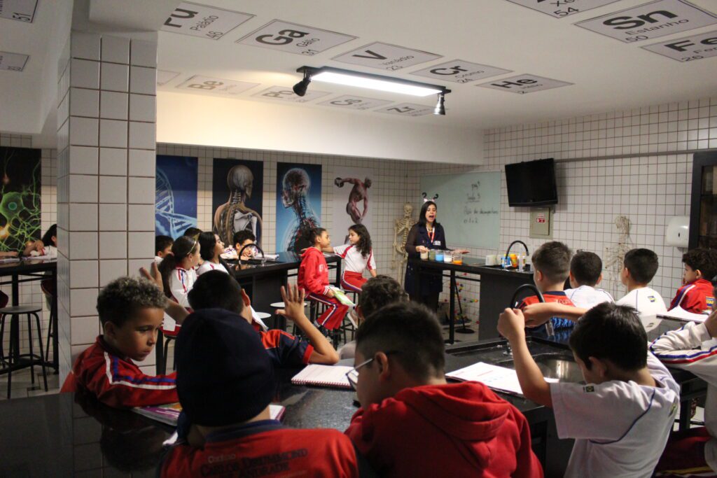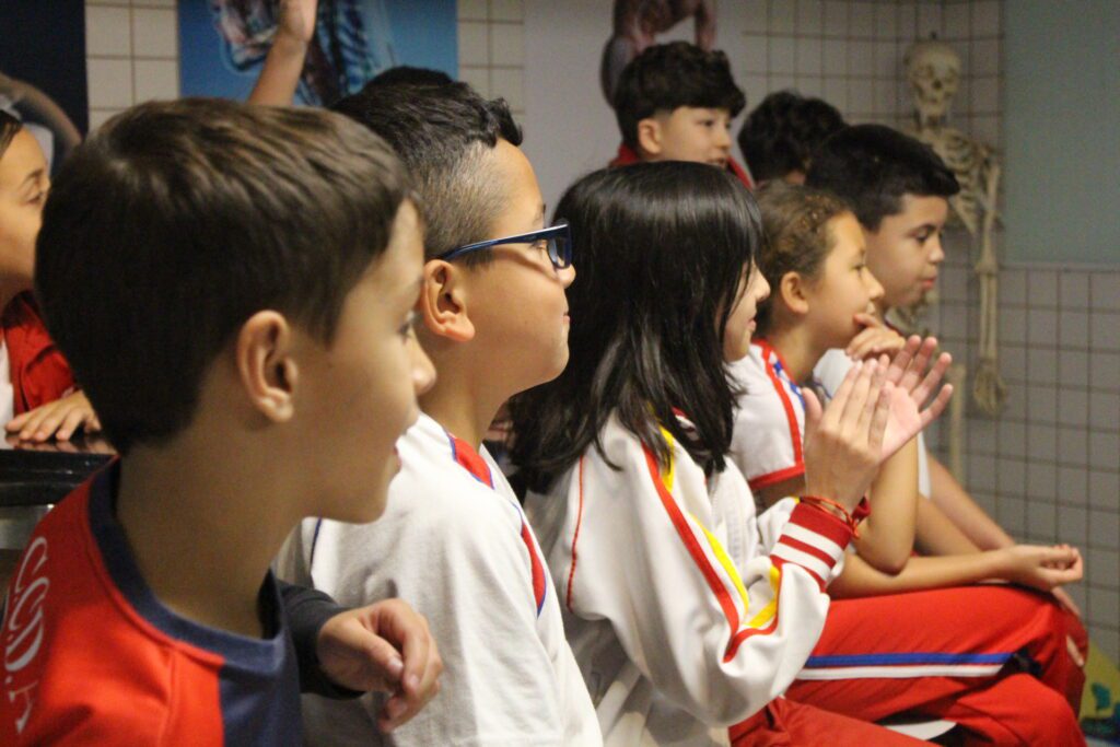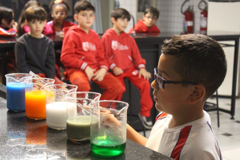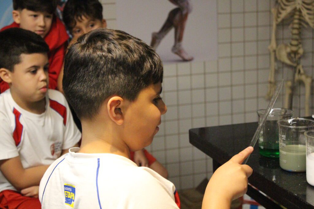 Os alunos do 3º ano do Ensino Fundamental participaram de uma atividade prática muito especial no nosso Laboratório, explorando as propriedades do som. A atividade aconteceu com o uso de recipientes com diferentes quantidades de água, que ao serem tocados produziam sons variados. Desta forma, os alunos puderam perceber que o copo mais cheio gerava um som mais grave, enquanto o copo mais vazio produzia um som mais agudo.