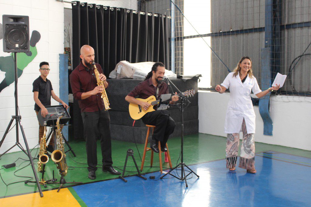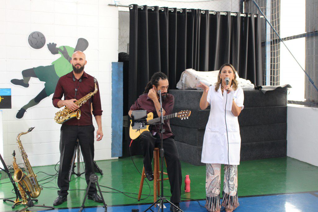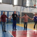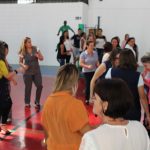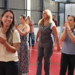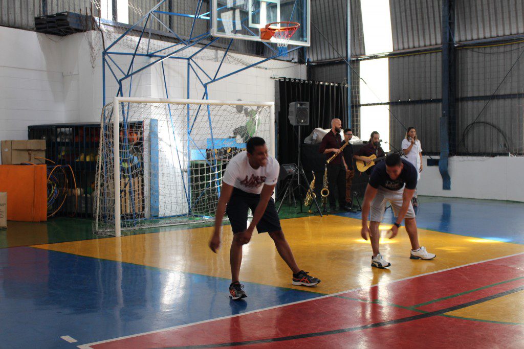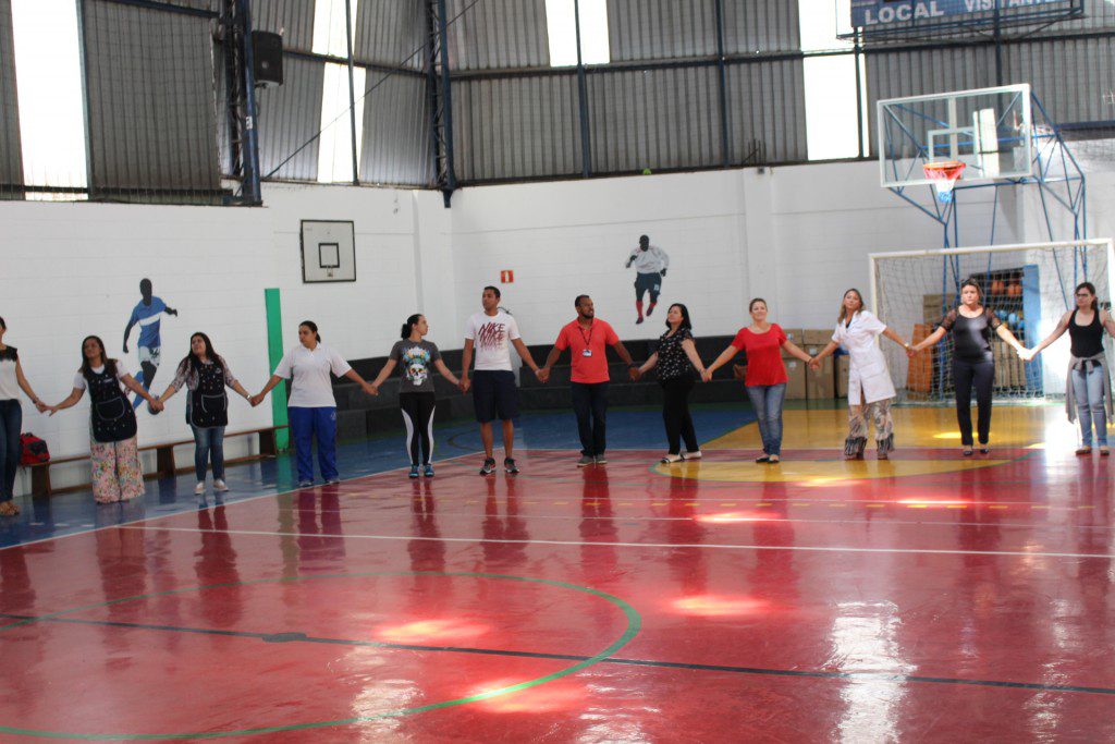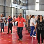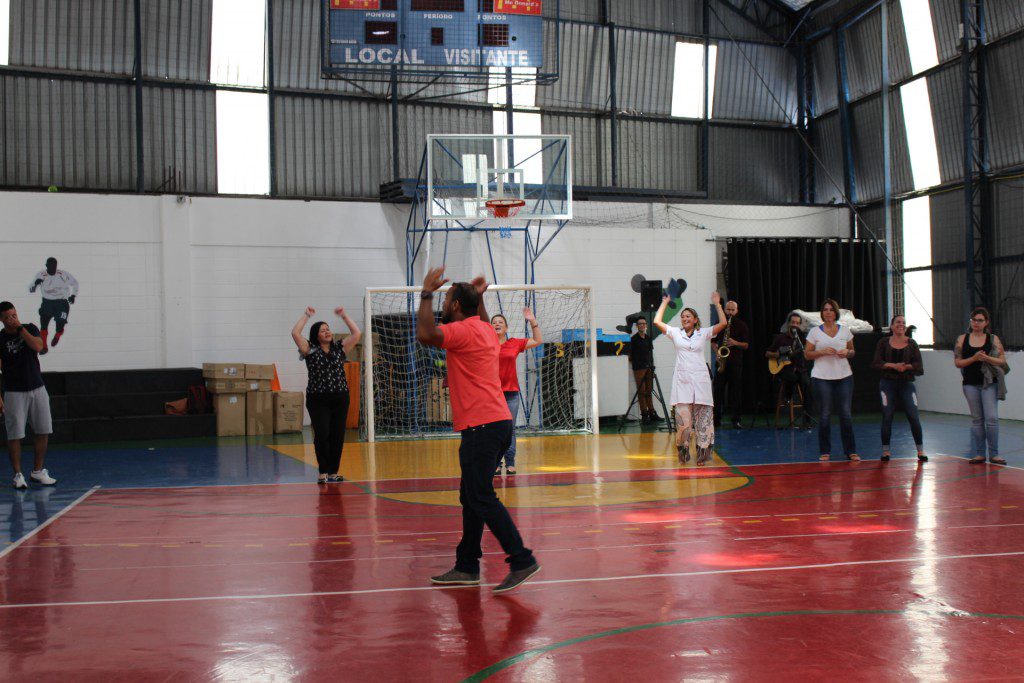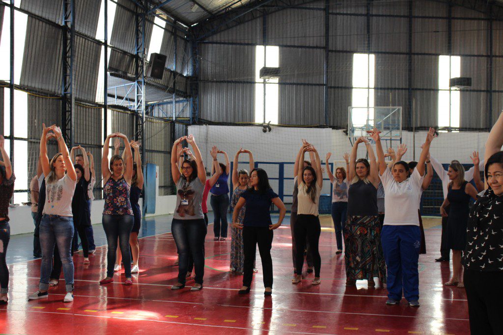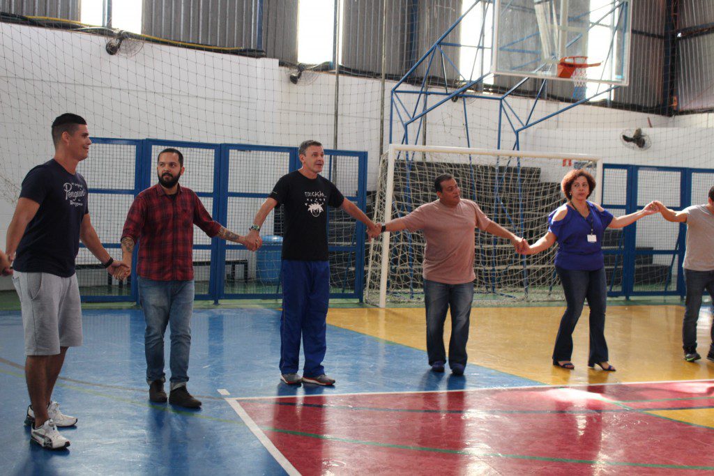 As boas vindas da Direção e uma breve reunião; e, logo em seguida, uma dinâmica na quadra poliesportiva, acompanhada, é claro, pela dupla que pôs os professores para dançar músicas atuais e antigas. Cada um com seu estilo e sem se preocupar com o ritmo dos passos distribuía sorrisos e abraços aos colegas de trabalho.