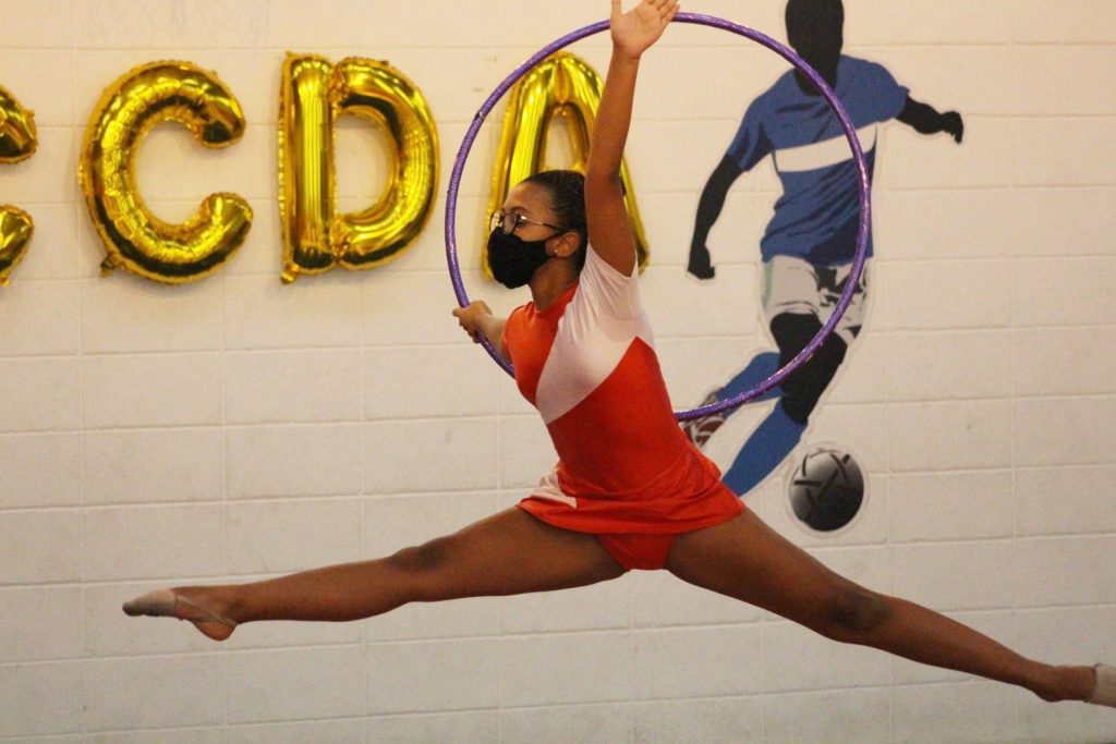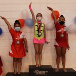 As meninas da Ginástica Rítmica encantaram nas apresentações. As atletas se apresentaram presencialmente no Ginásio Poliesportivo do Colégio, sem público espectador.