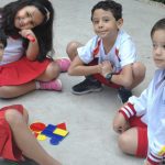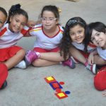 Com isso, no pátio aberto, divididos em grupos, os alunos tiveram um momento de criação e através de suas imaginações, em equipe, cada grupo criou seu trem usando material pedagógico.